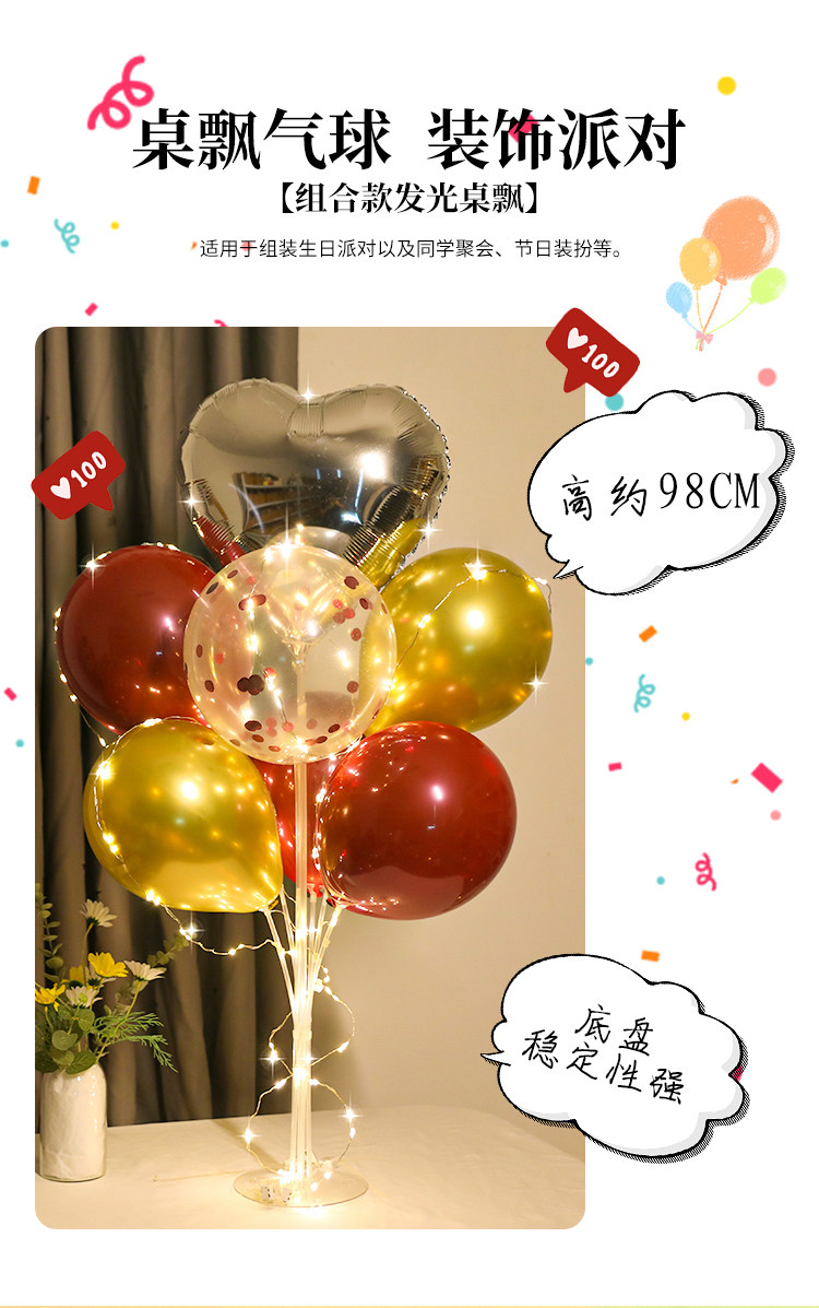 Internet-Famous Glowing Table with Floating Balloons for Boys and Girls, Children's First Birthday Party Supplies, Column Balloon Stand