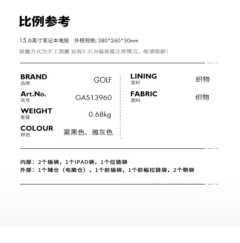 内部结构 主袋,夹层拉链袋,电脑插袋