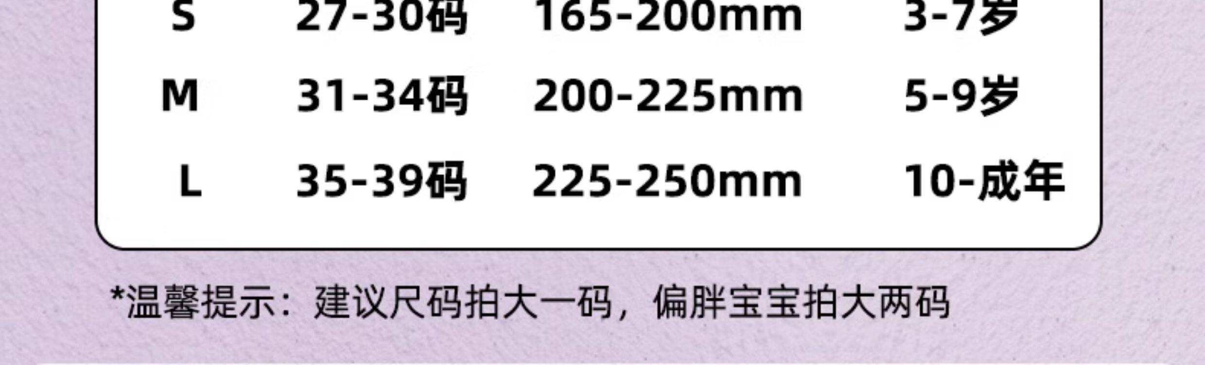 Shoe Size S Size [Suitable for 3-7 Years Old] Normal Shoe Size 27-30,M Size [Suitable for 6-12 Years Old] Normal Shoe Size 31-34,L Size [Suitable for 10 Years Old - Adult] Normal Shoe Size 35-39