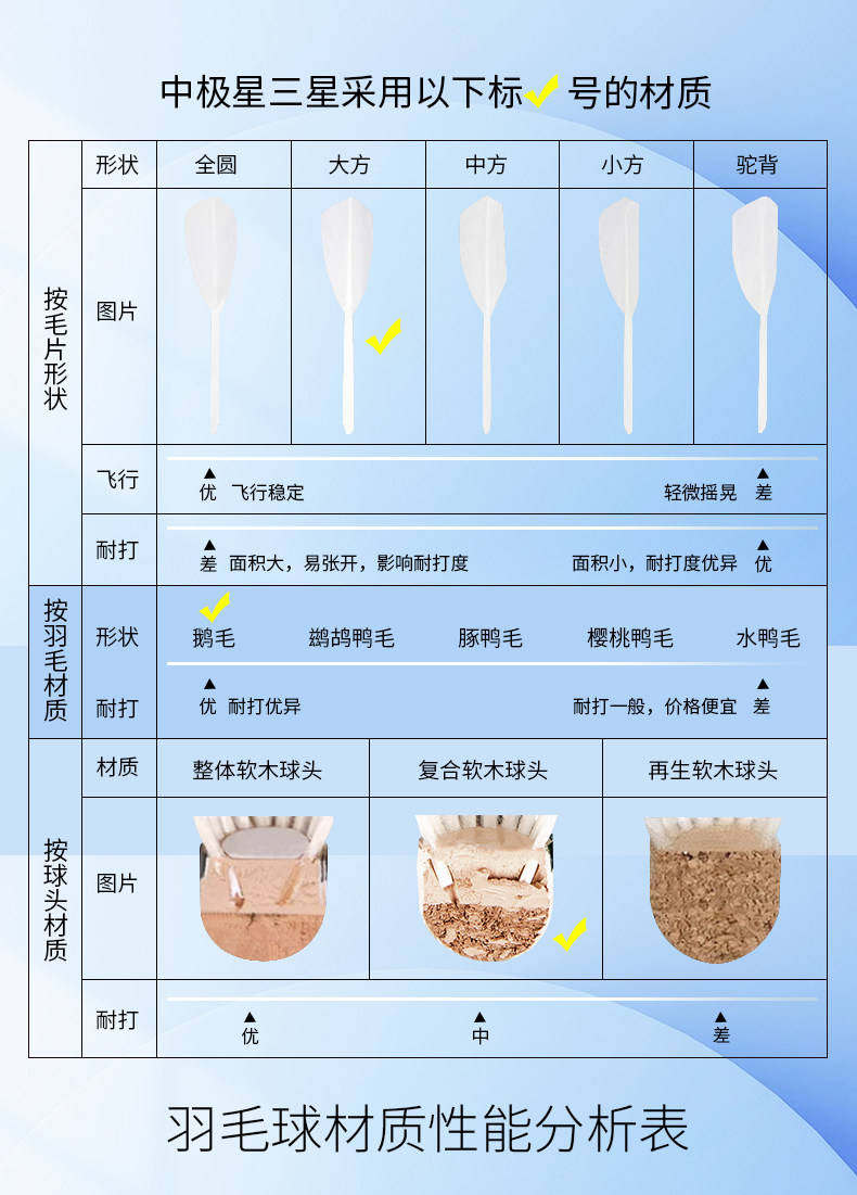 Badminton Head Types Composite Cork (Mid to High-End)