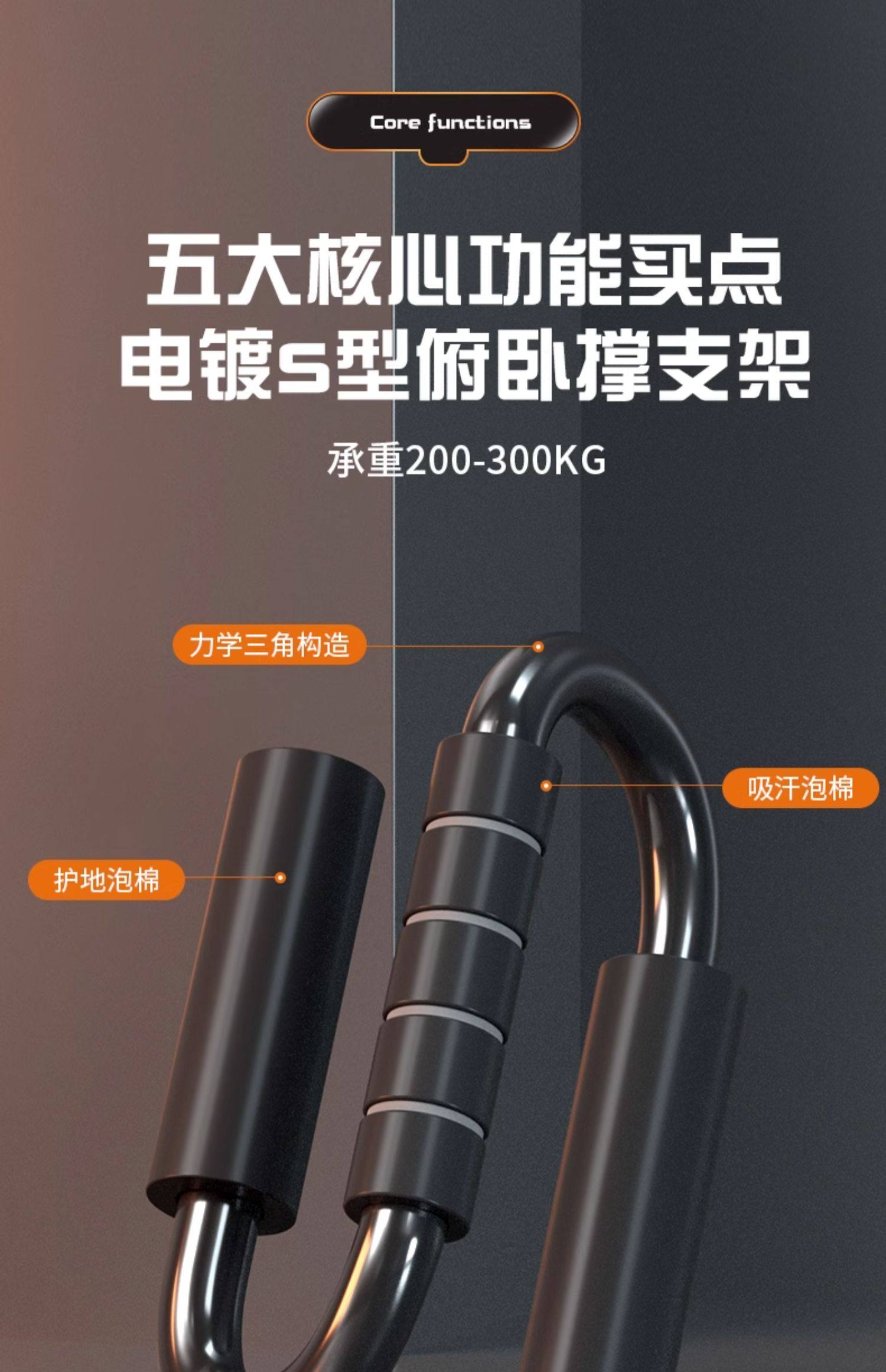 S型俯卧撑支架专业俄挺室内便携运动健身铁三角男锻炼胸肌训练器