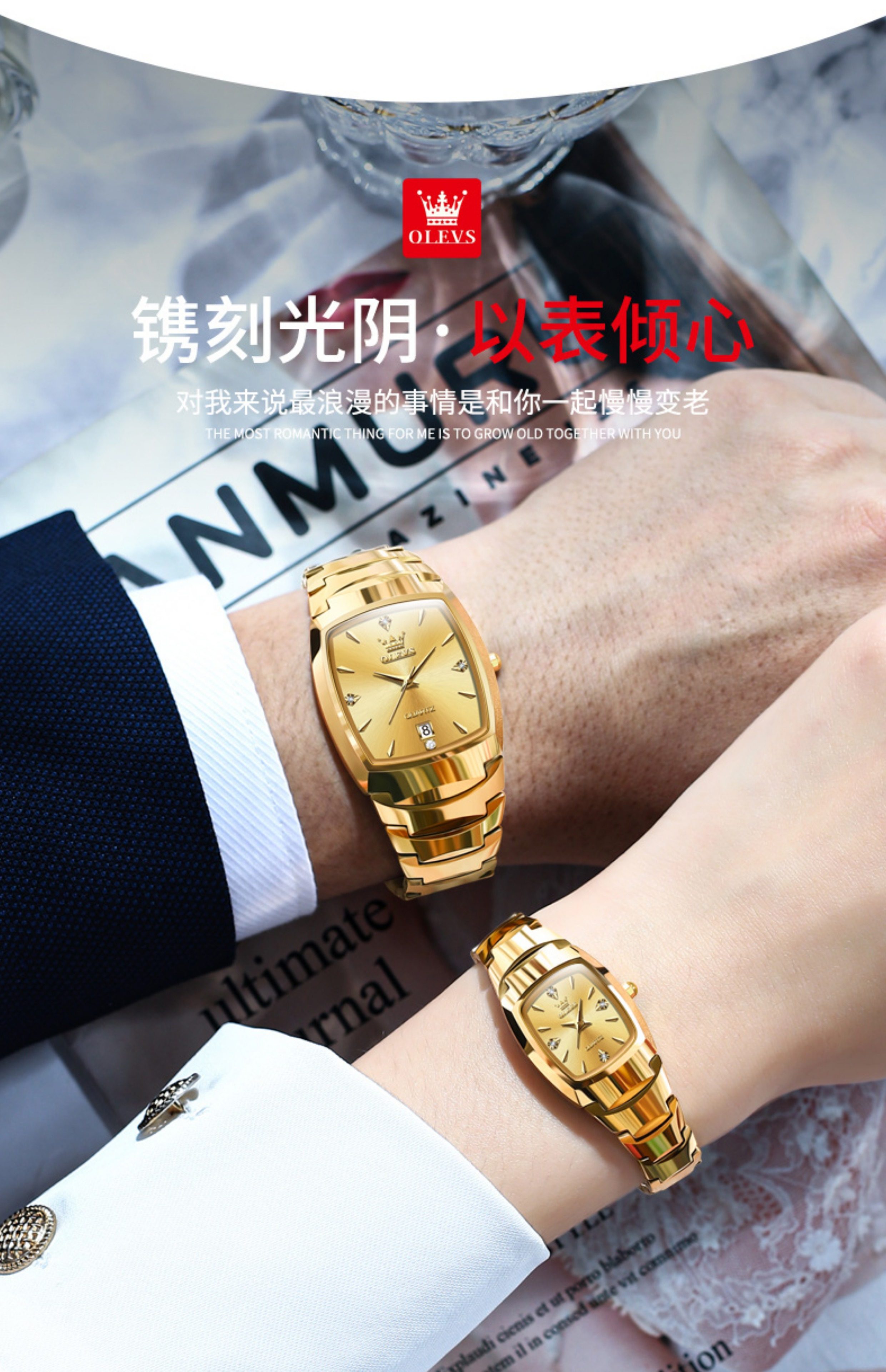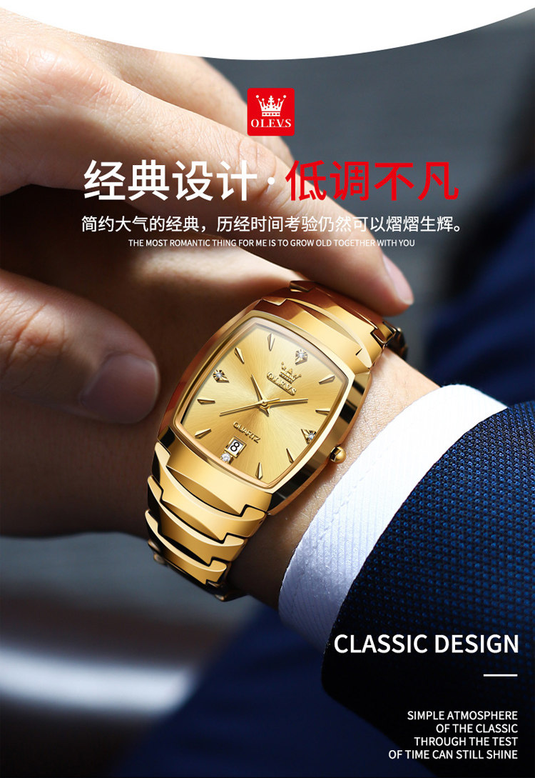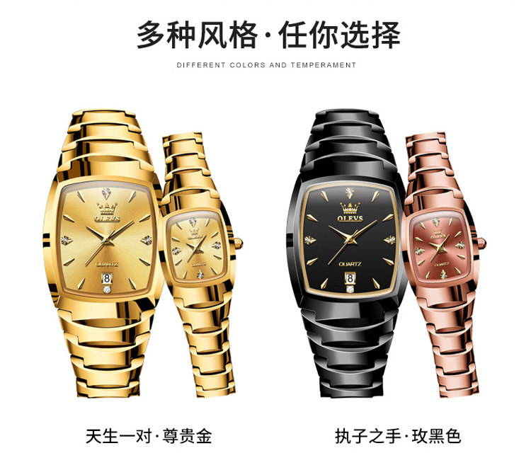 Швейцарские модные квадратные часы для пар, новая модель, парные часы из вольфрамовой стали, кварцевые водонепроницаемые часы, квадратные золотые часы с гравировкой