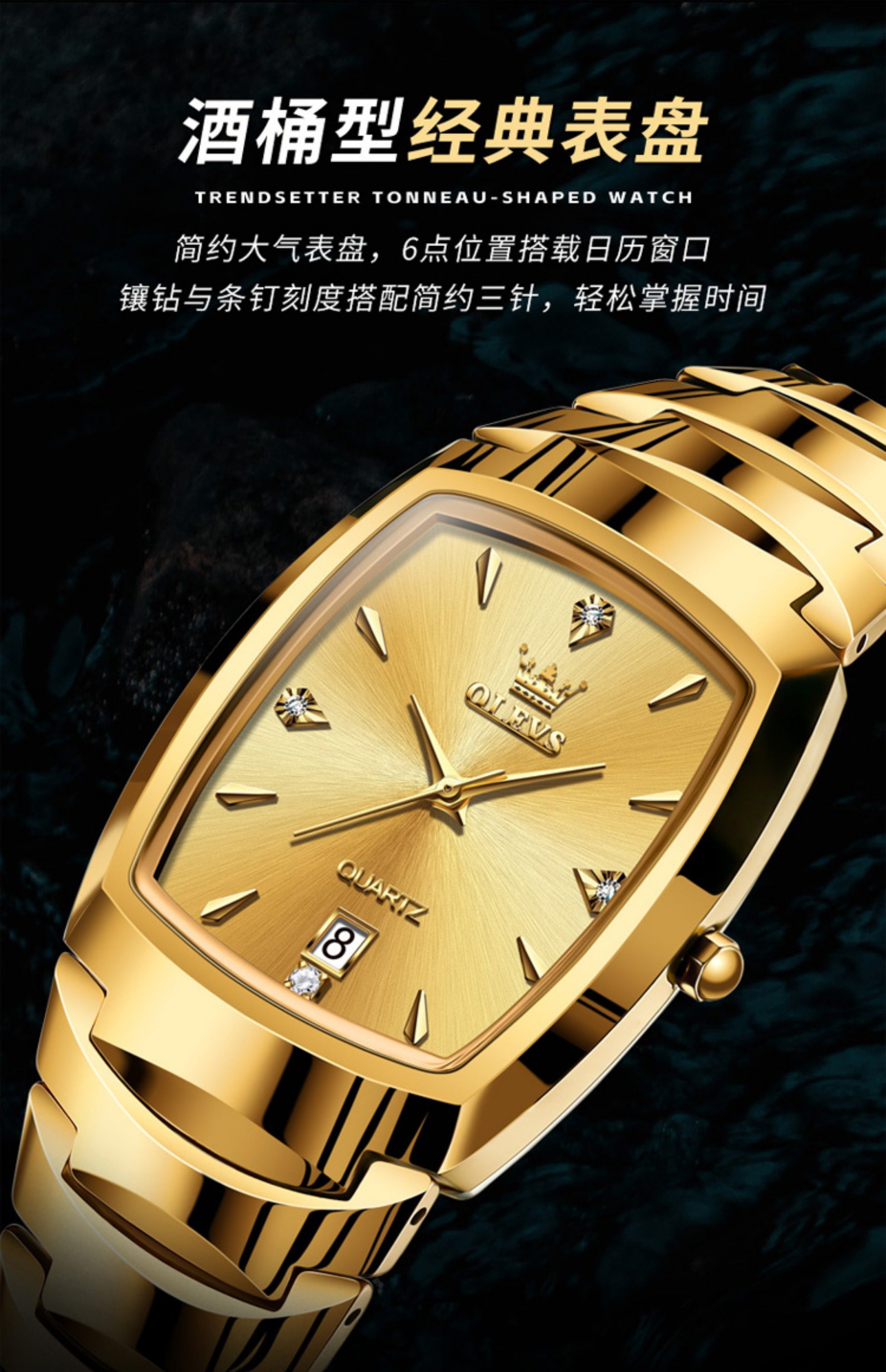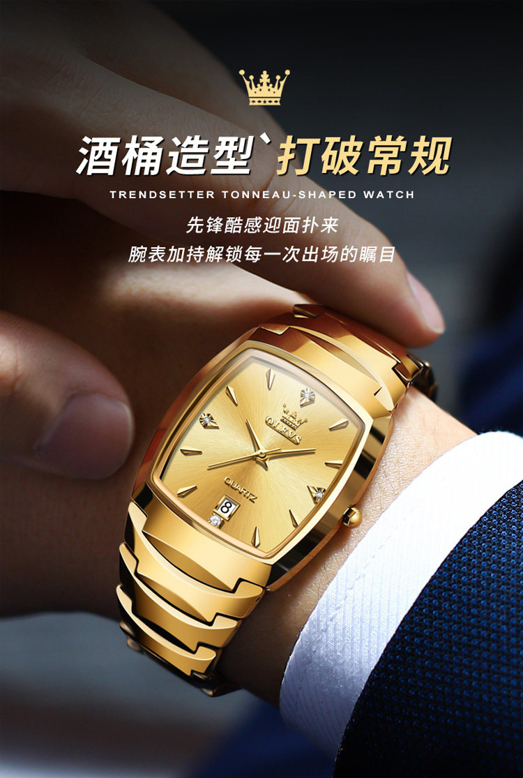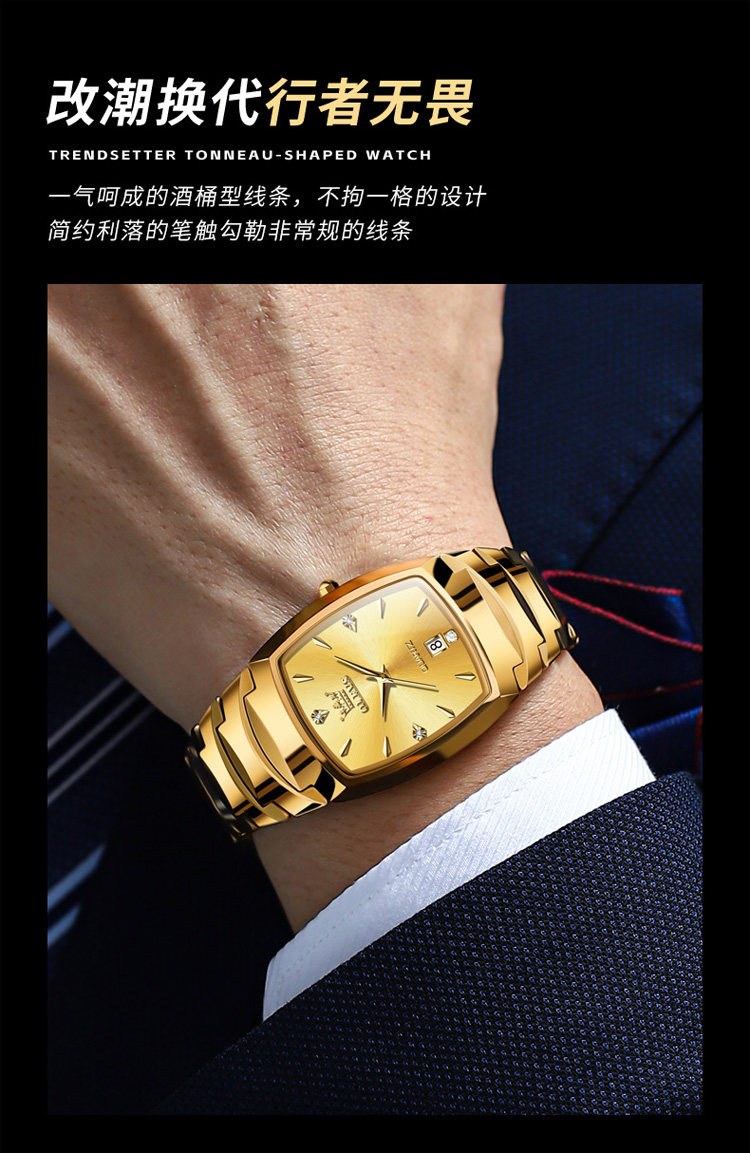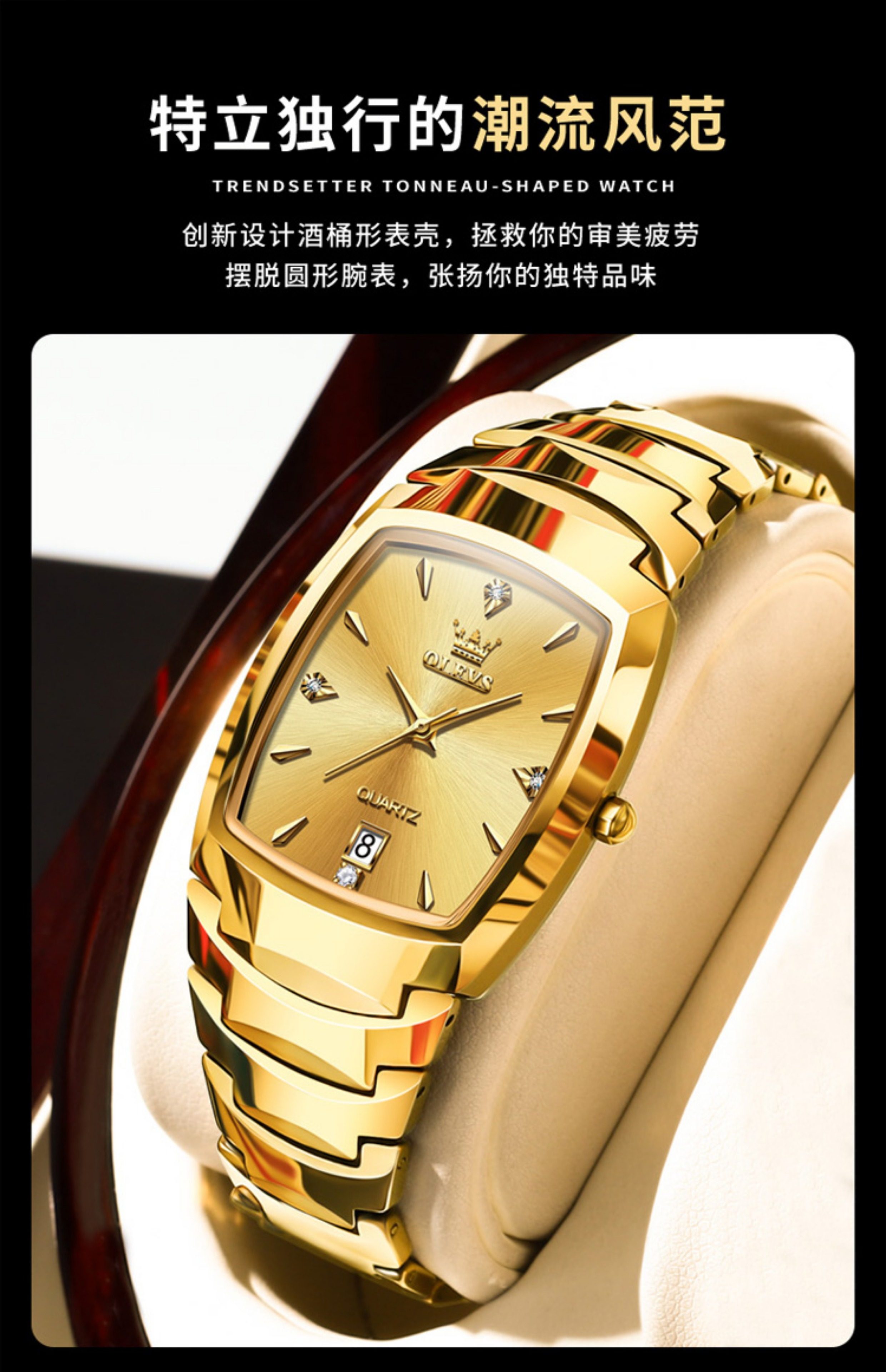 Swiss Oris Gold Watch Men's Barrel-Shaped Watch Men's Waterproof Tungsten Steel Square Watch Gold Color Fashionable Genuine Product