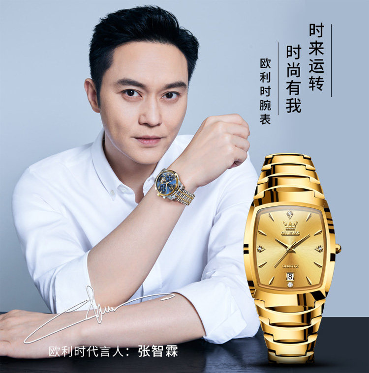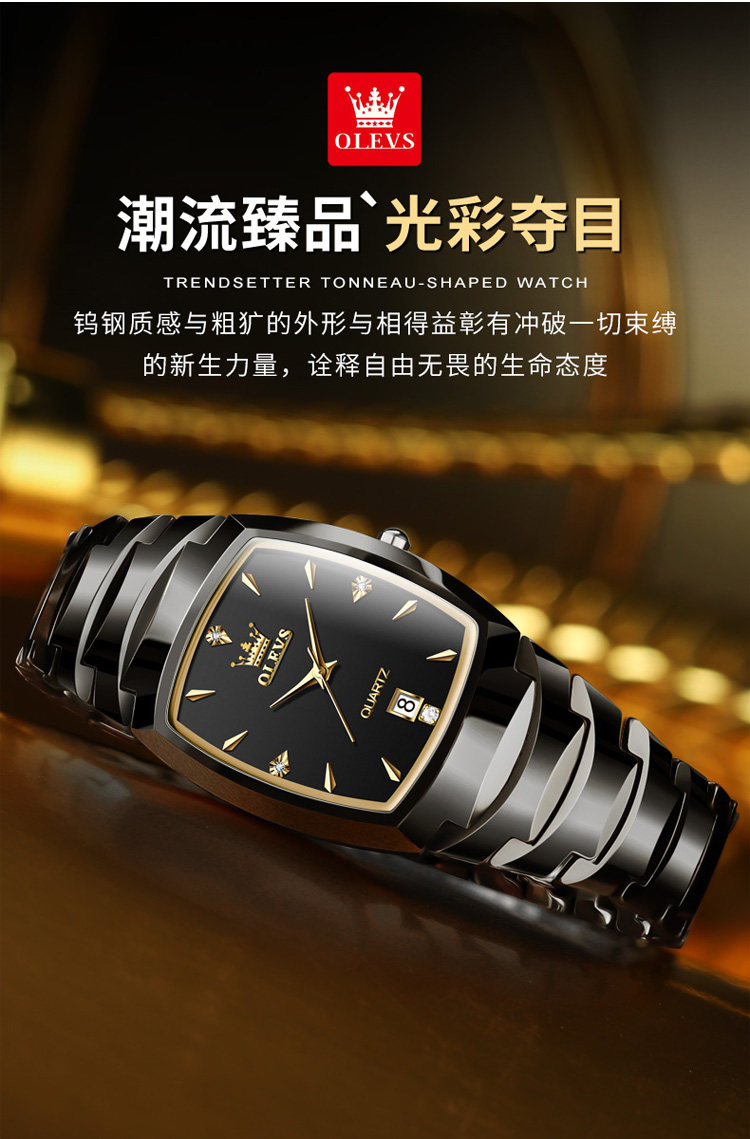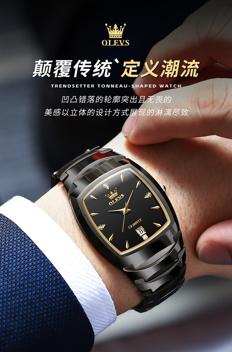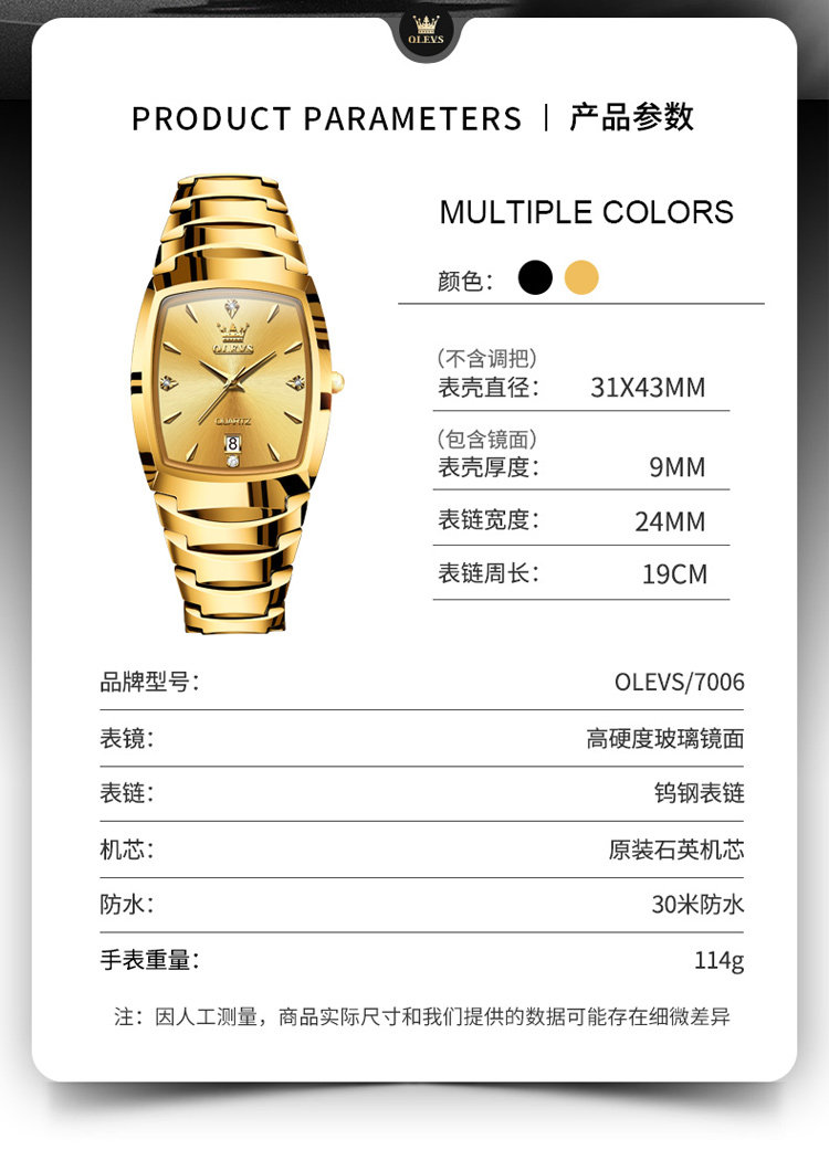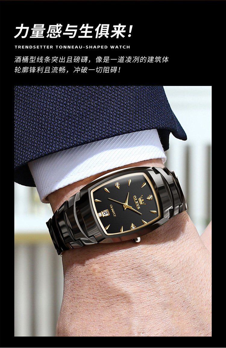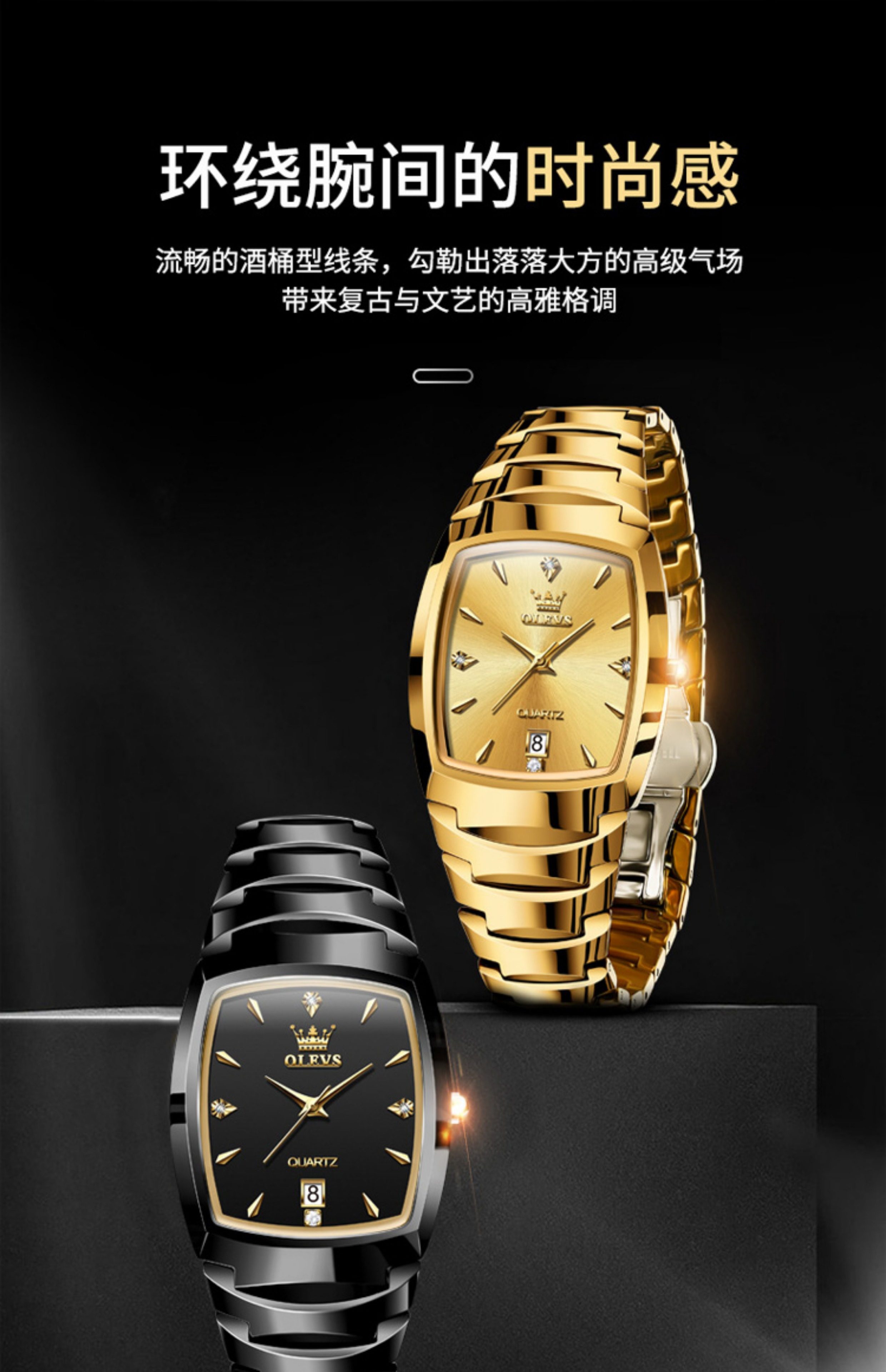 Swiss Oris Gold Watch Men's Barrel-Shaped Watch Men's Waterproof Tungsten Steel Square Watch Gold Color Fashionable Genuine Product