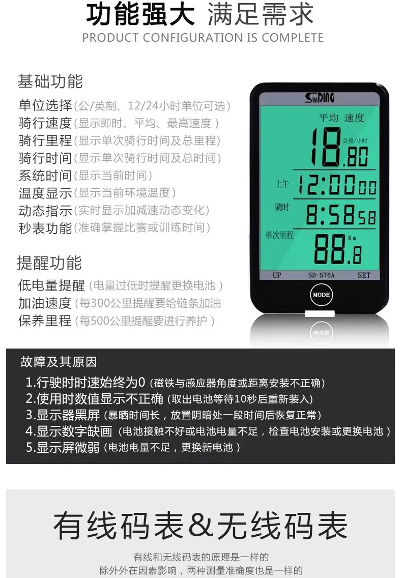 配件类型 无线码表,防水码表,有线码表