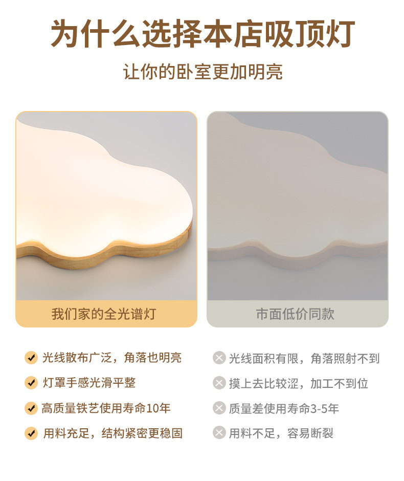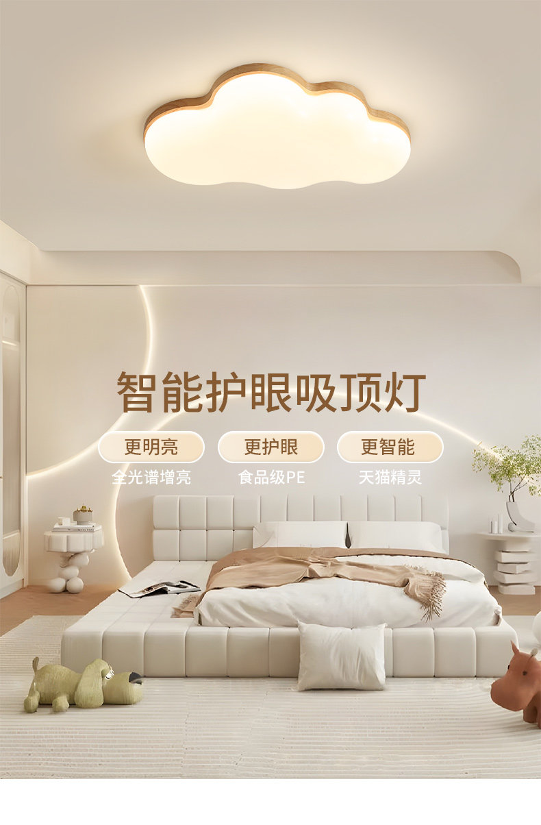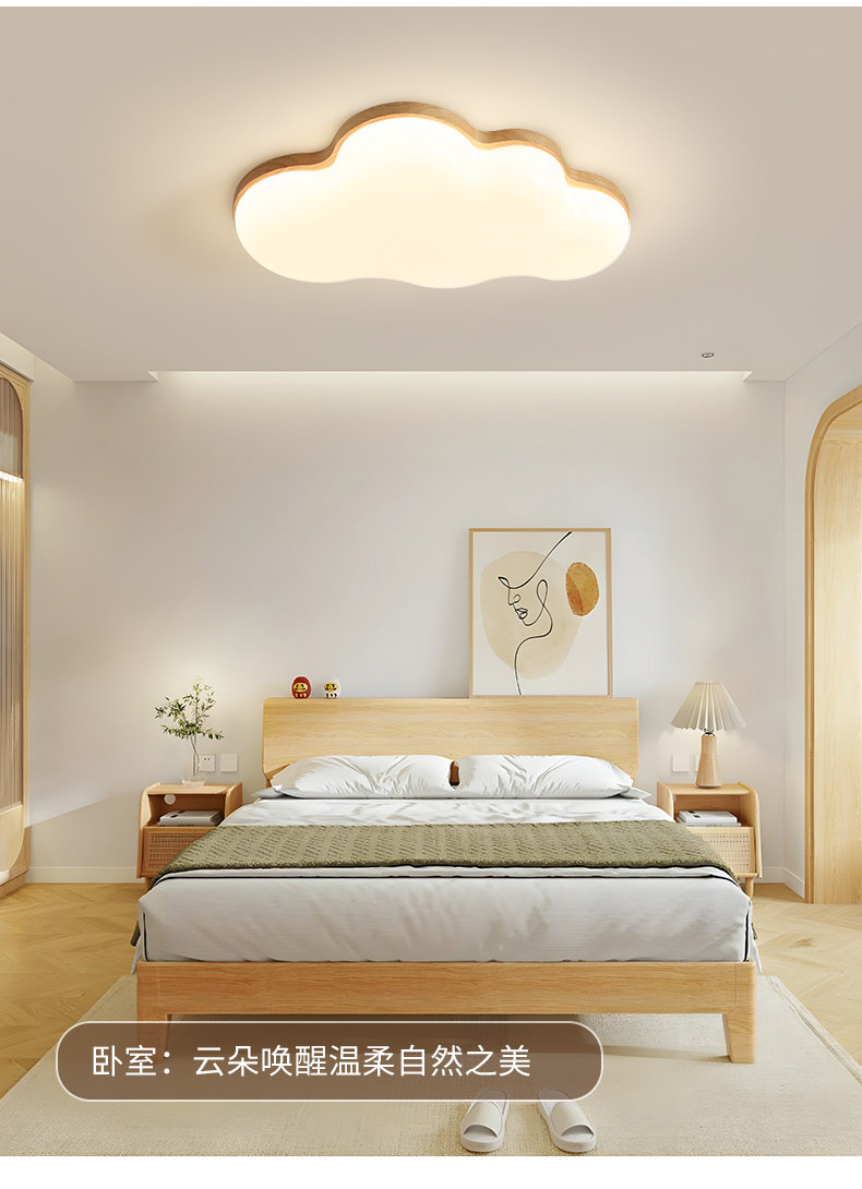 原木奶油风卧室灯儿童房间灯网红云朵全光谱护眼吸顶灯卡通公主灯