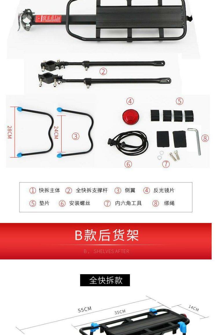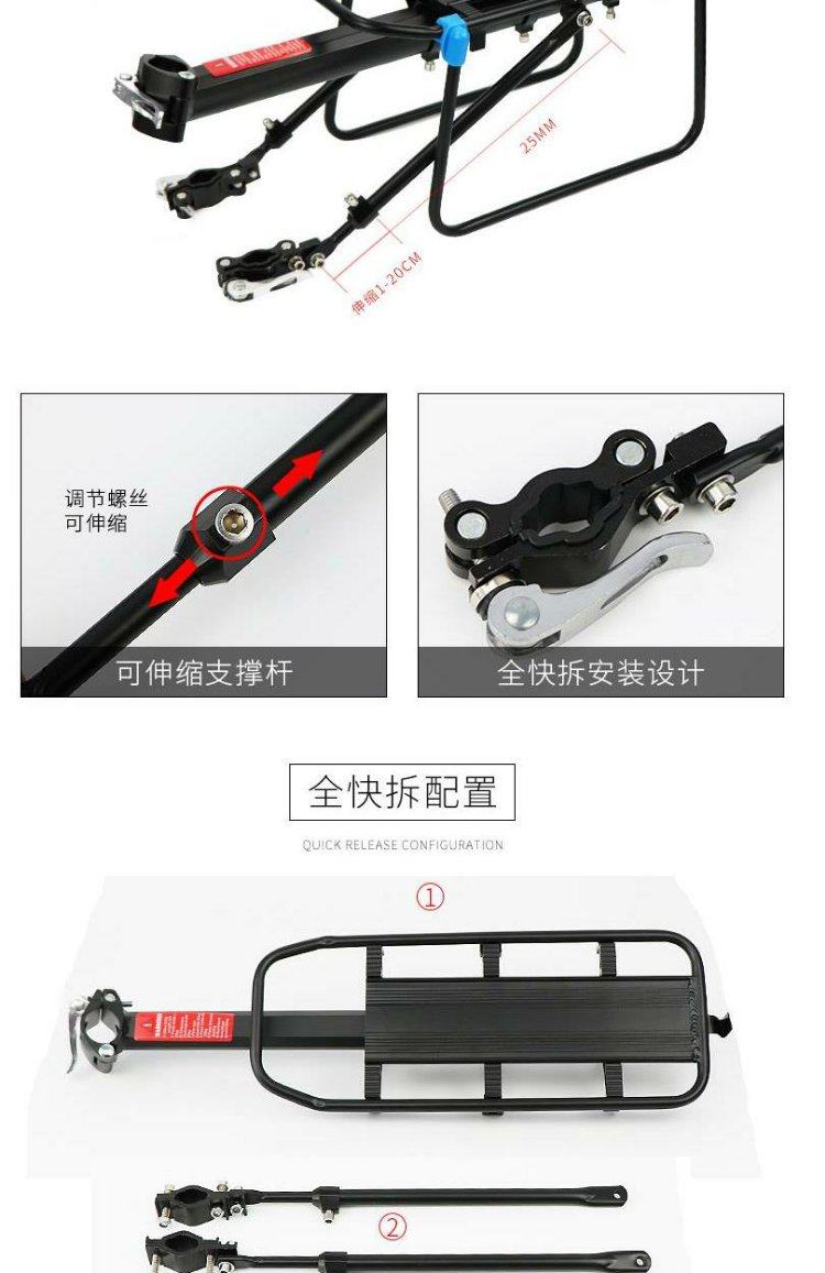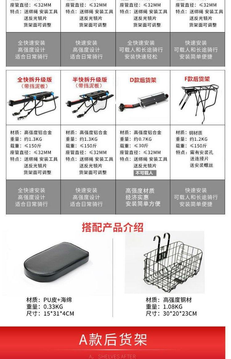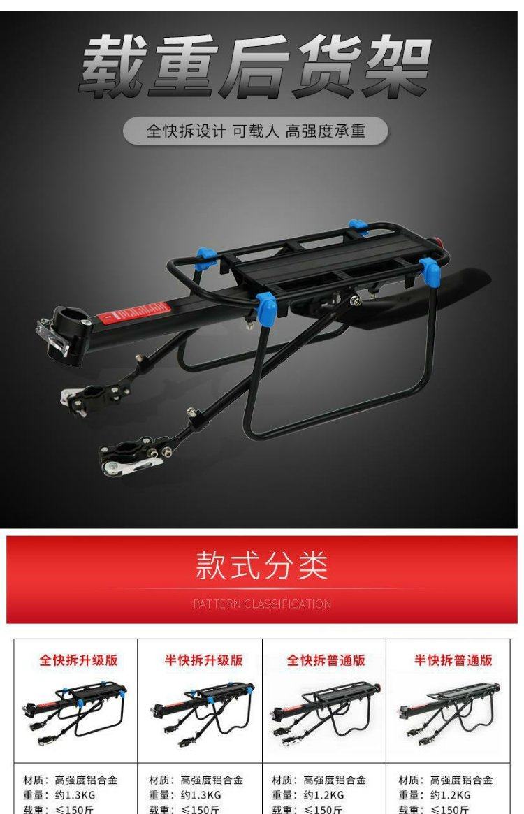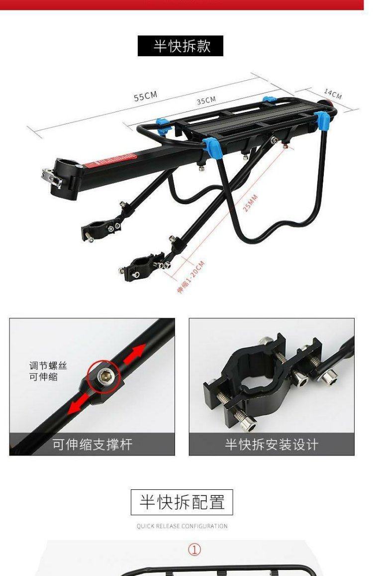 Convient pour porte-queue de vélo géant, passager VTT vélo siège arrière porte-bagages étagère accessoires de frein à disque