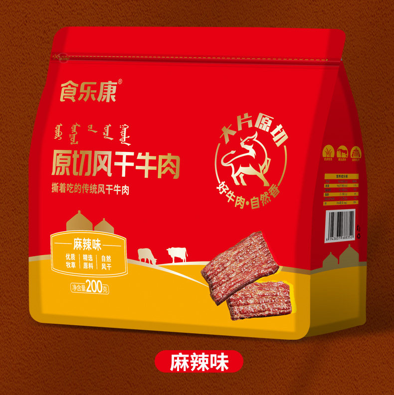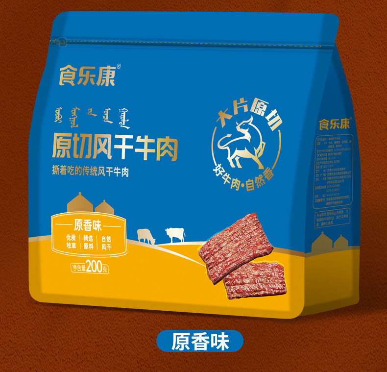 食乐康内蒙古200g风干牛肉干片真空手撕休闲零食健身特产即食