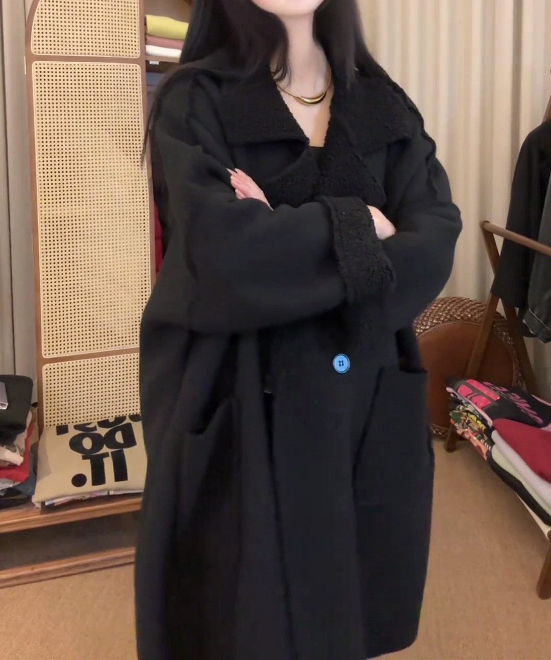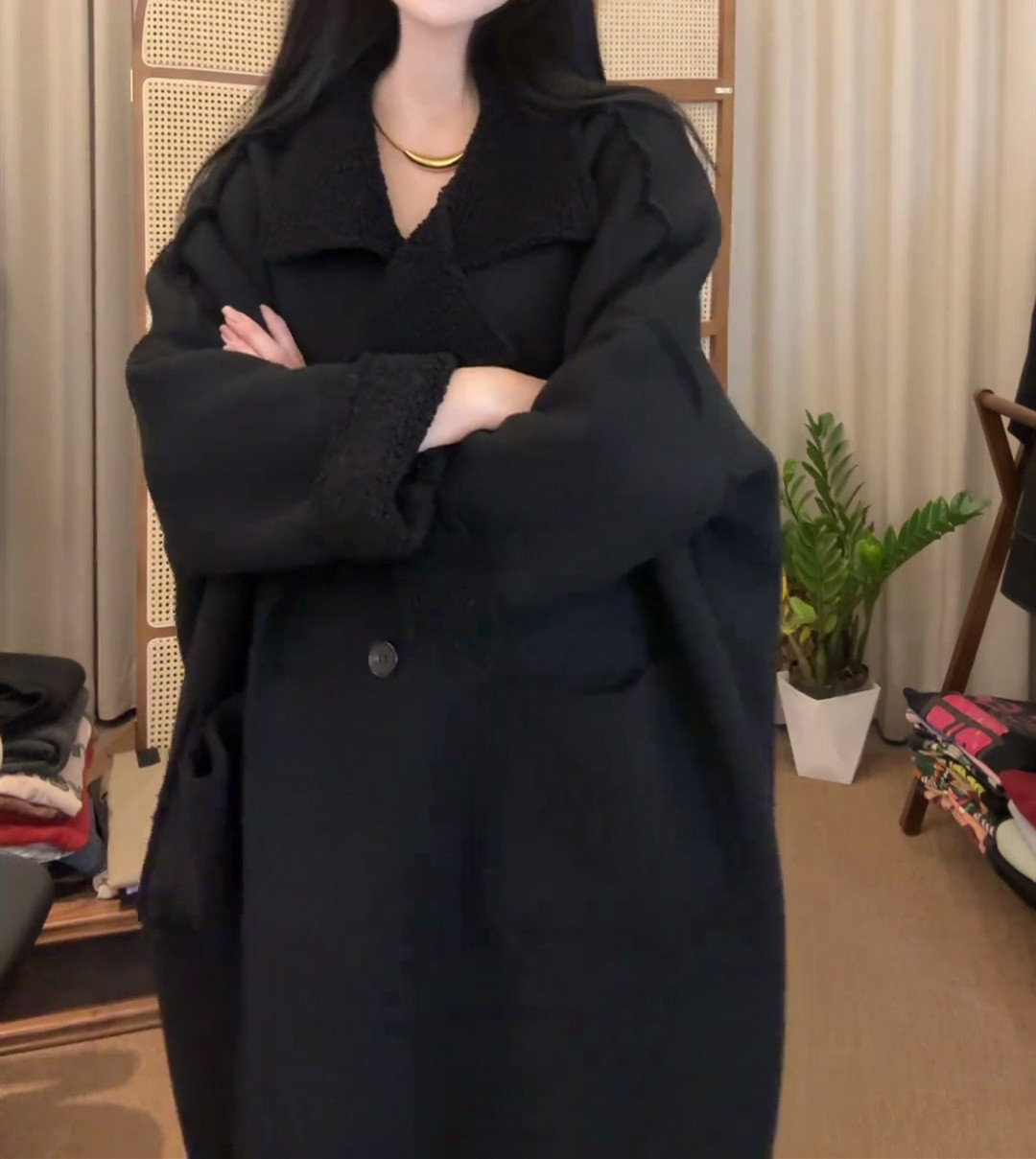 秋冬加厚羊羔毛大衣女慵懒风宽松2024新款休闲chic韩版过膝长外套