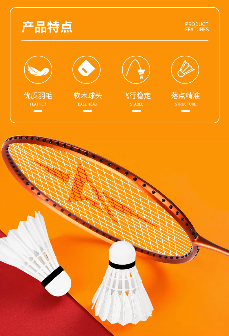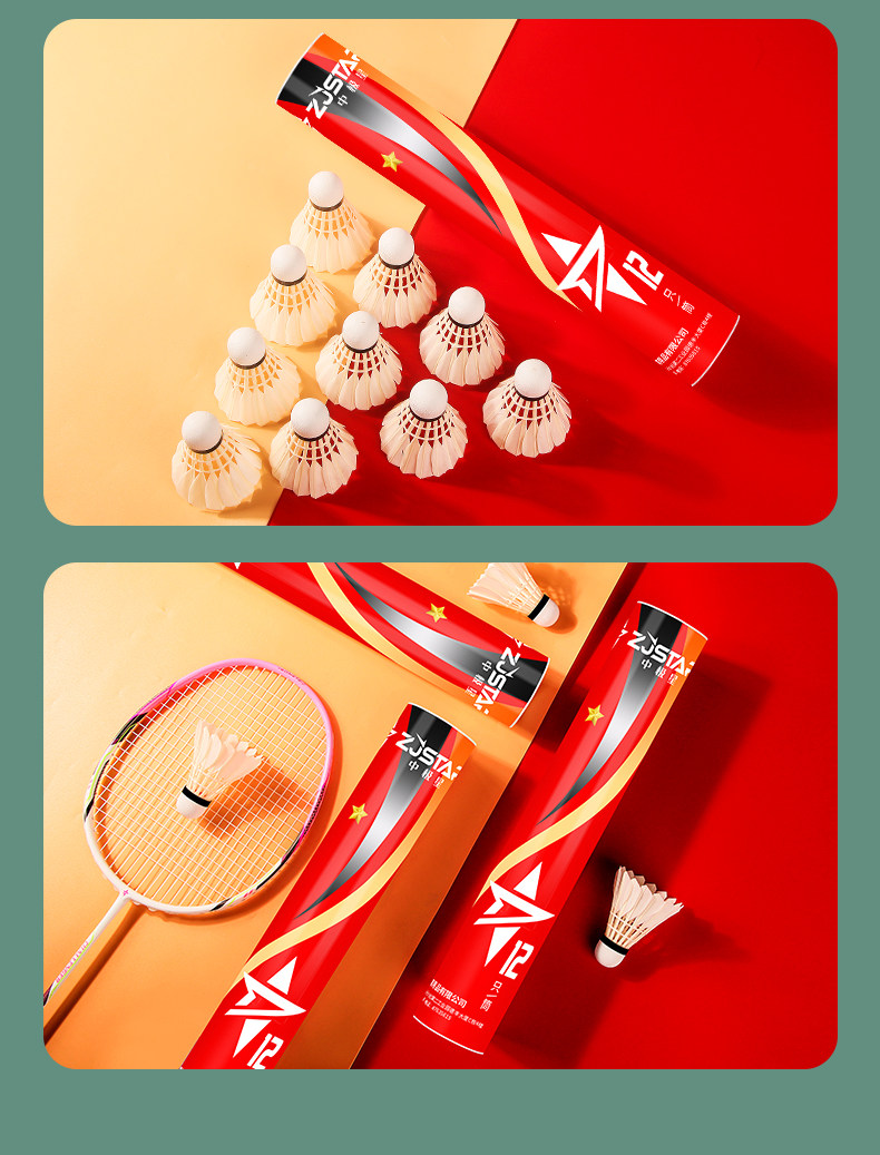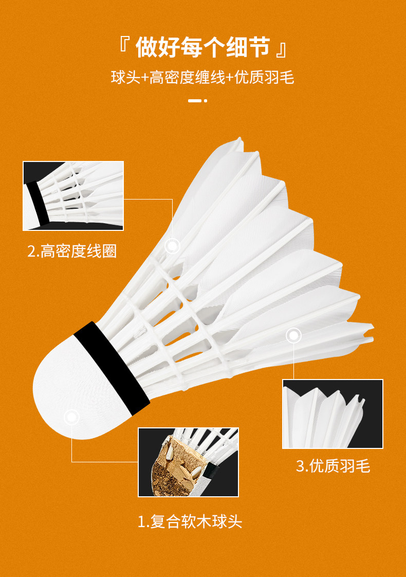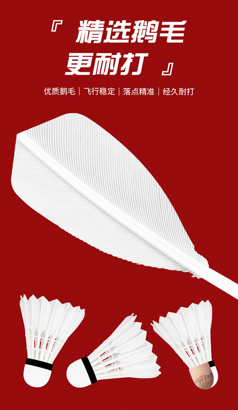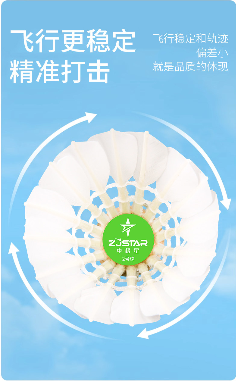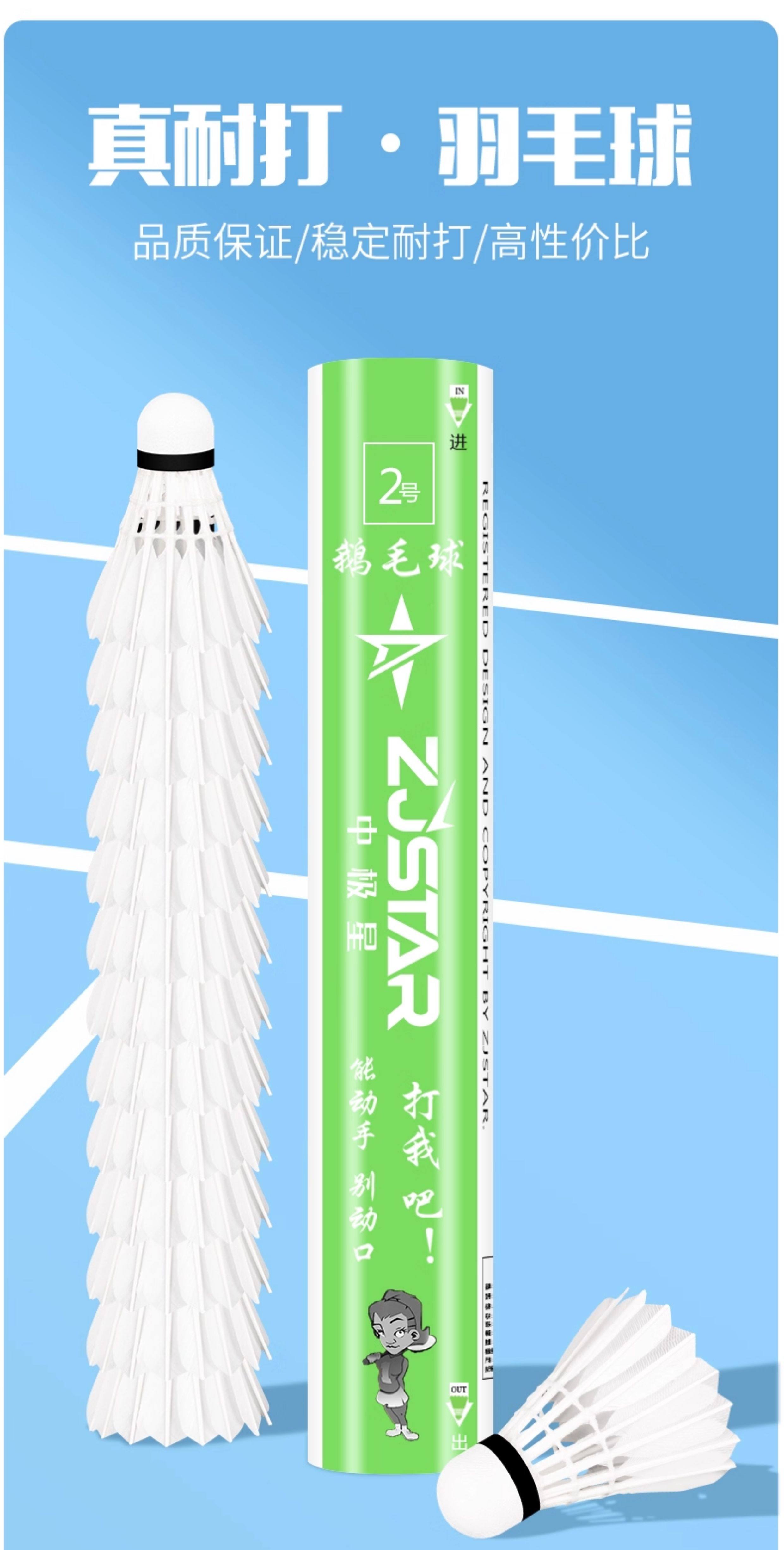 Zhongjixing Badminton No. 2 Shuttlecock, Goose Feather, Pack of 12, Durable, Stable Flight, Not Easy to Break, Authentic Flagship Store