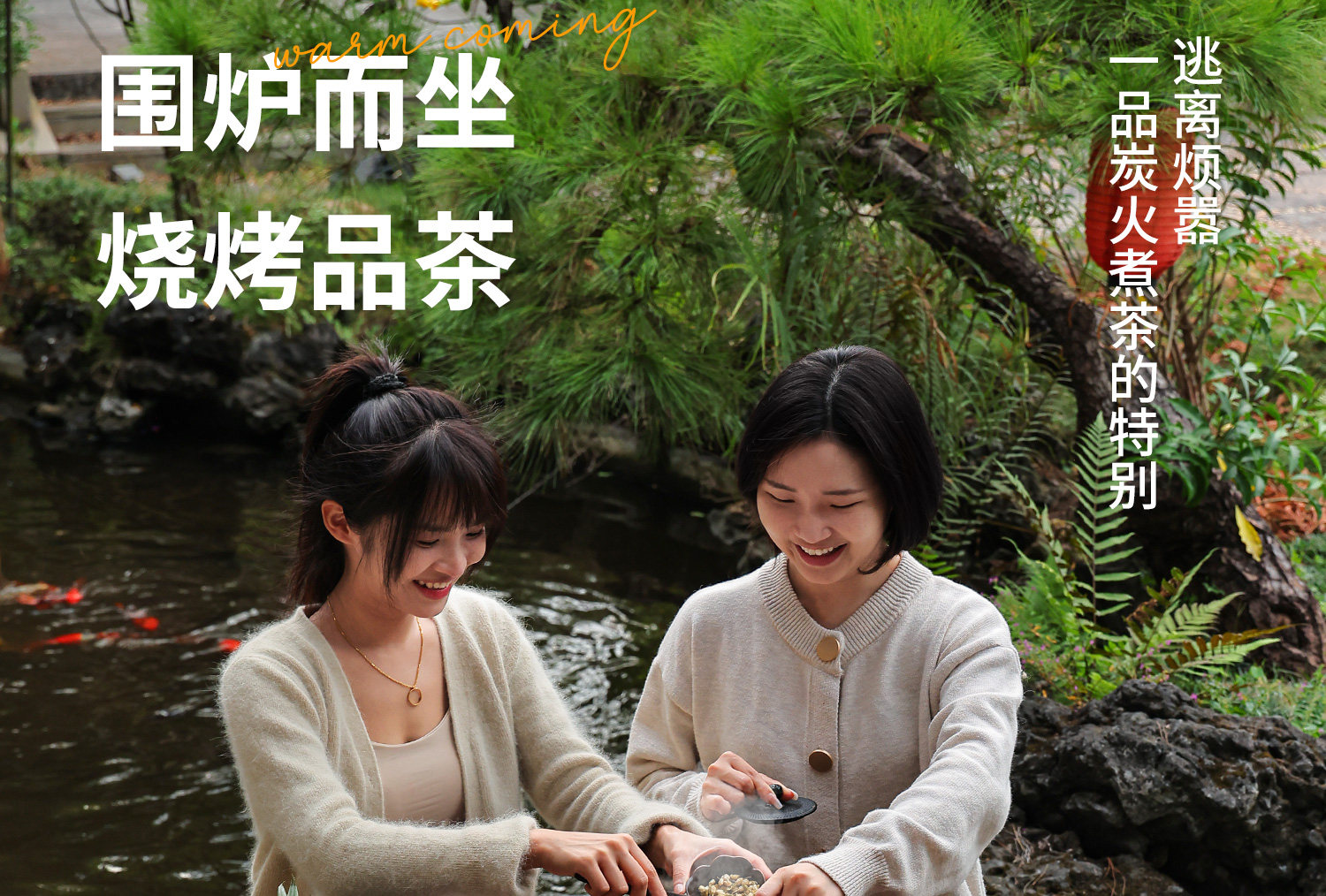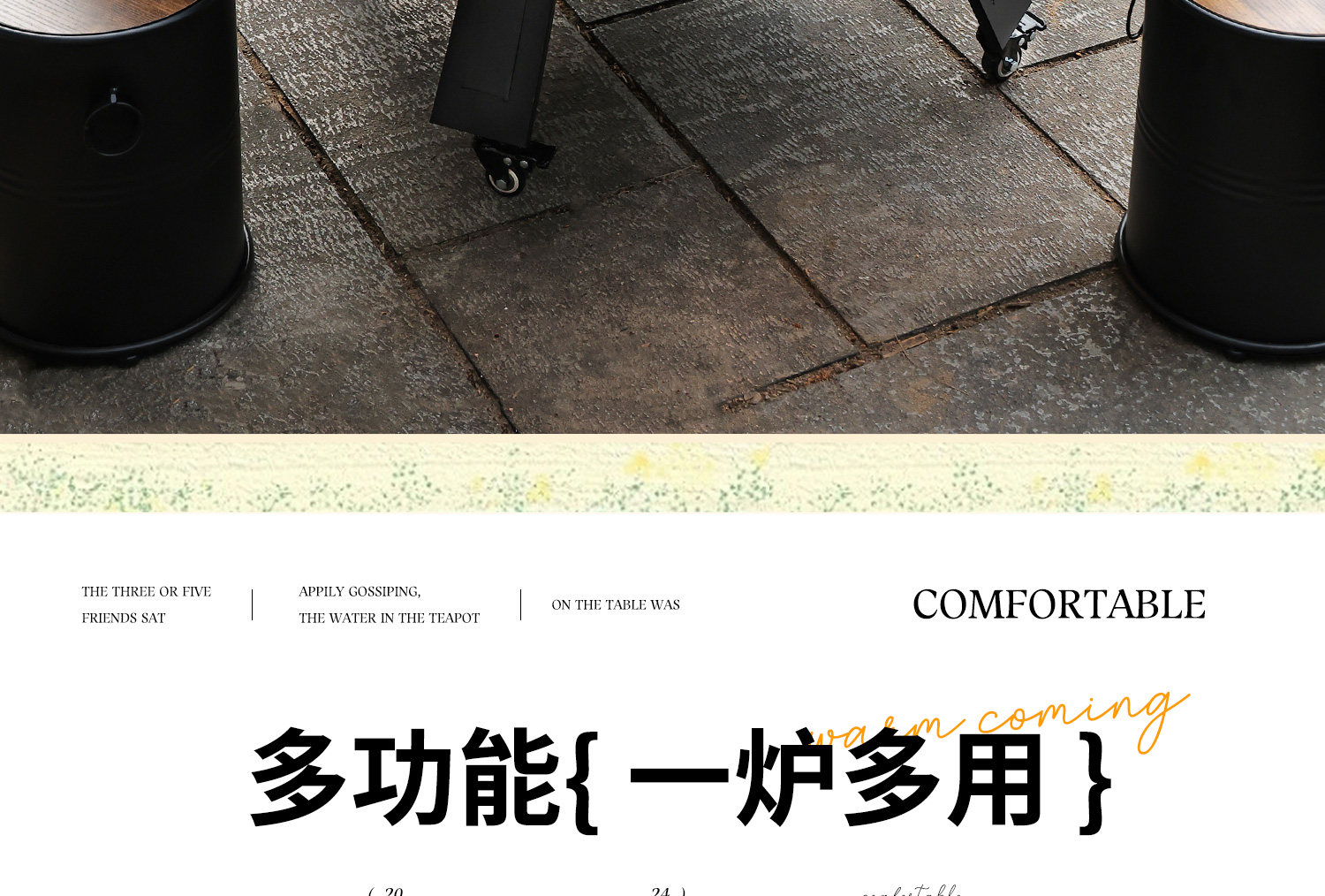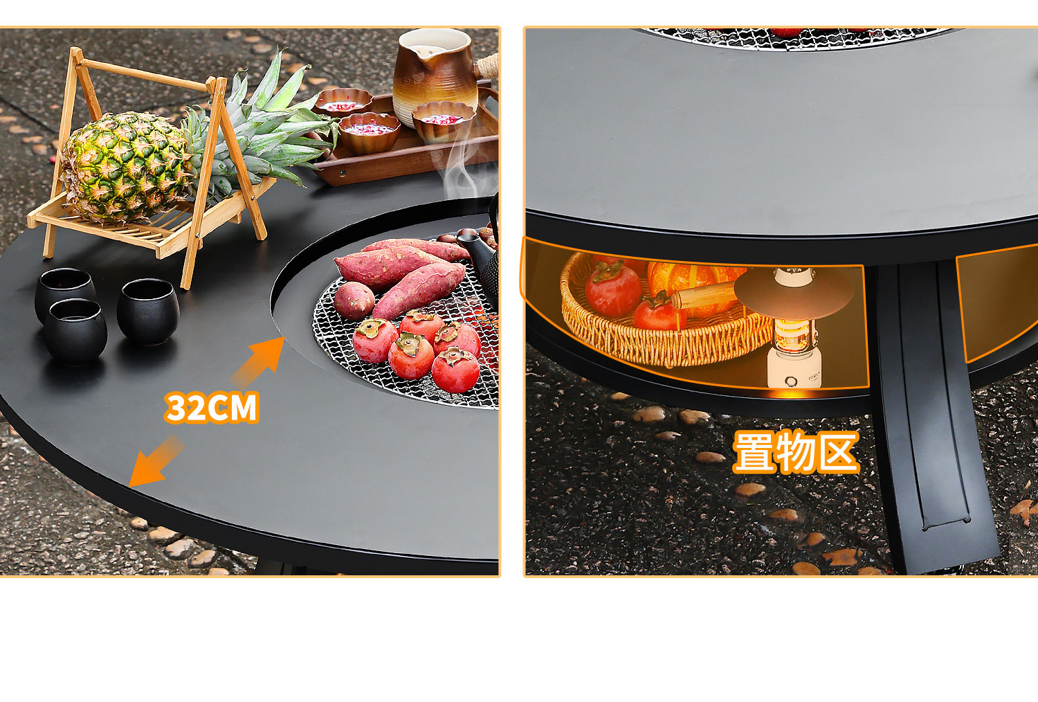 Cocinar té alrededor de la estufa, juego de estufa para asar en el interior del hogar, juego completo de electrodomésticos, reunirse alrededor de la estufa de barbacoa del patio en invierno para calentar la mesa