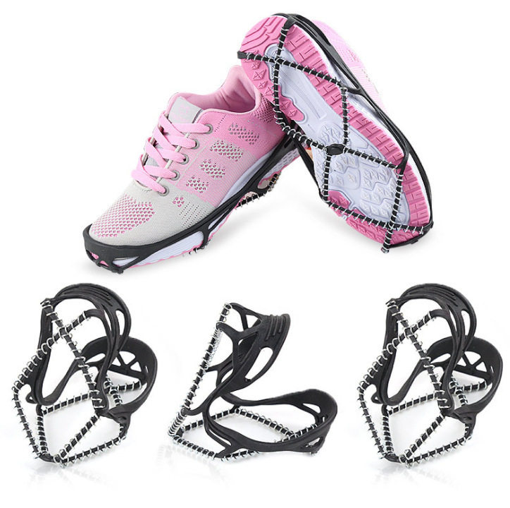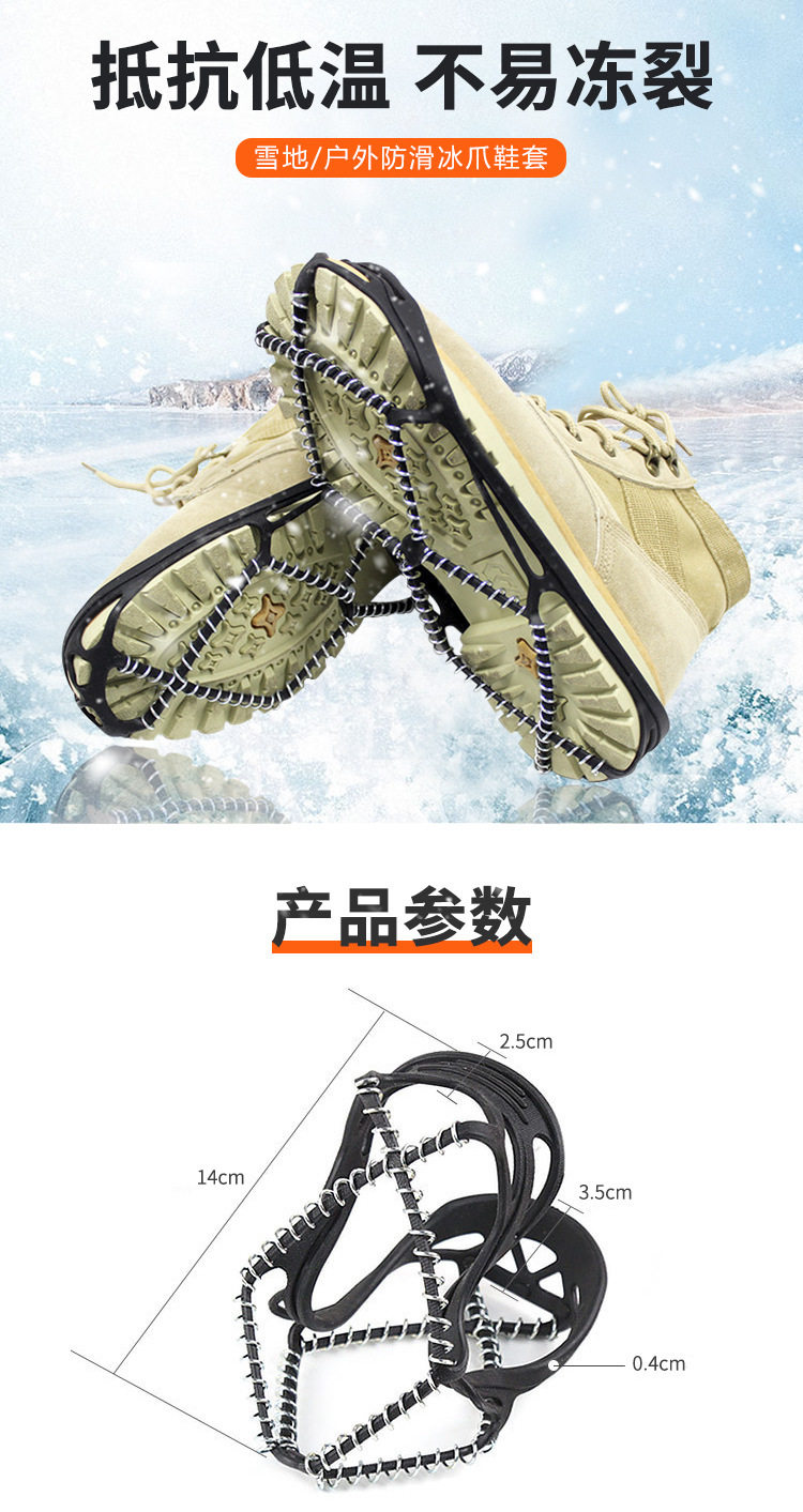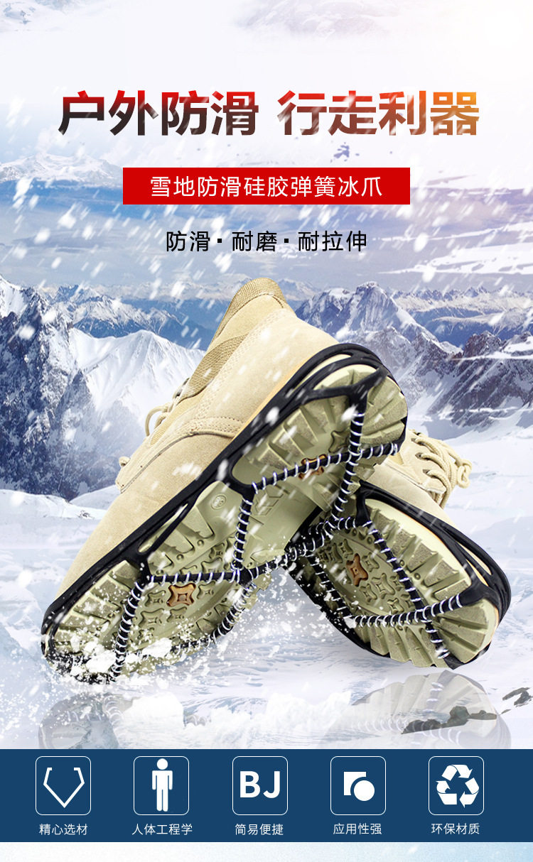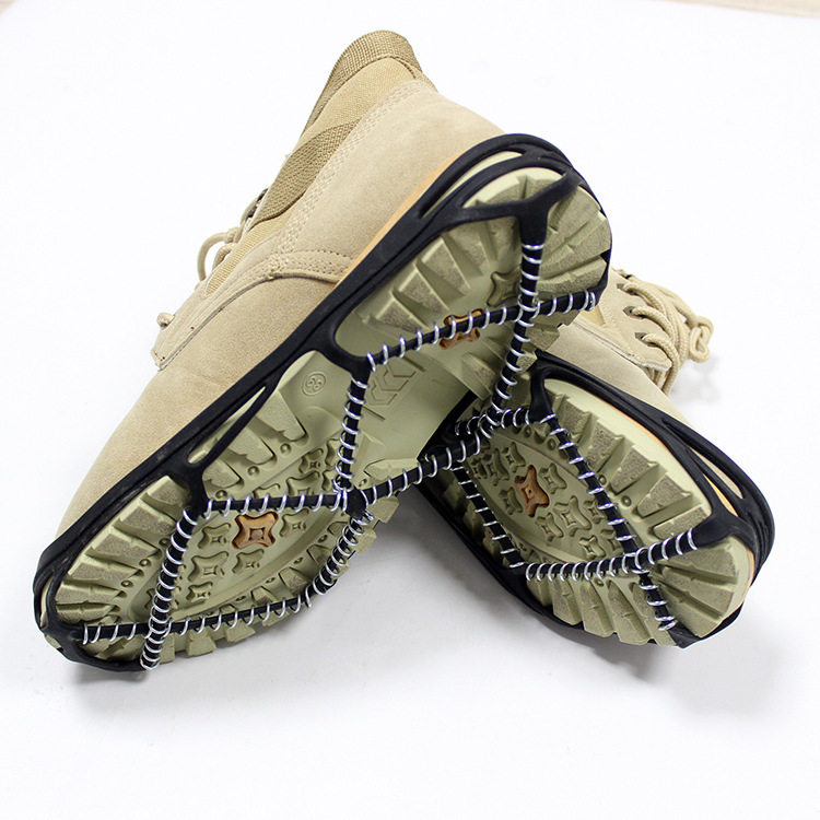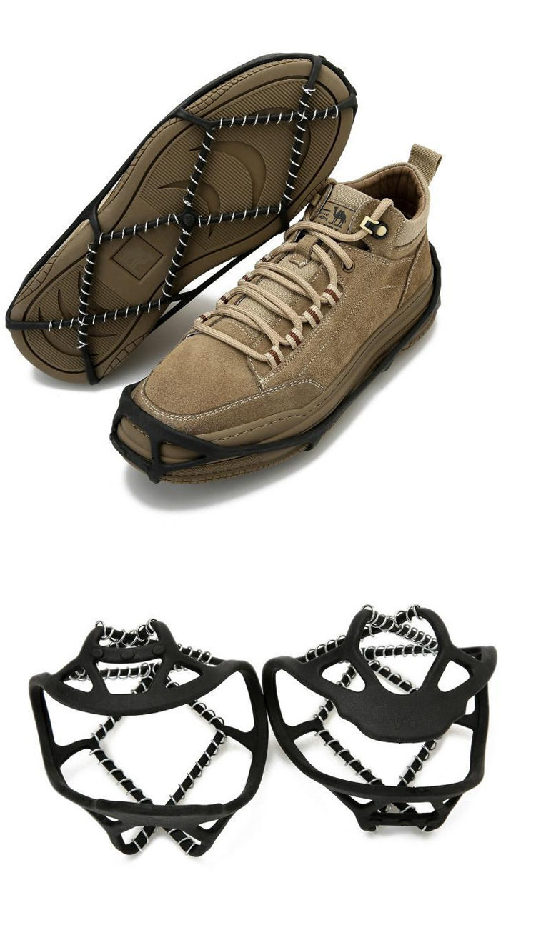 Couvre-chaussures à crampons à ressort en silicone pour l'escalade en plein air sur la neige et la glace, couvre-chaussures à crampons à clous en acier à 18 dents antidérapants pour les voyages en montagne