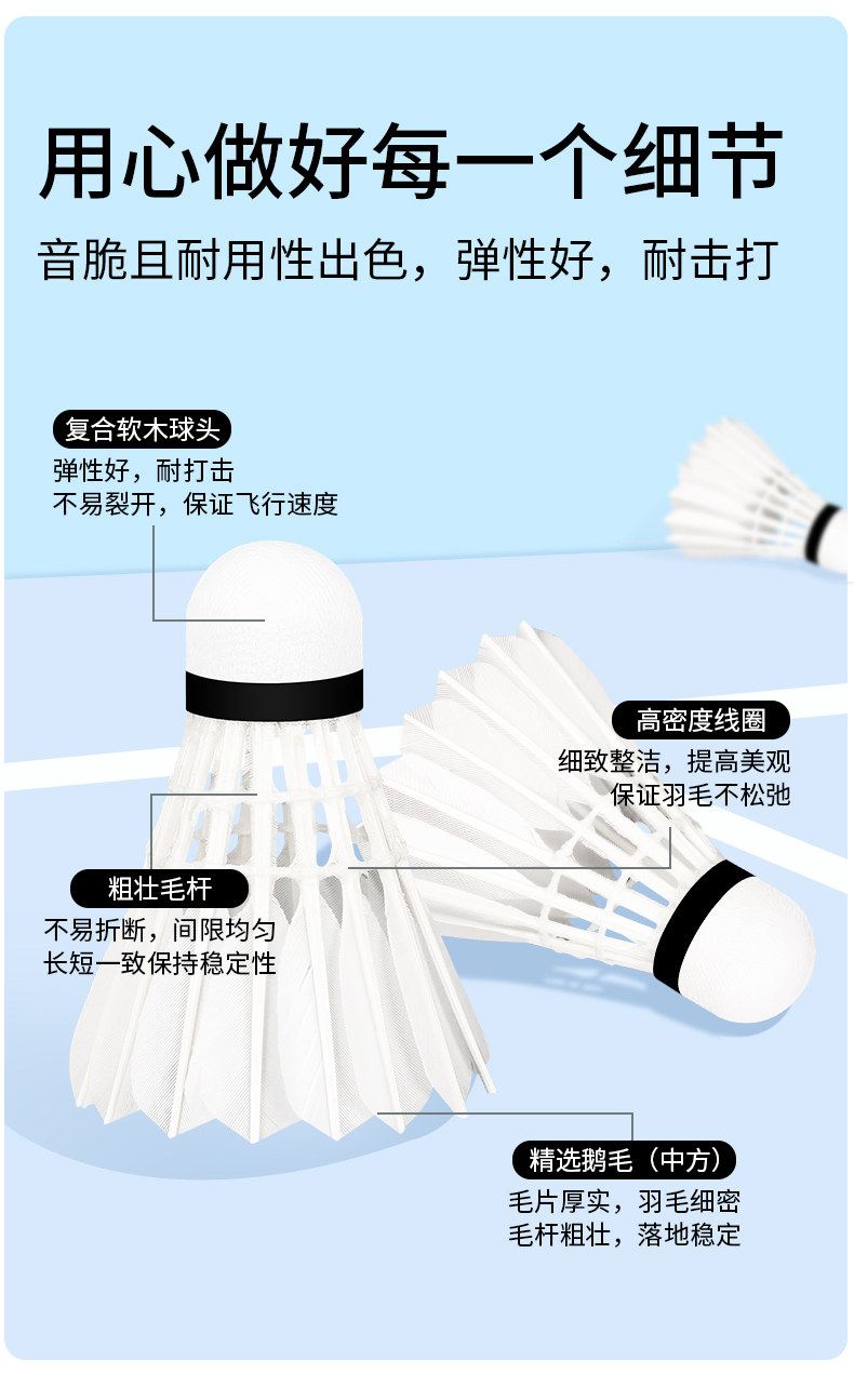 中极星羽毛球球鹅毛12只装耐打稳定正品旗舰店官方羽毛球防风训练