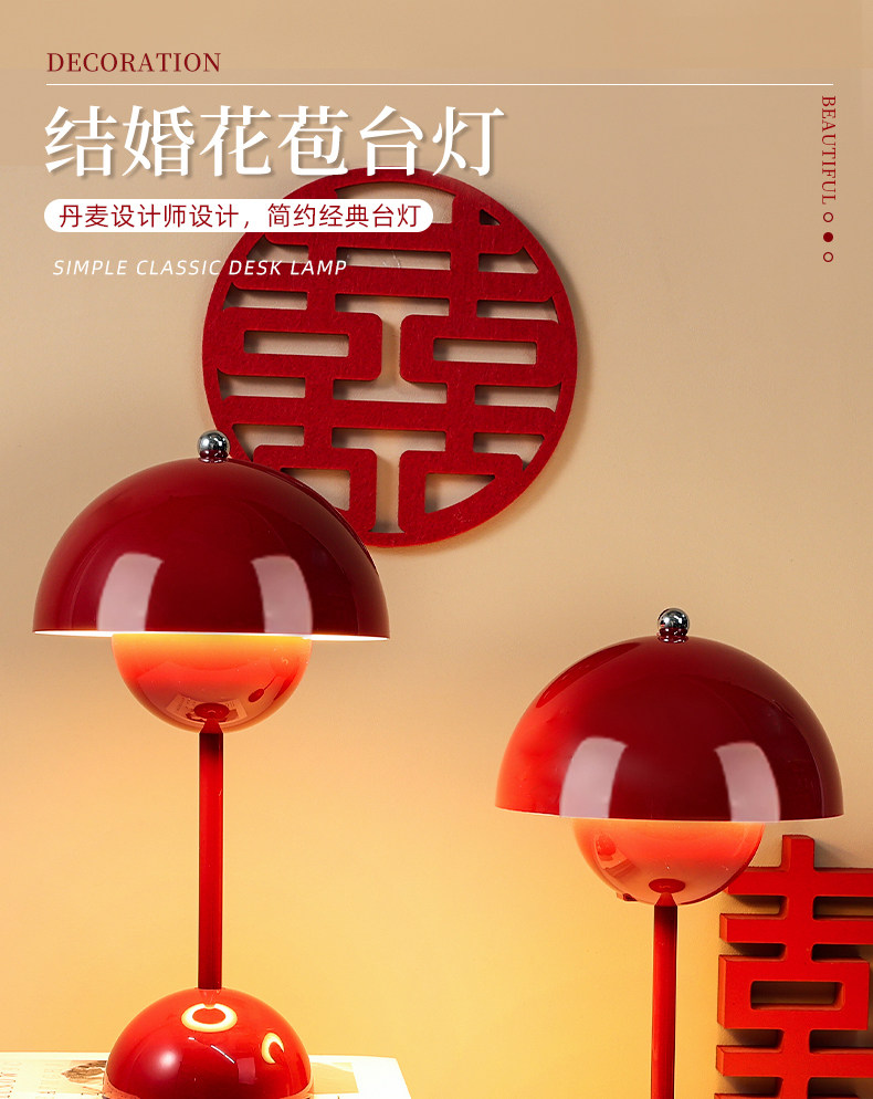 Lampe Changming, lampe de table de mariage, lampe de chevet pour salle de mariage, cadeau de mariage pour les jeunes mariés, paire de lampes à boutons floraux haut de gamme et pratique