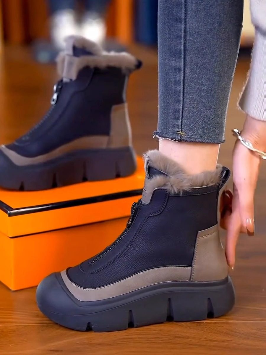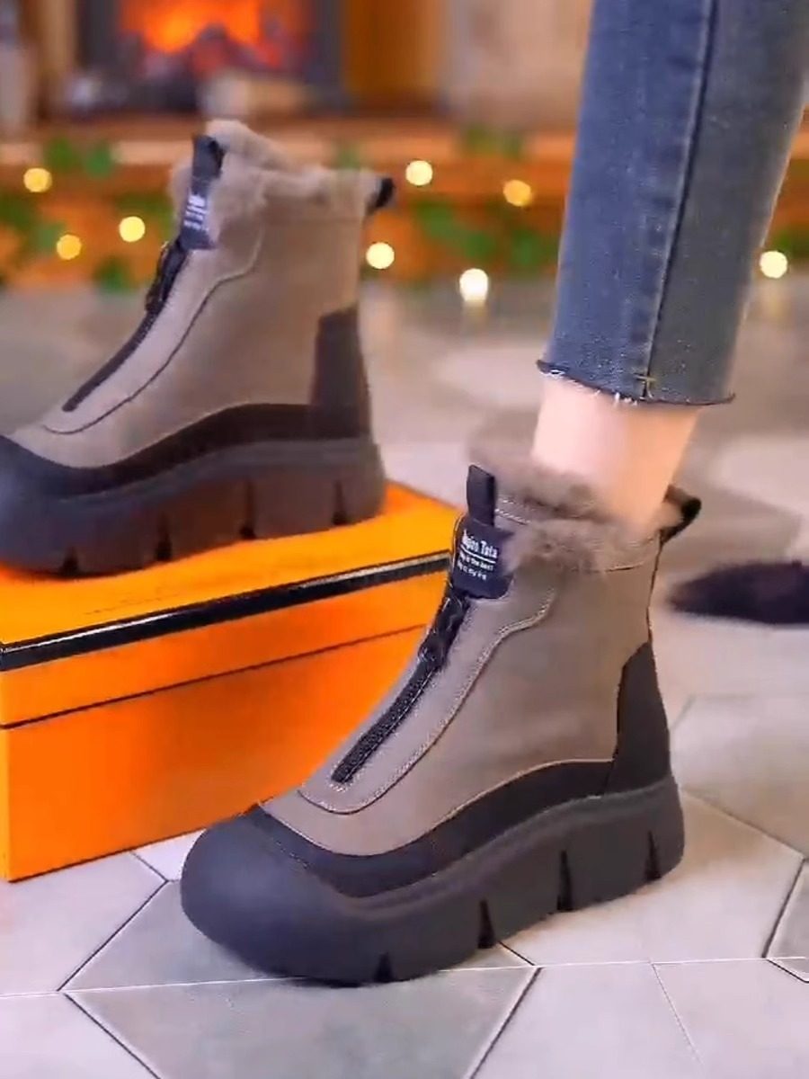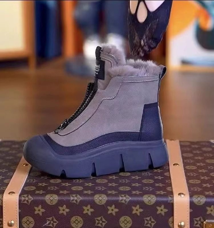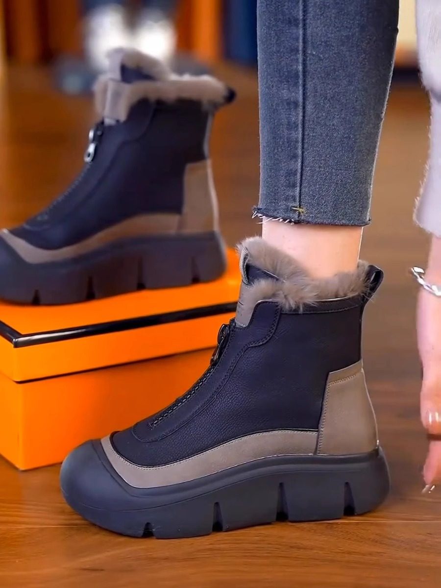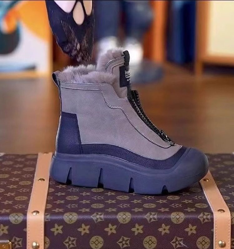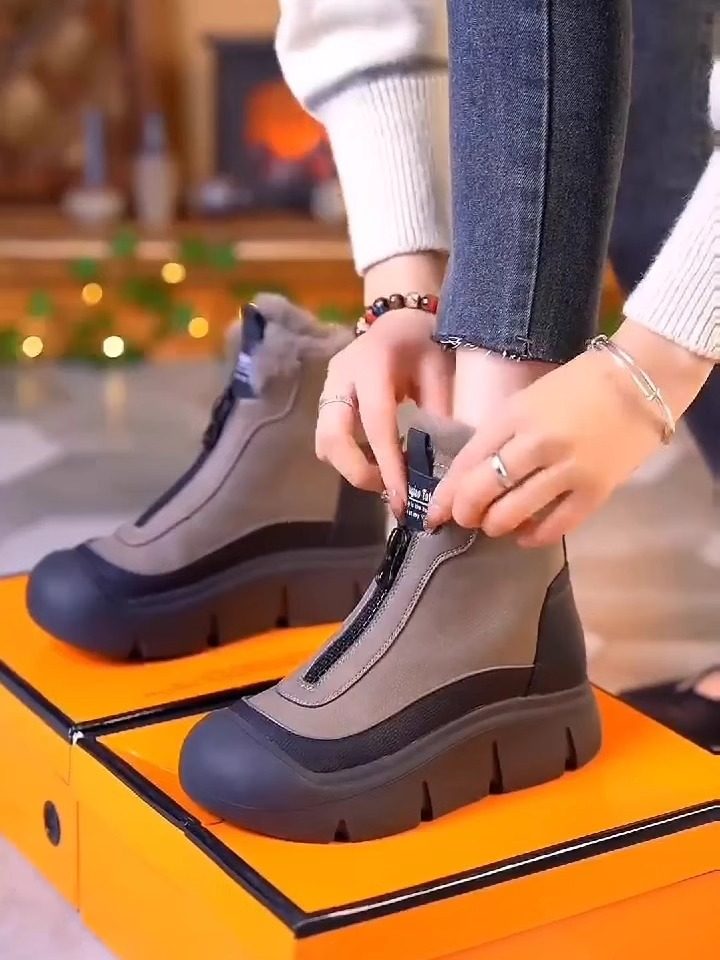 真皮高帮棉鞋女2025冬季新款时尚雪地靴加绒加厚防滑马丁靴