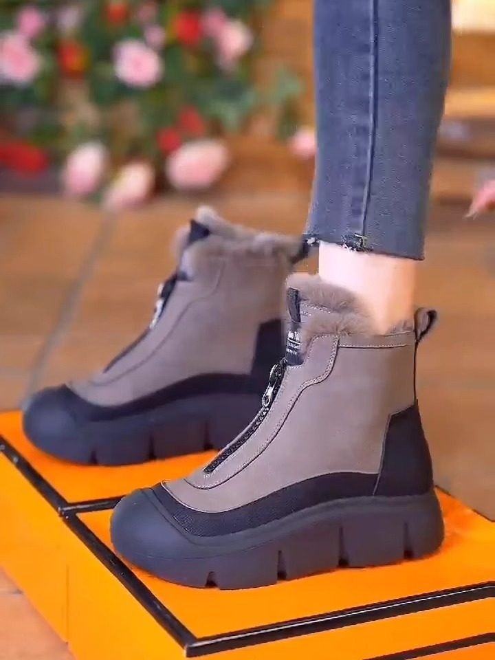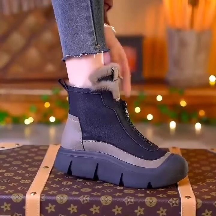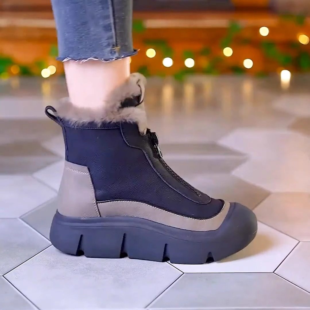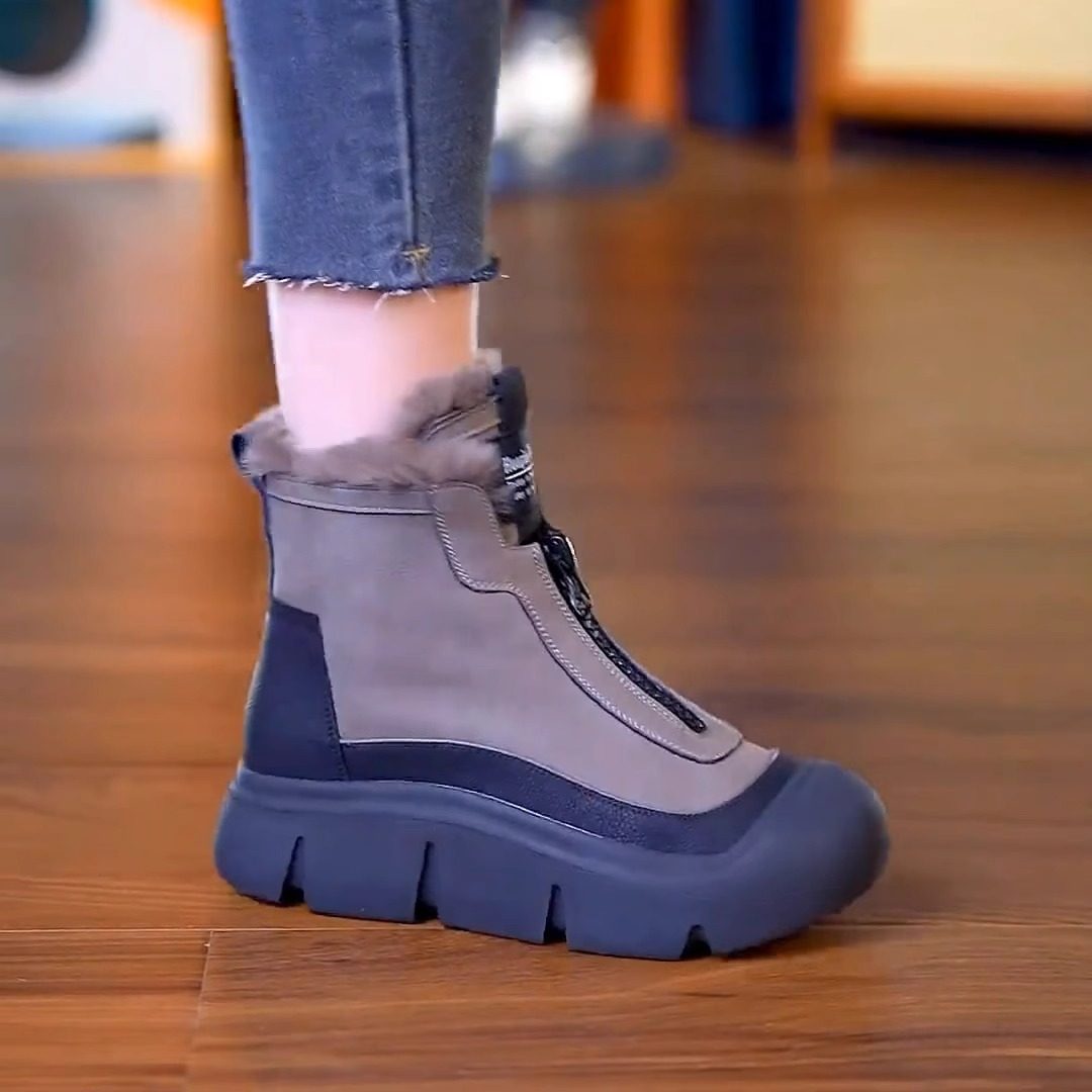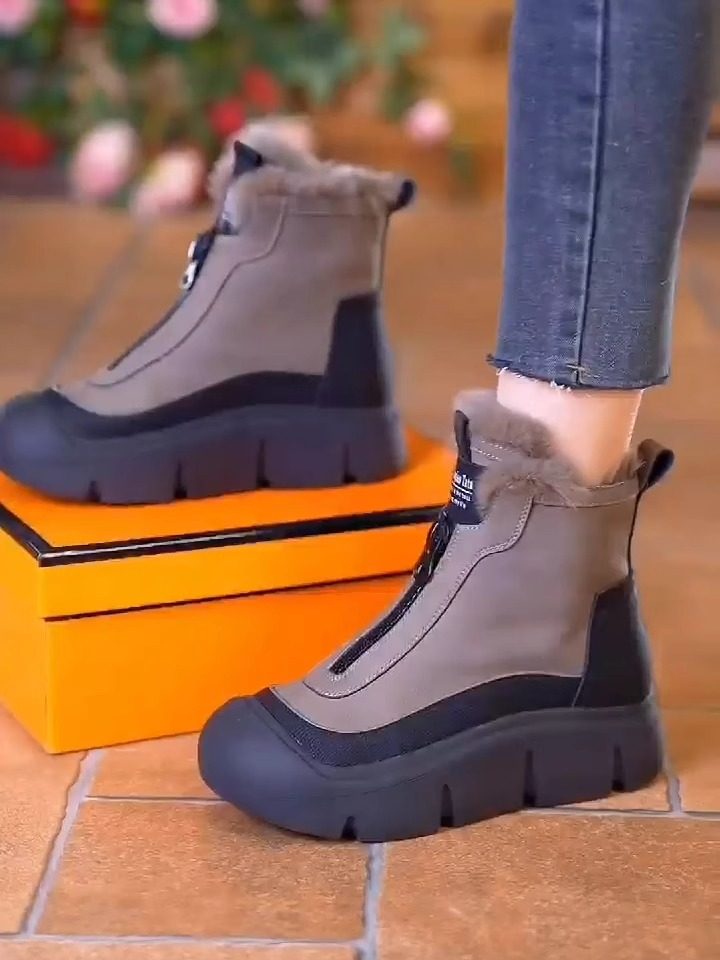 真皮高帮棉鞋女2025冬季新款时尚雪地靴加绒加厚防滑马丁靴