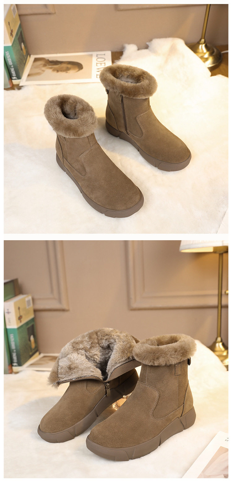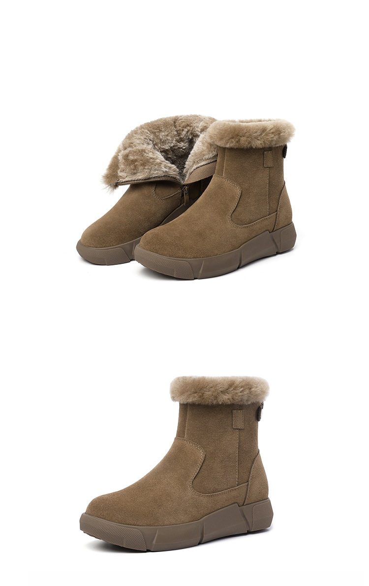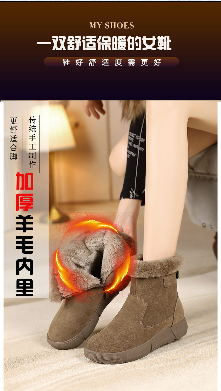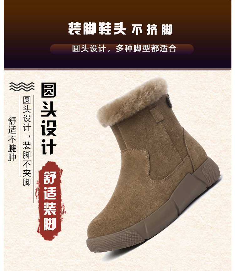 皮毛一体雪地靴2025新款女冬毛口加绒加厚短靴防滑保暖真皮大棉鞋