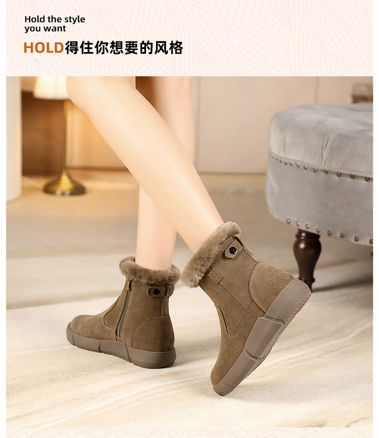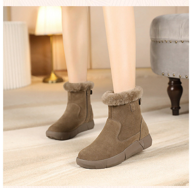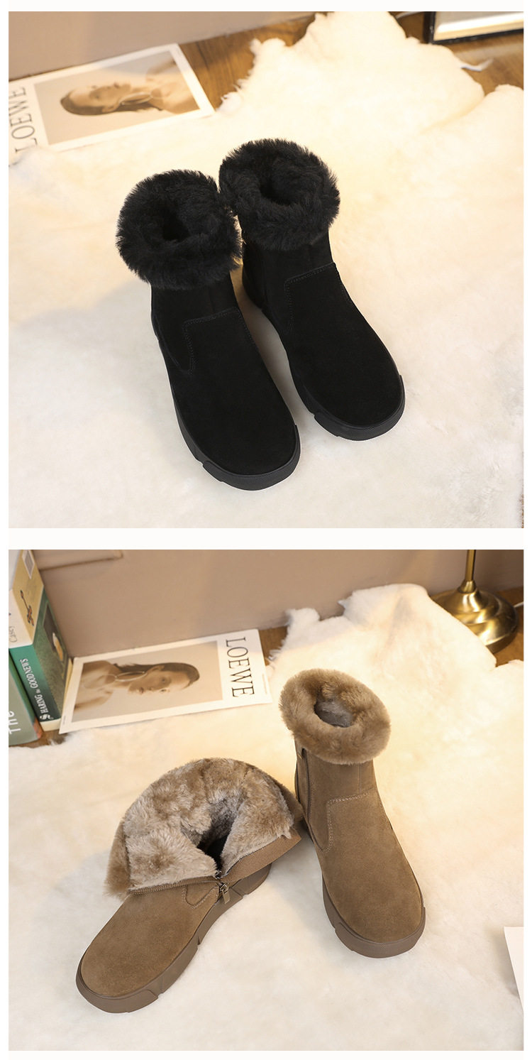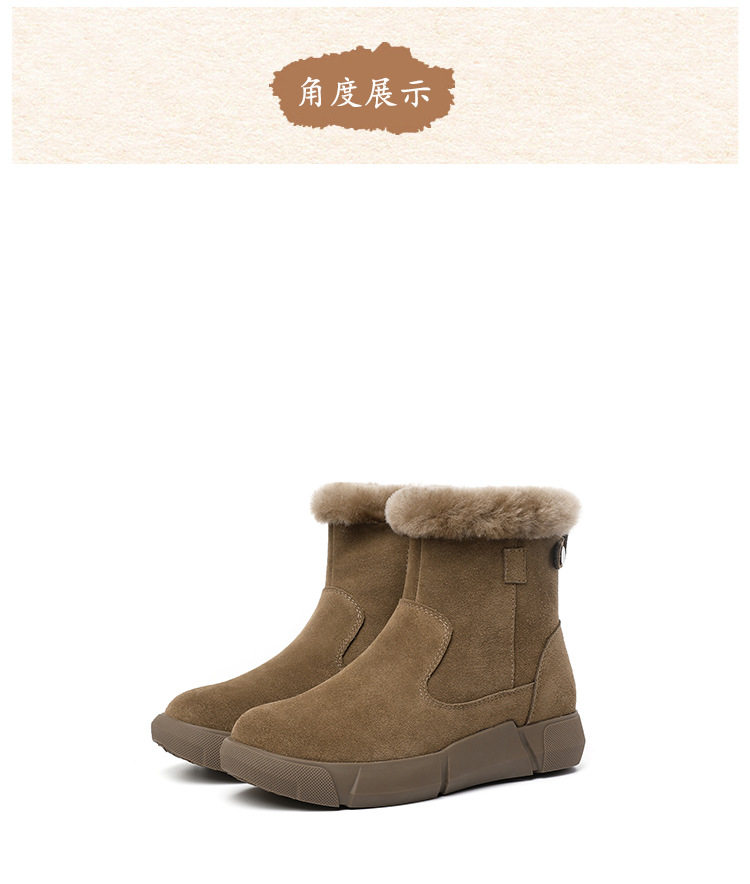 皮毛一体雪地靴2025新款女冬毛口加绒加厚短靴防滑保暖真皮大棉鞋