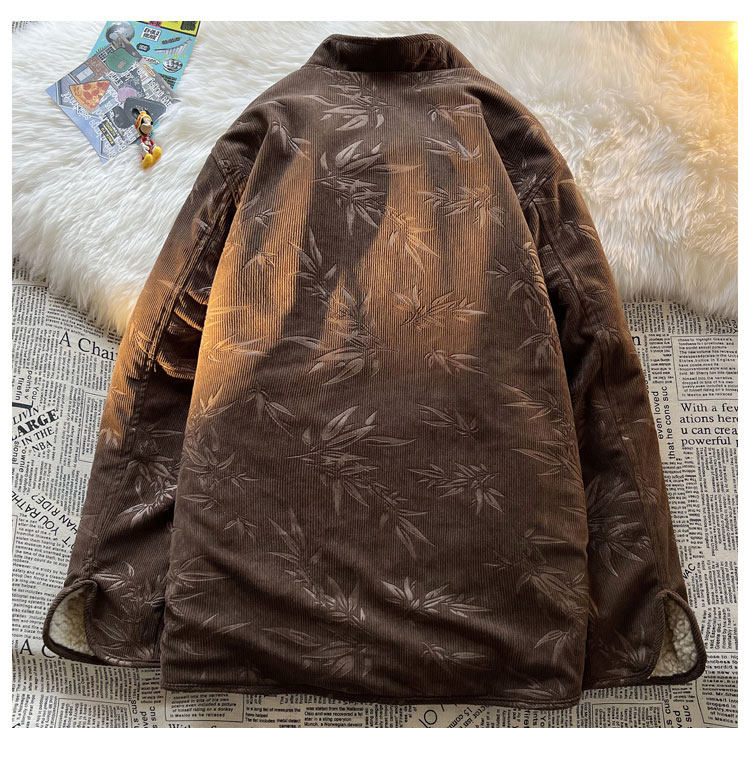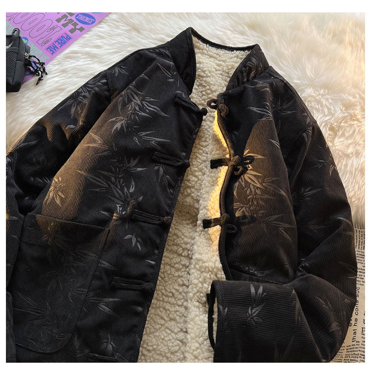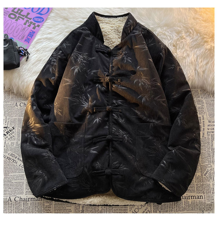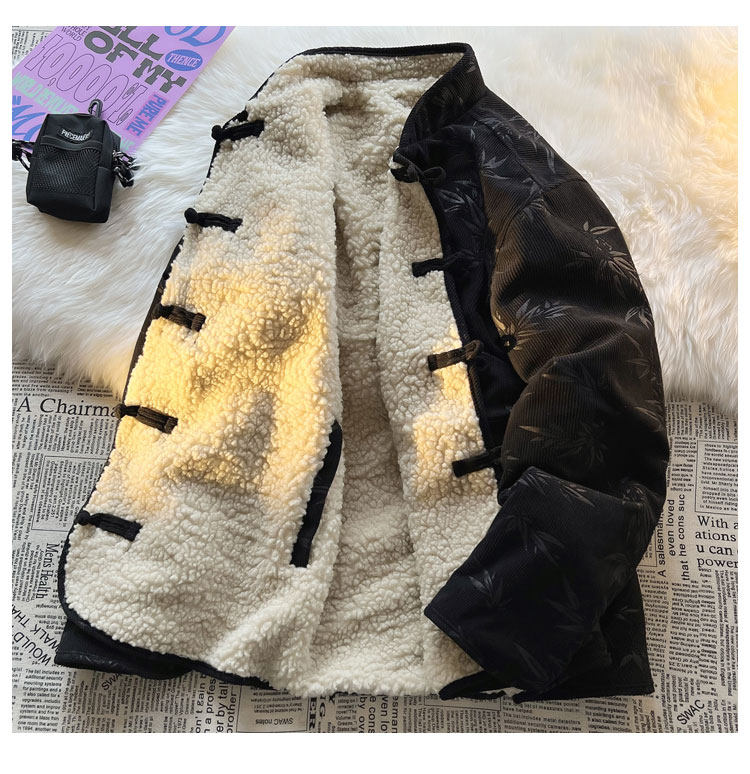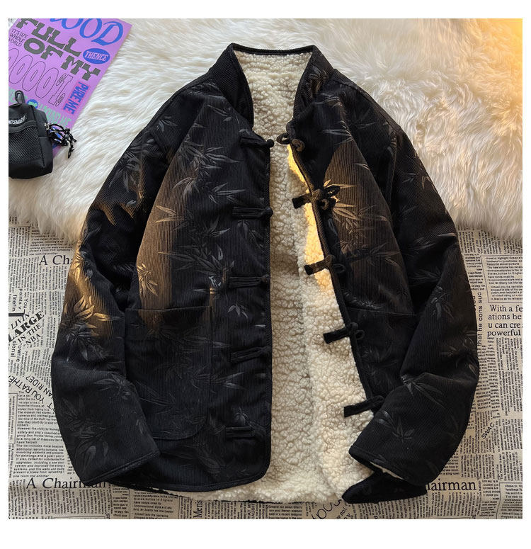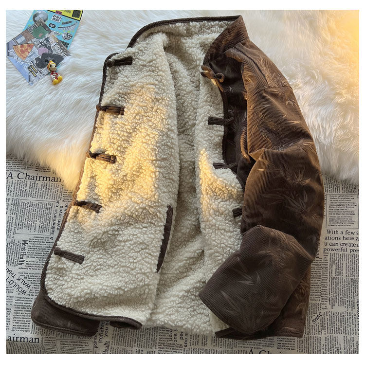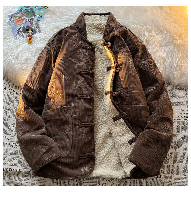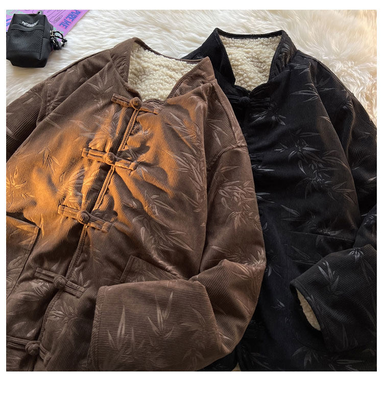 New Chinese style jacquard retro corduroy cotton coat men's reversible Tang suit jacket Chinese style lamb velvet cotton coat winter