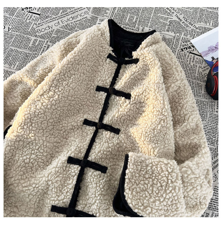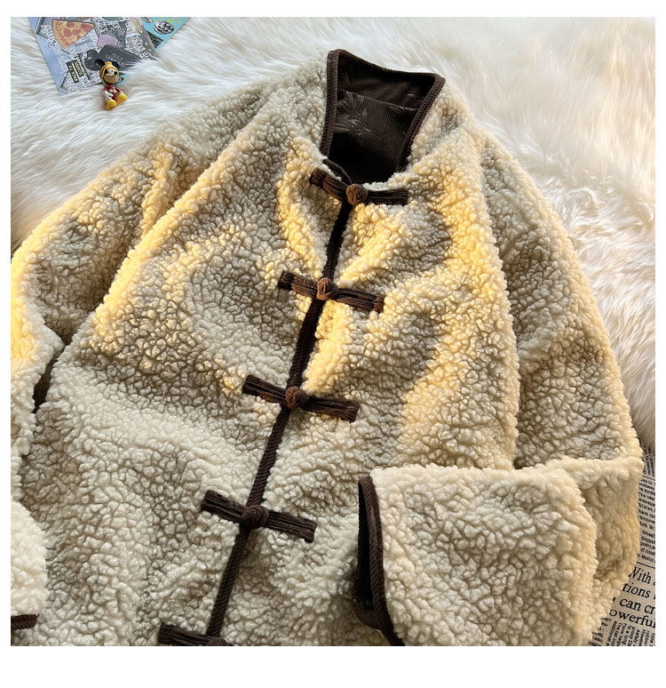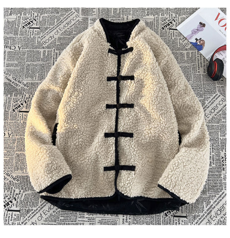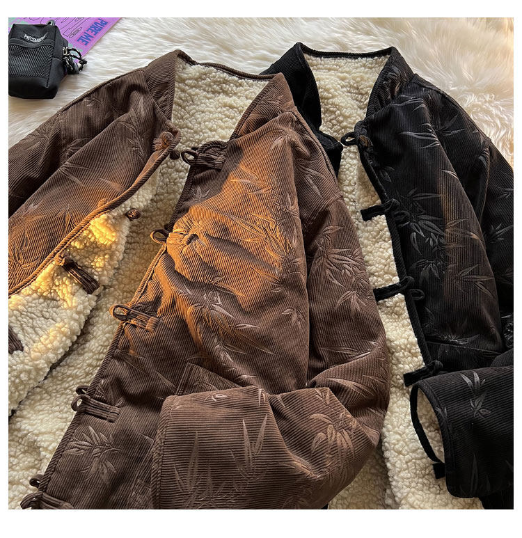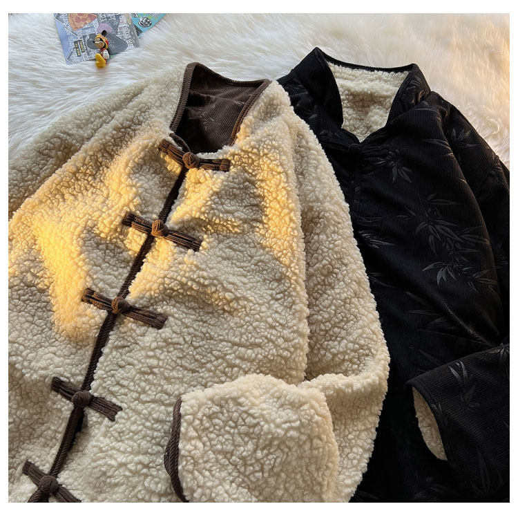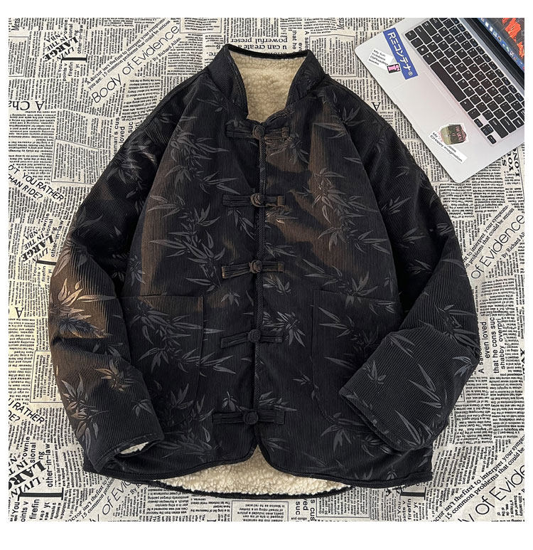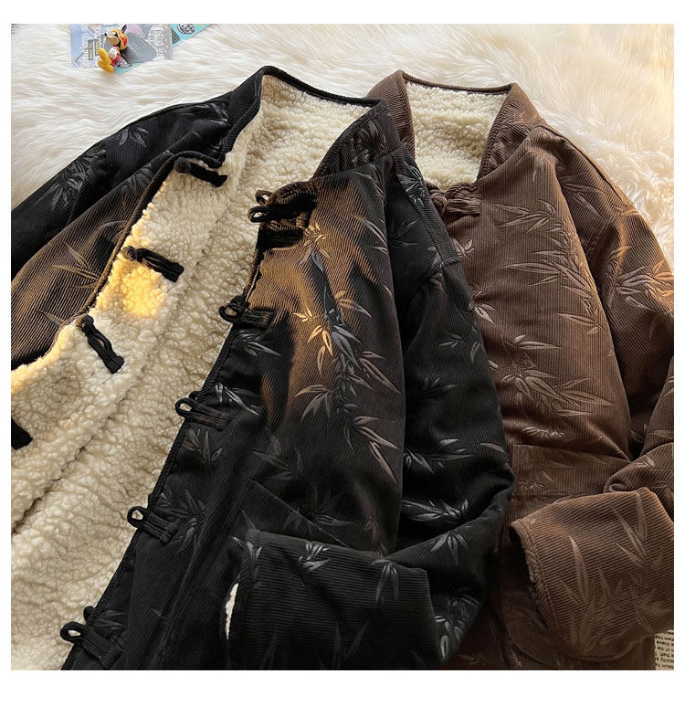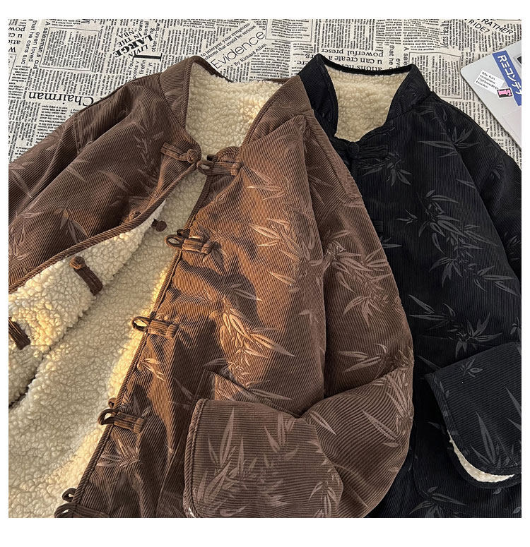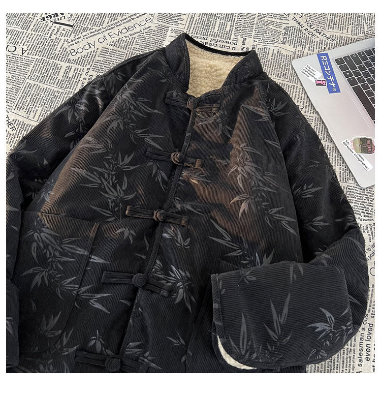 New Chinese style jacquard retro corduroy cotton coat men's reversible Tang suit jacket Chinese style lamb velvet cotton coat winter
