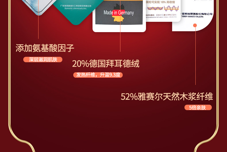 面料材质成分 再生纤维素纤维52% 聚丙烯腈纤维(腈纶)40% 聚氨酯弹性纤维(氨纶)8%