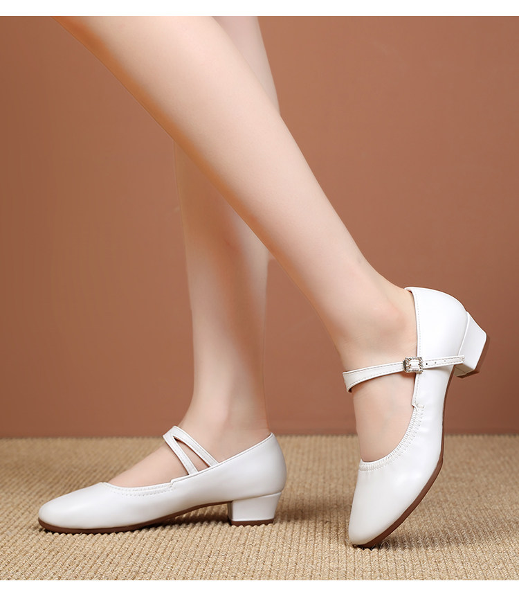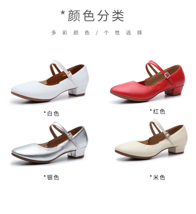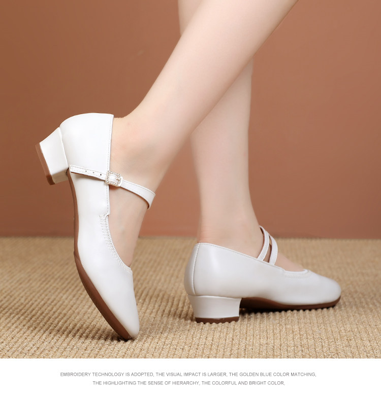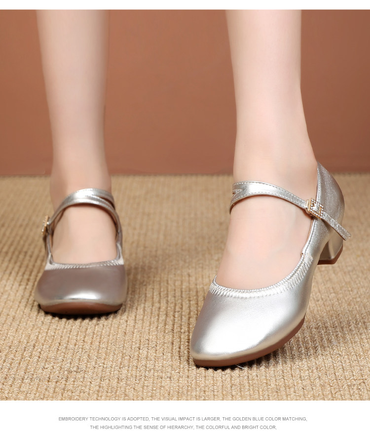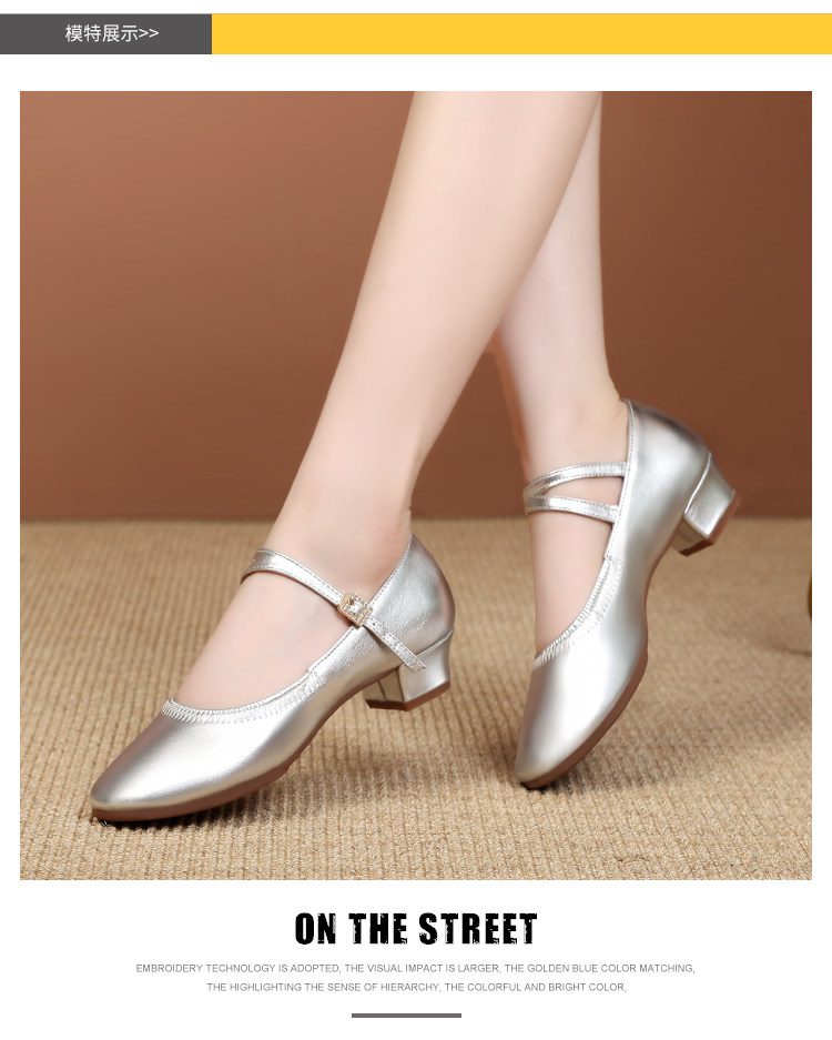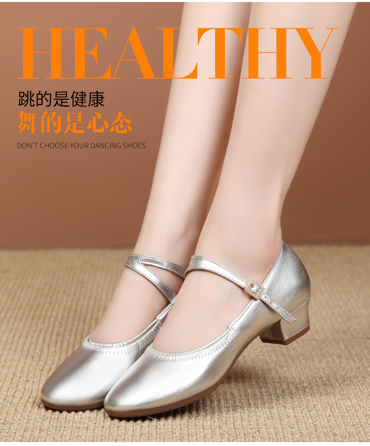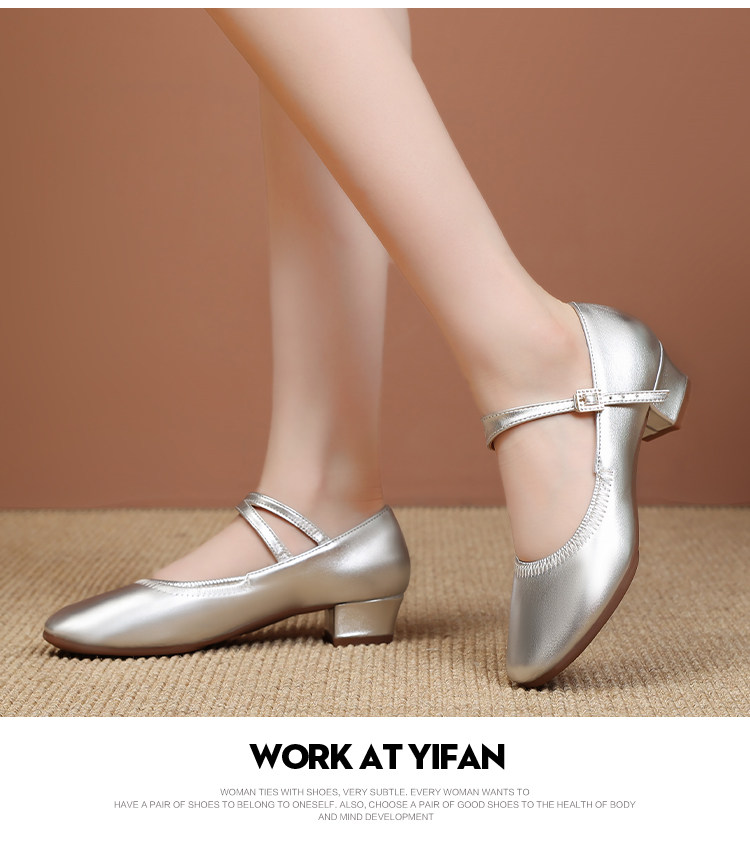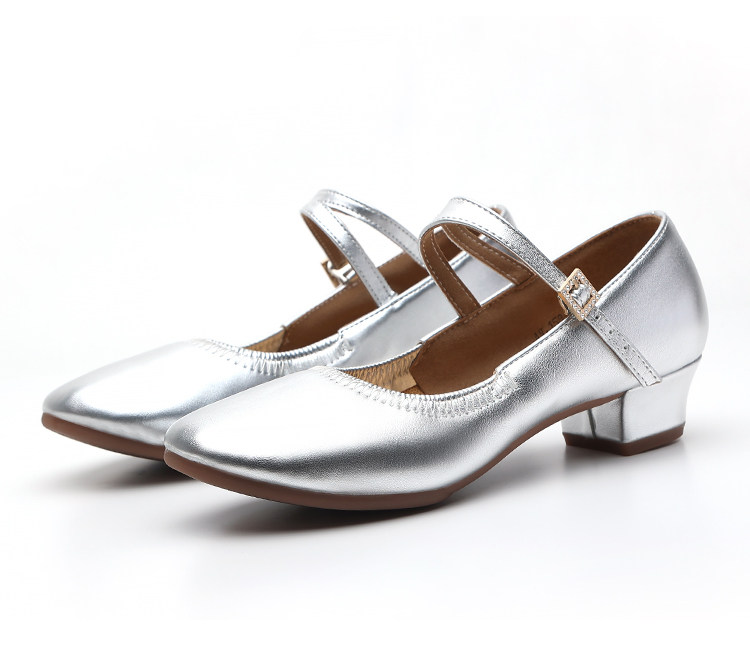 Shallow Round-Toe Low-Heeled Professional Dance Shoes for Women, Square Dance Leather Shoes, Silver Ballroom Dance Shoes, Dance-Specific Shoes