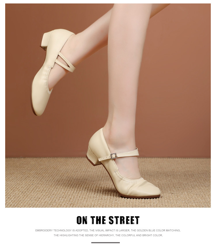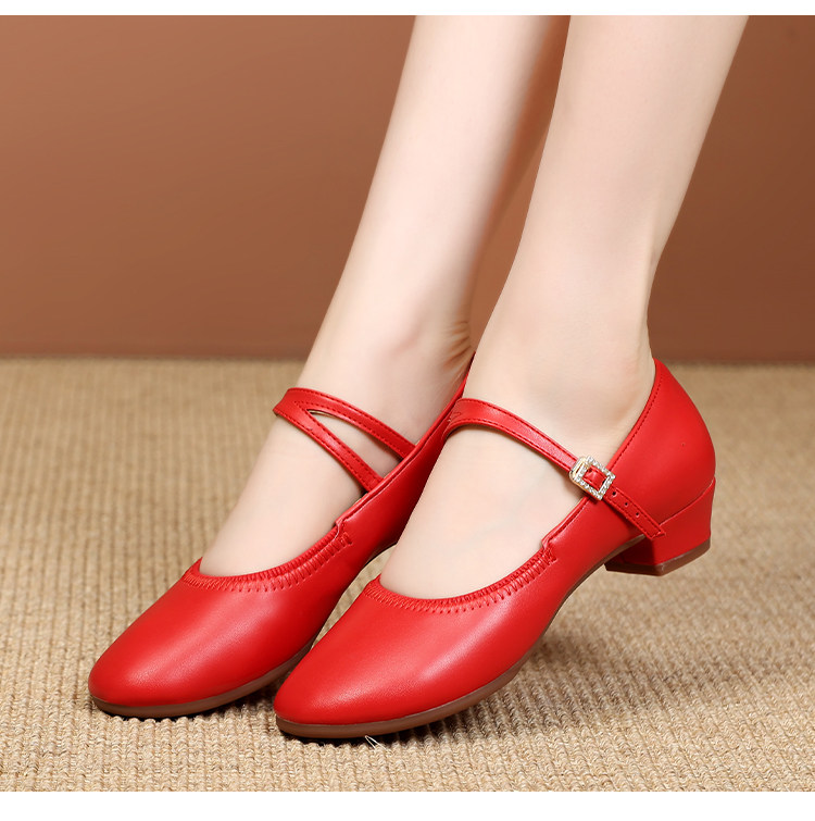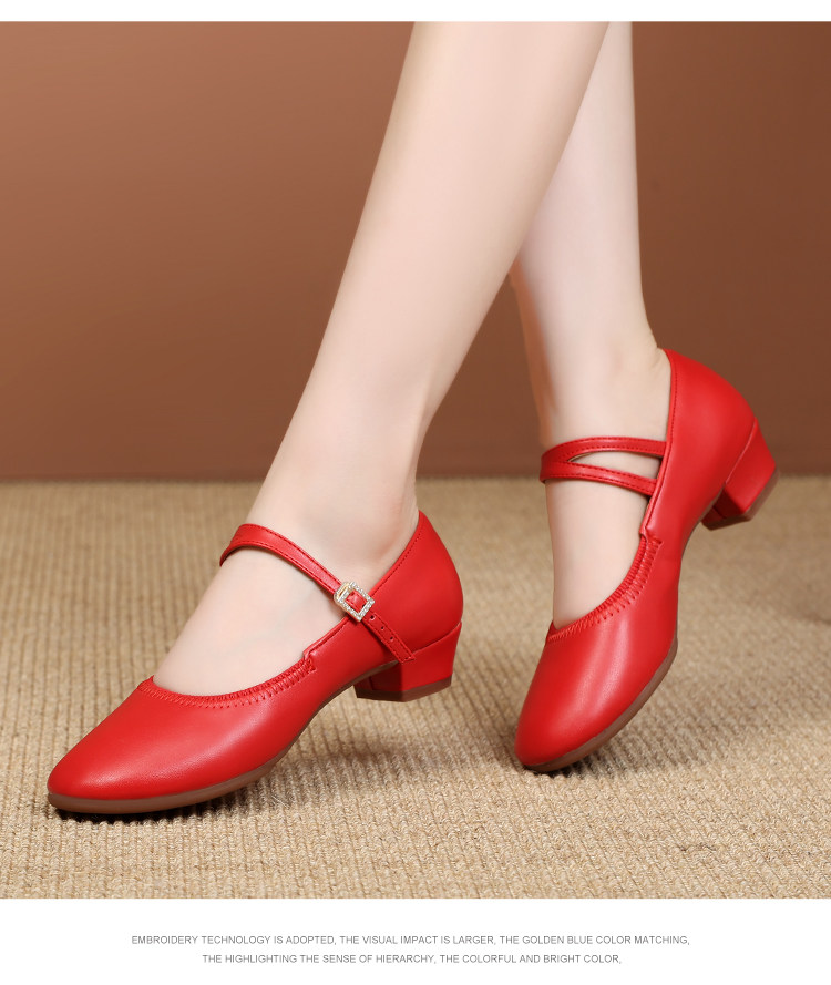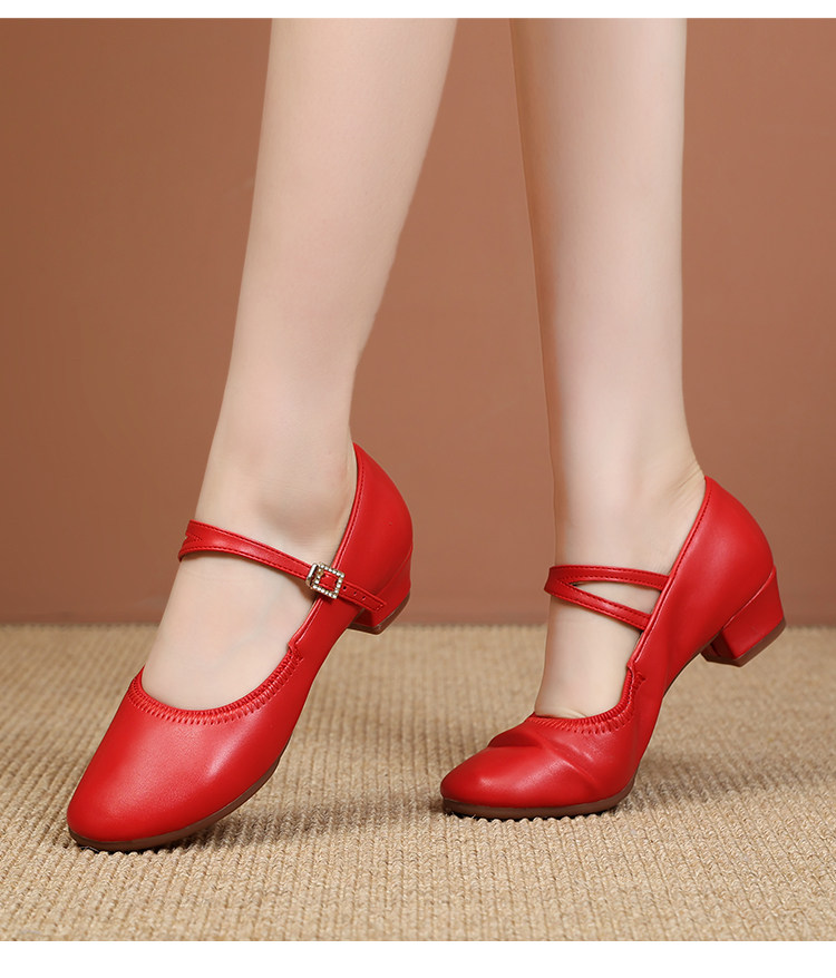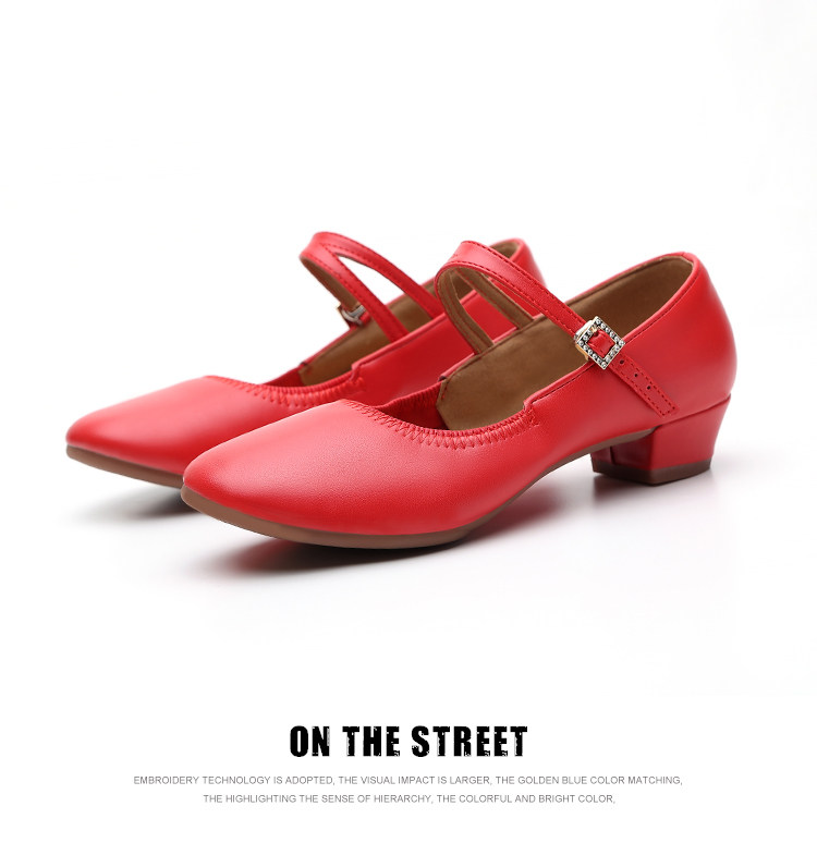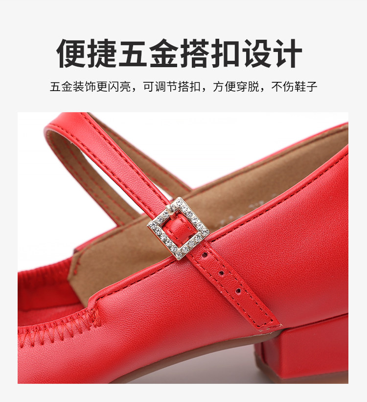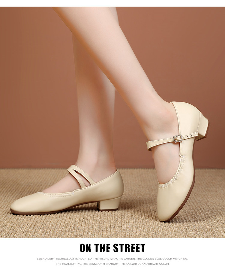 Shallow Round-Toe Low-Heeled Professional Dance Shoes for Women, Square Dance Leather Shoes, Silver Ballroom Dance Shoes, Dance-Specific Shoes