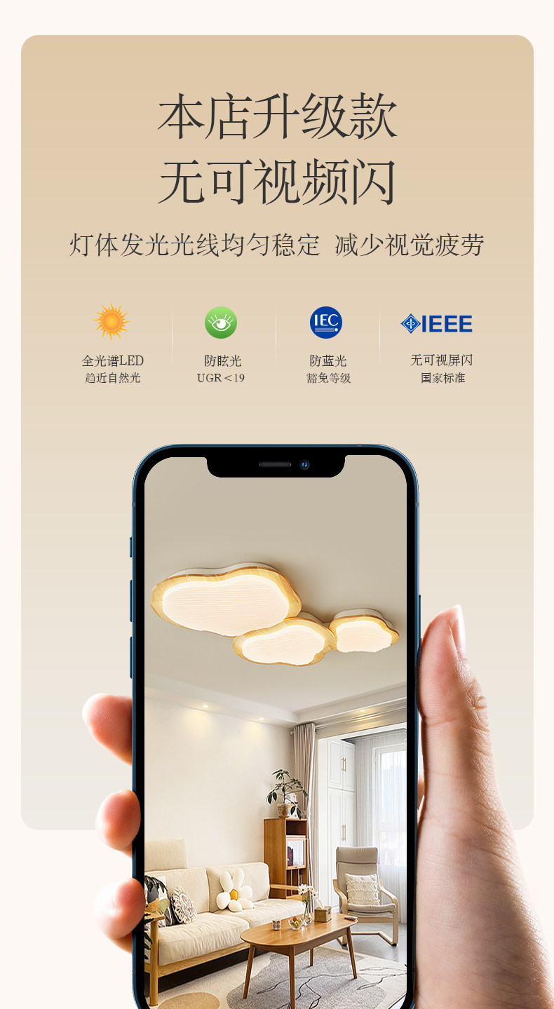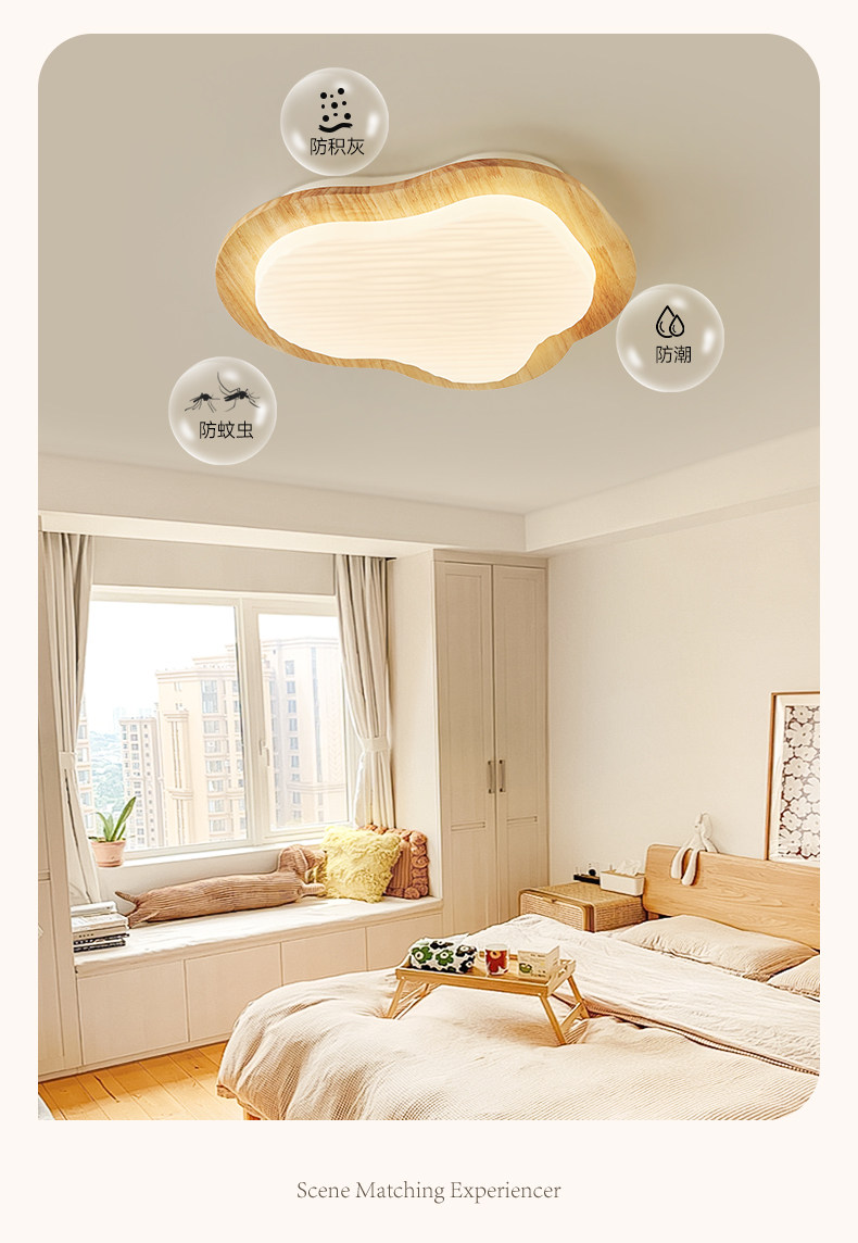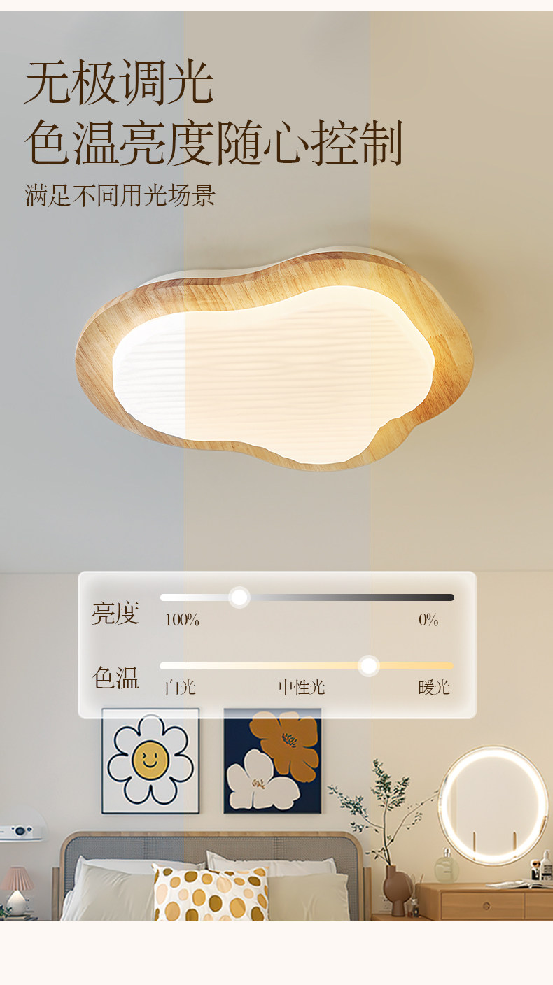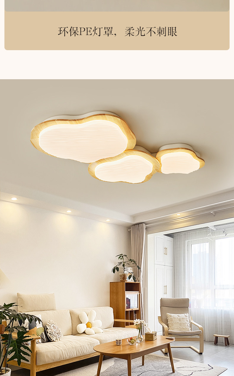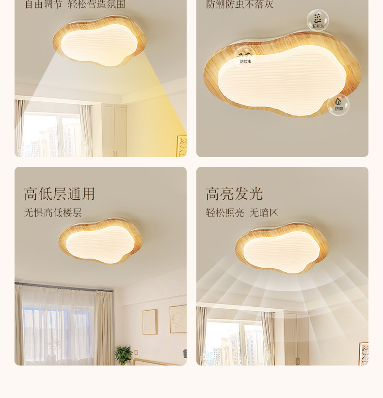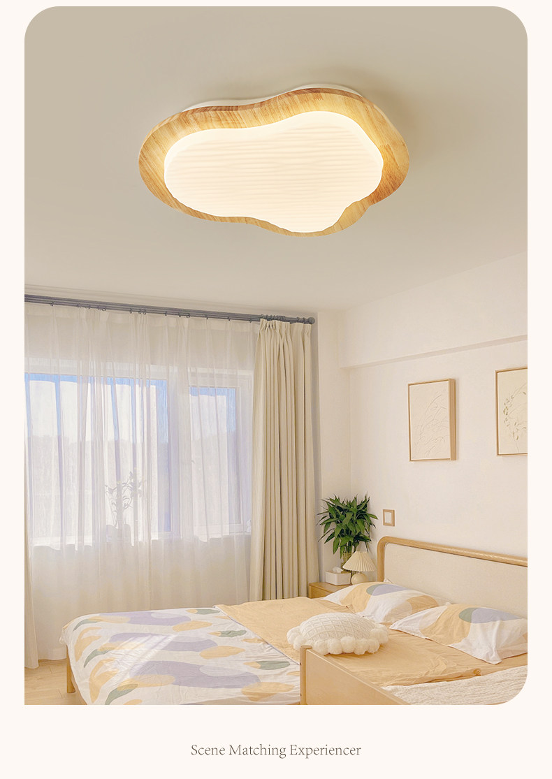 Full-Spectrum Cream Wood-Style Room Lamp Bedroom Lamp 2026 New Eye-Protection Ceiling Lamp Japanese-Style Living Room Main Light