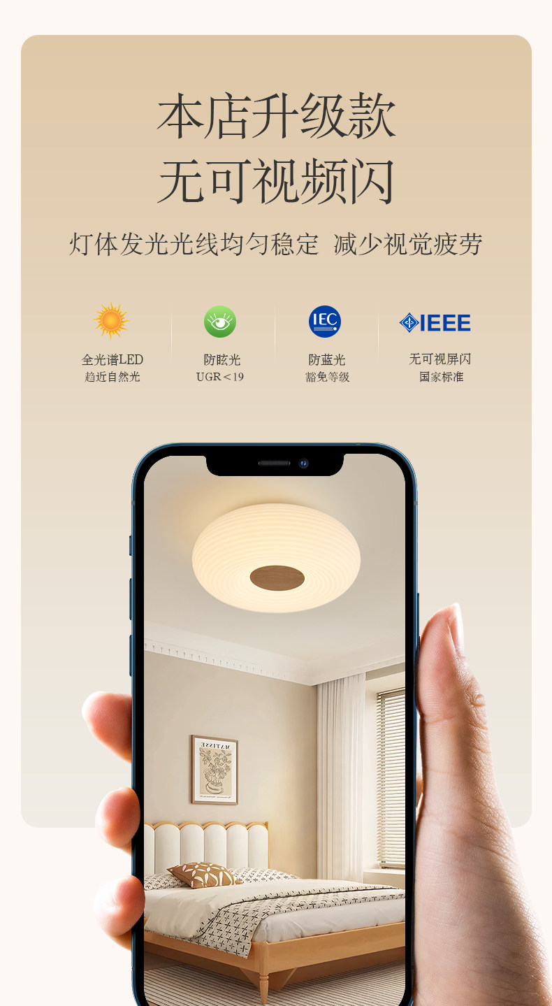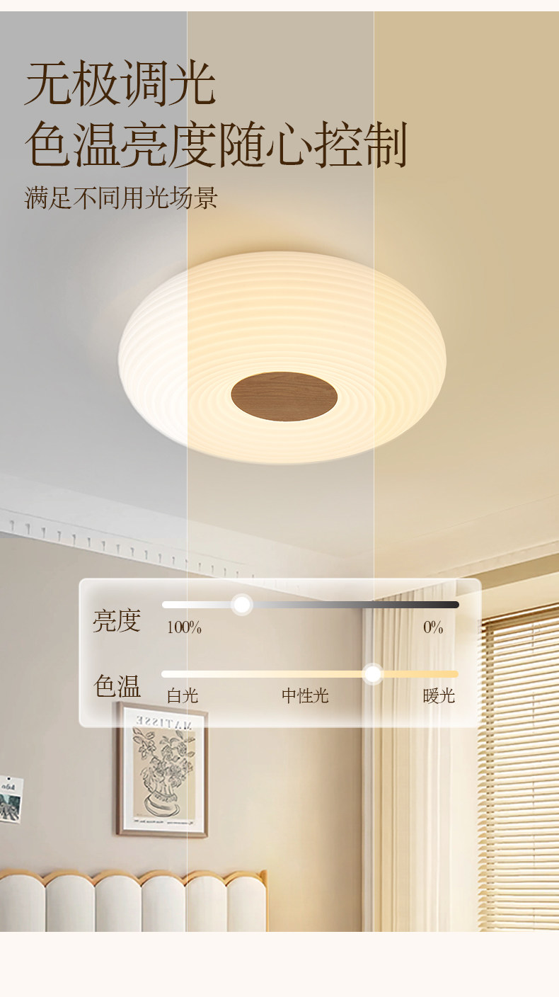 Cream-Style Ceiling Lamp, Bedroom Lamp, Simple Modern Nordic Full-Spectrum Eye Protection, Warm and Intelligent Led for Children's Room