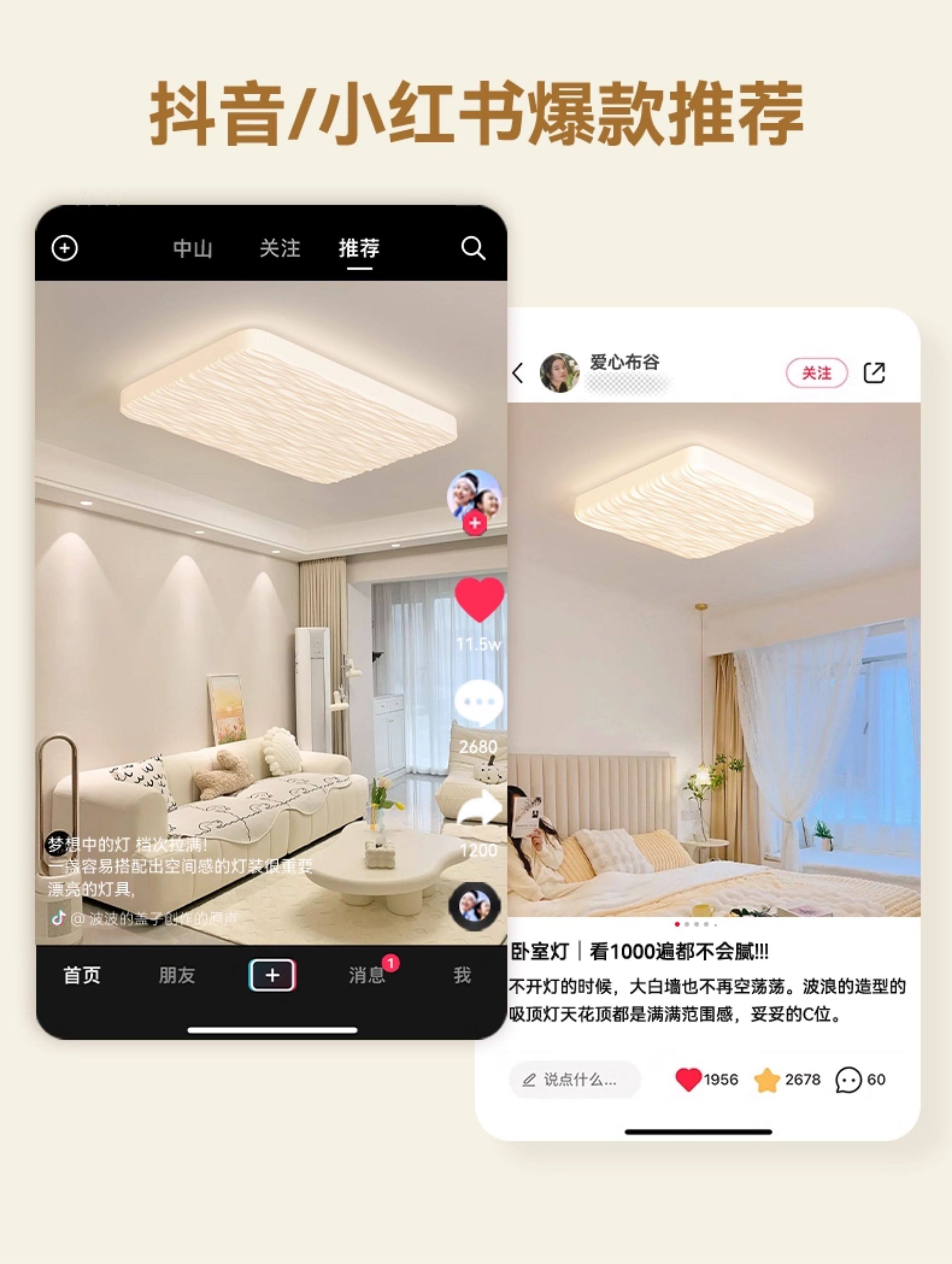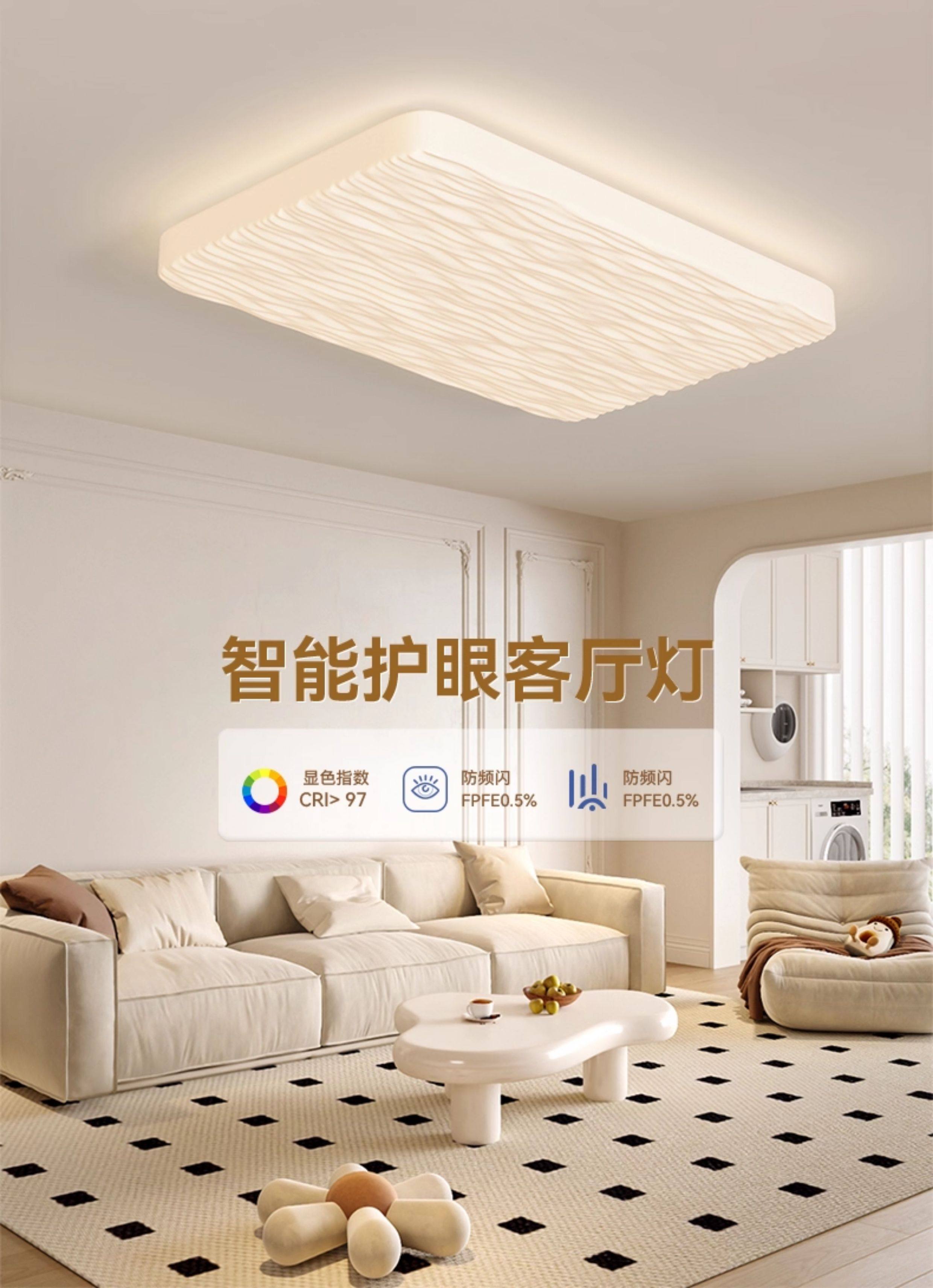 波浪奶油风吸顶灯全光谱护眼主卧室客厅现代简约中山灯具归根照明