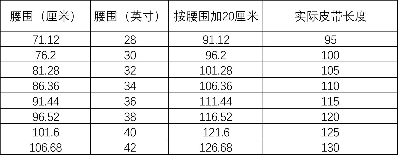 USA(inch) 28-30 30-32 32-34 34-38 38-42