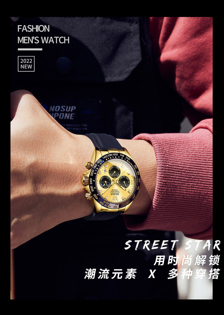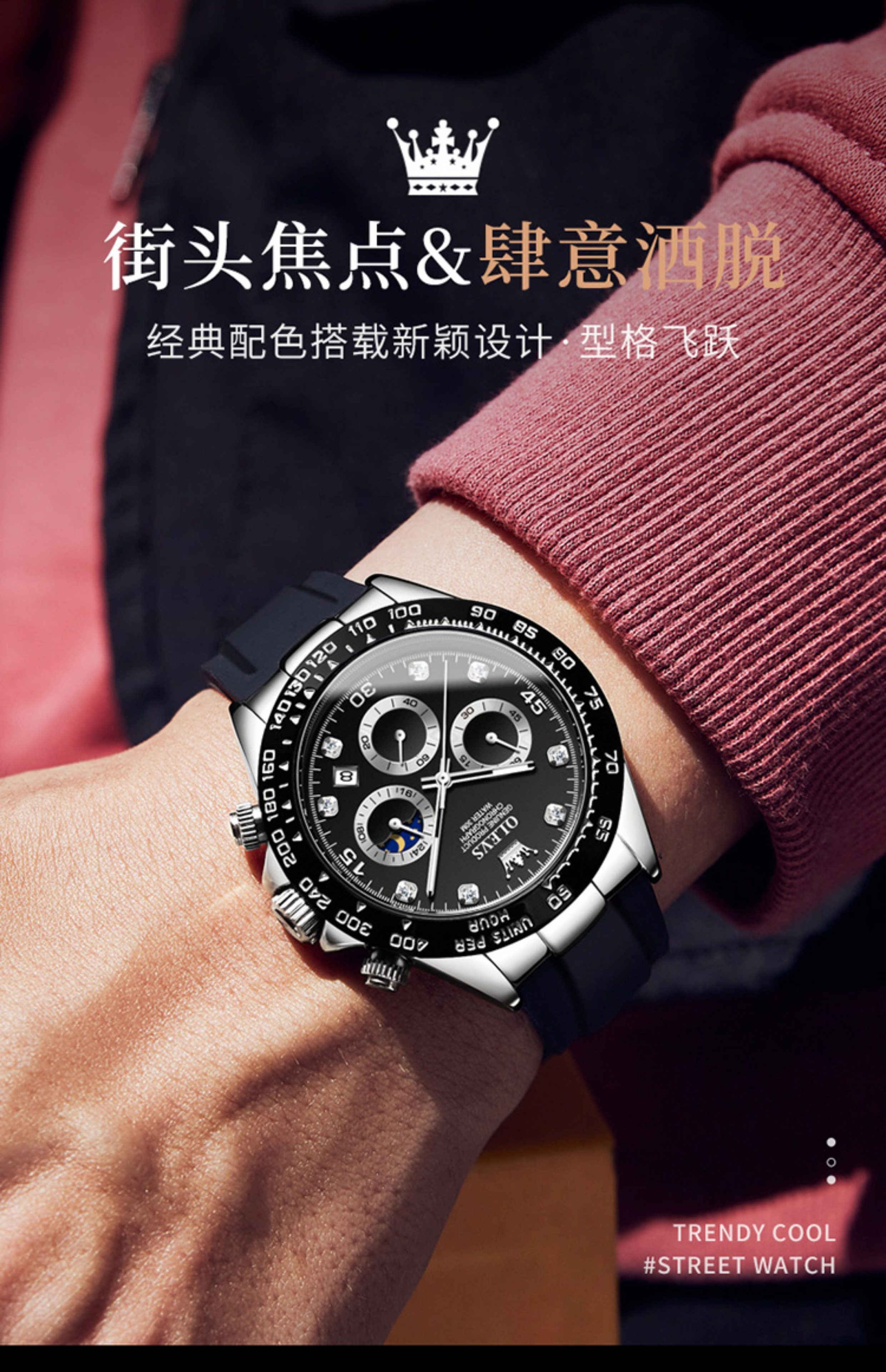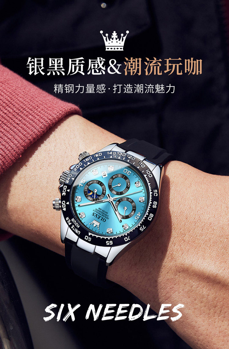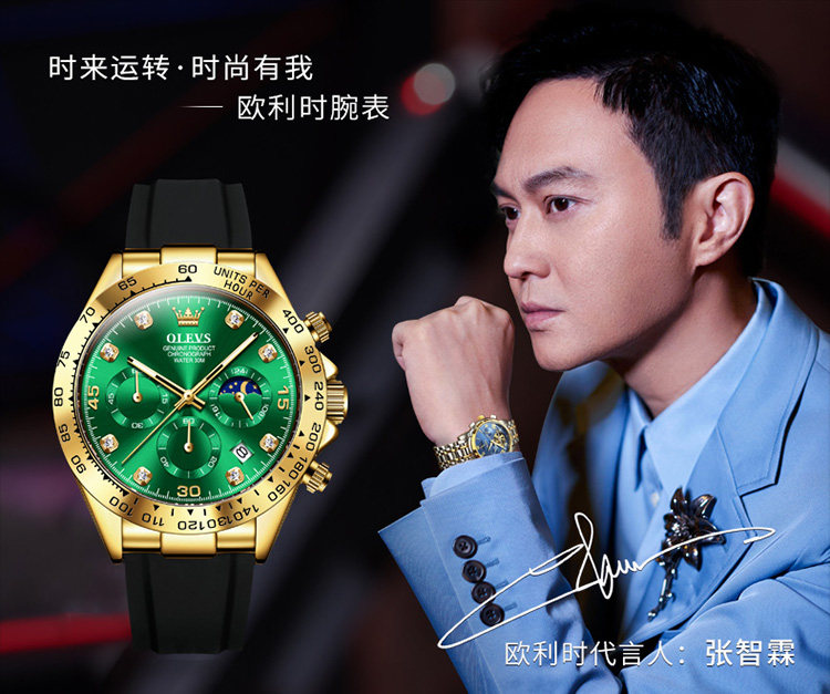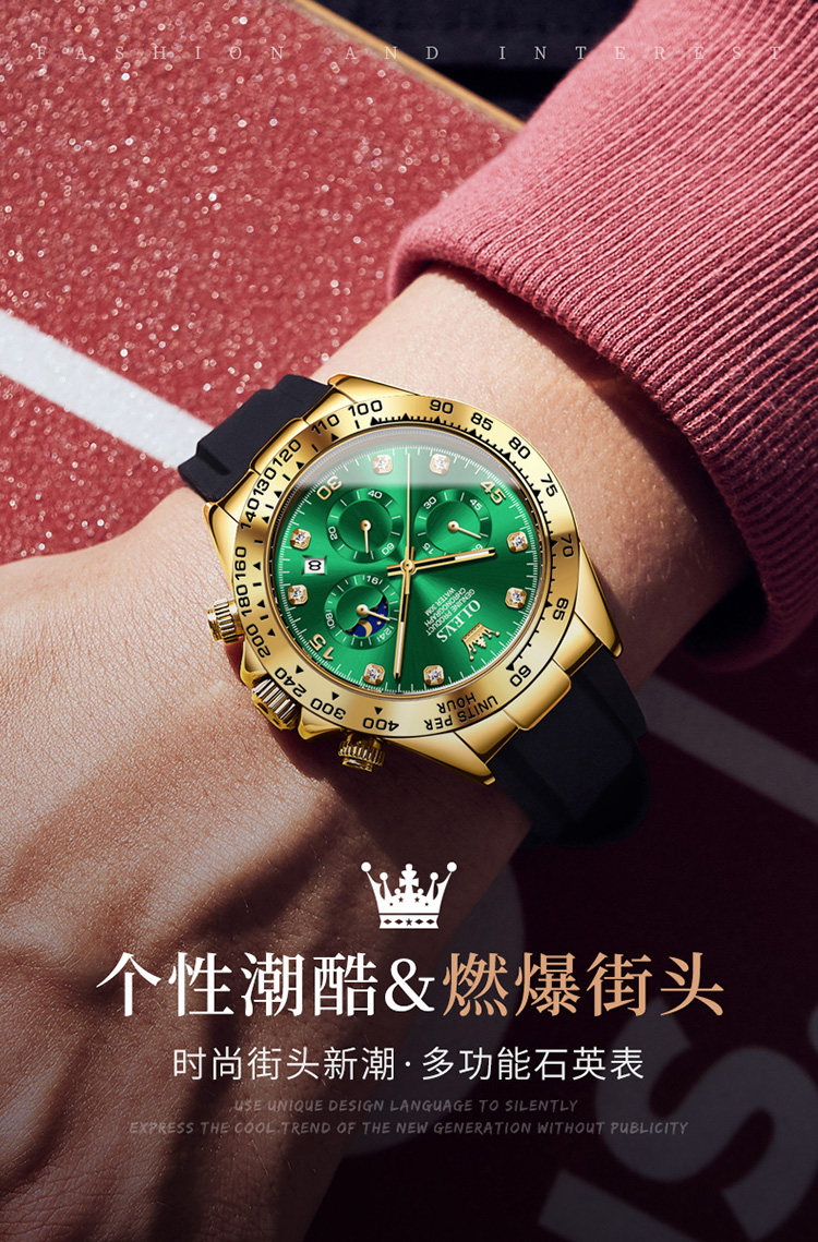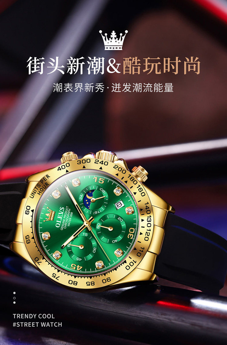 欧利时名牌时尚男士手表绿金迪通拿熊猫腕表硅胶气质男表名表防水