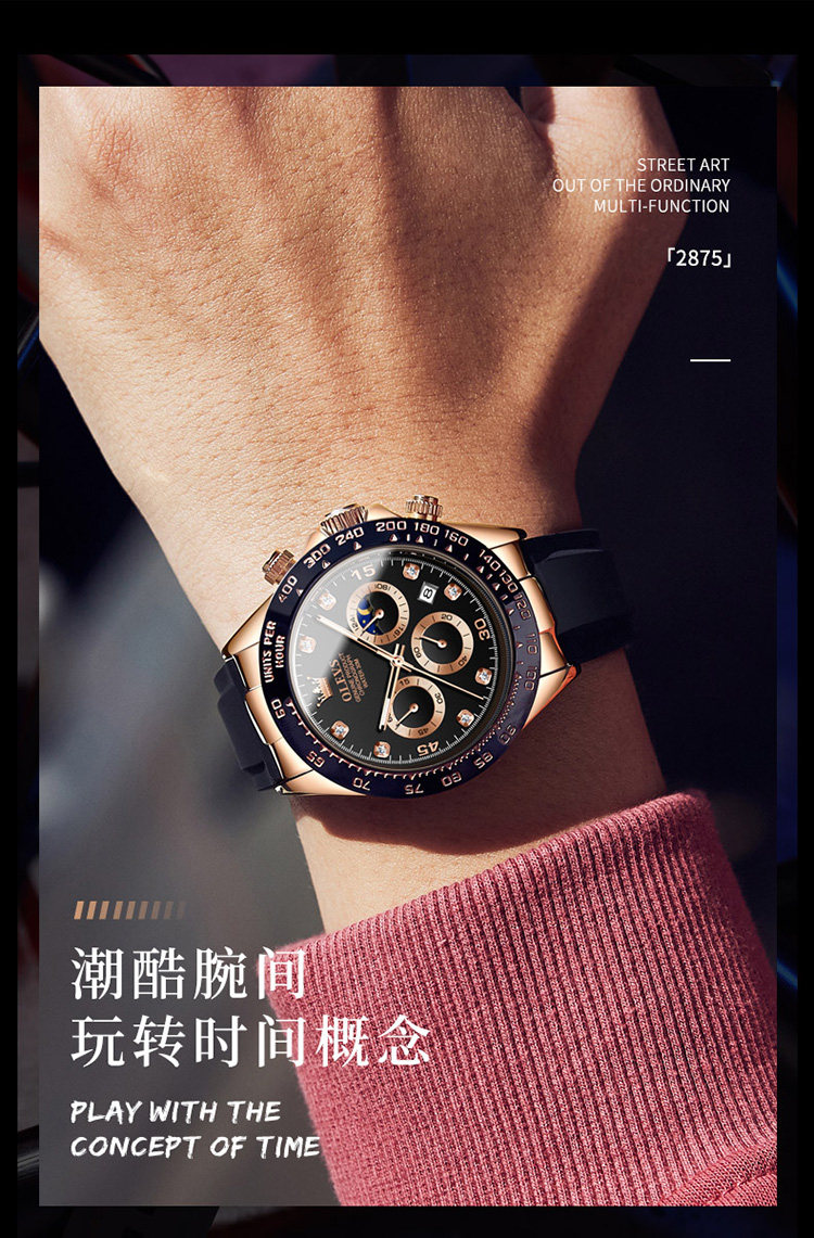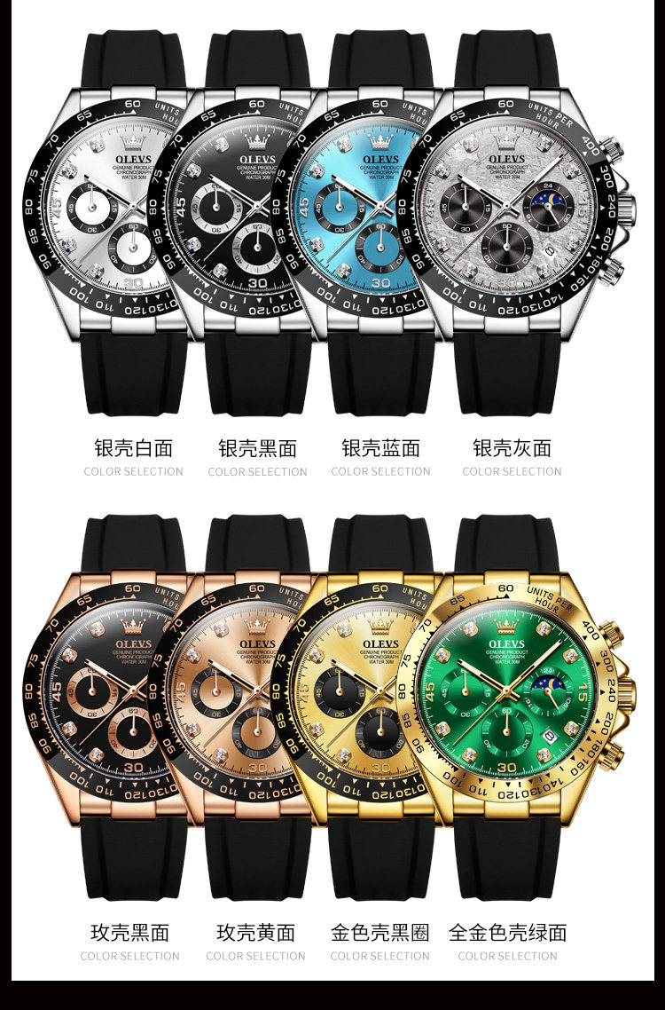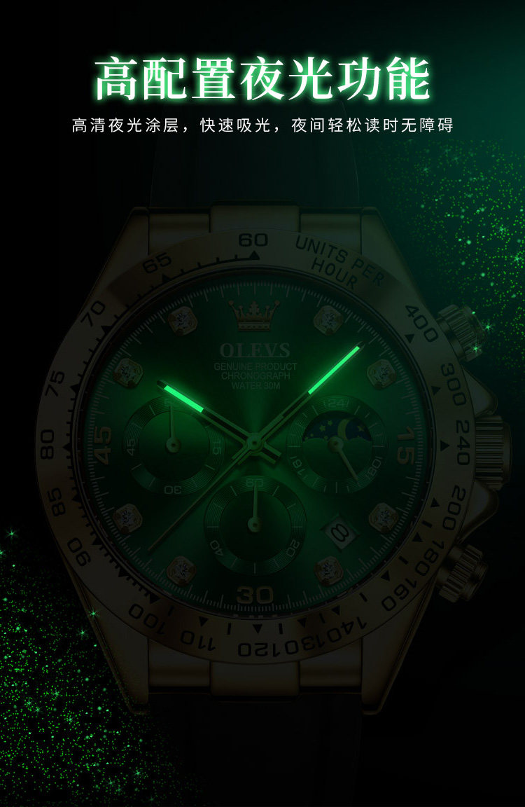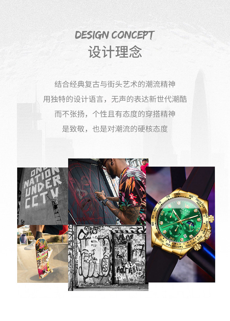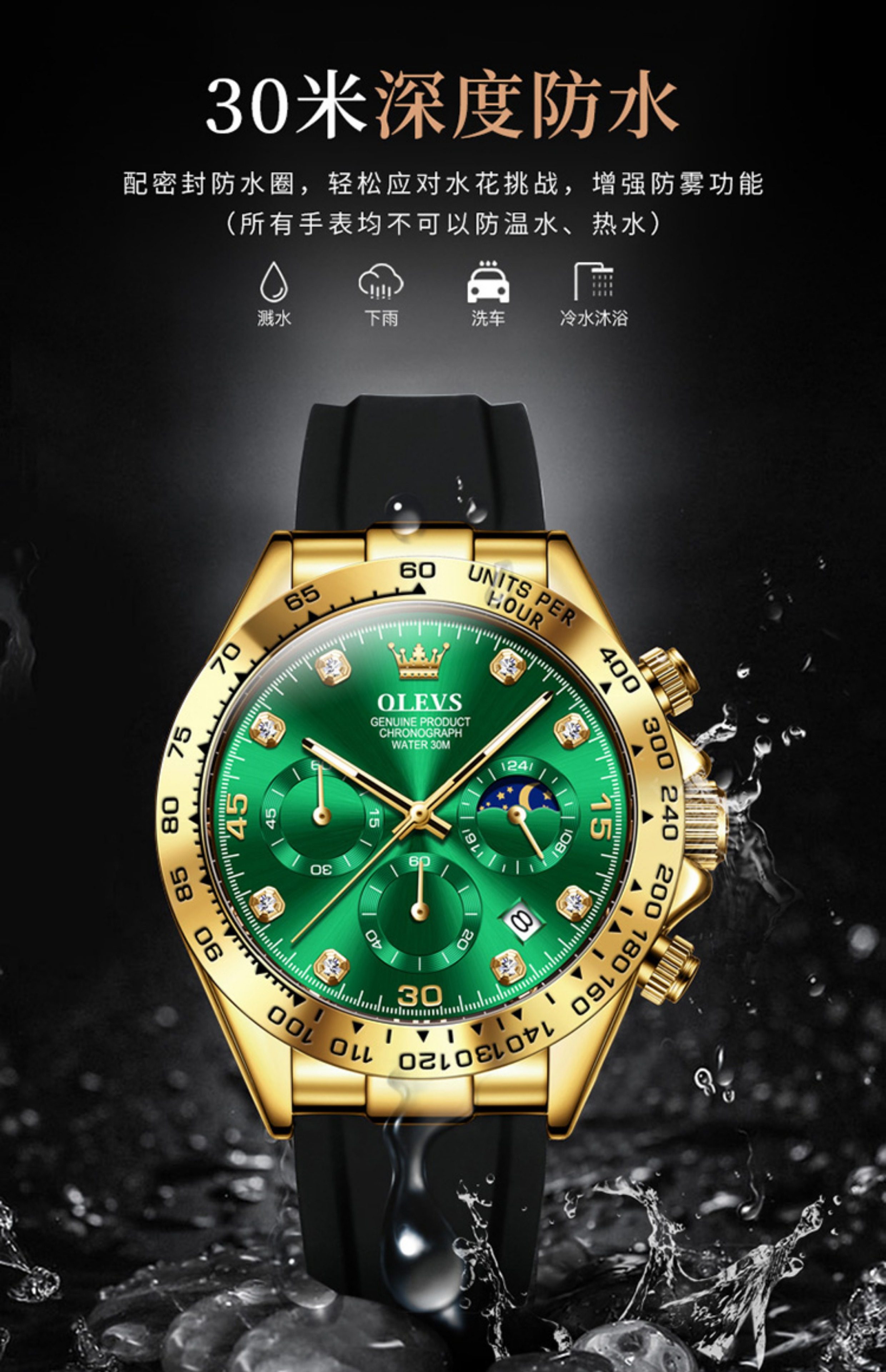 欧利时名牌时尚男士手表绿金迪通拿熊猫腕表硅胶气质男表名表防水