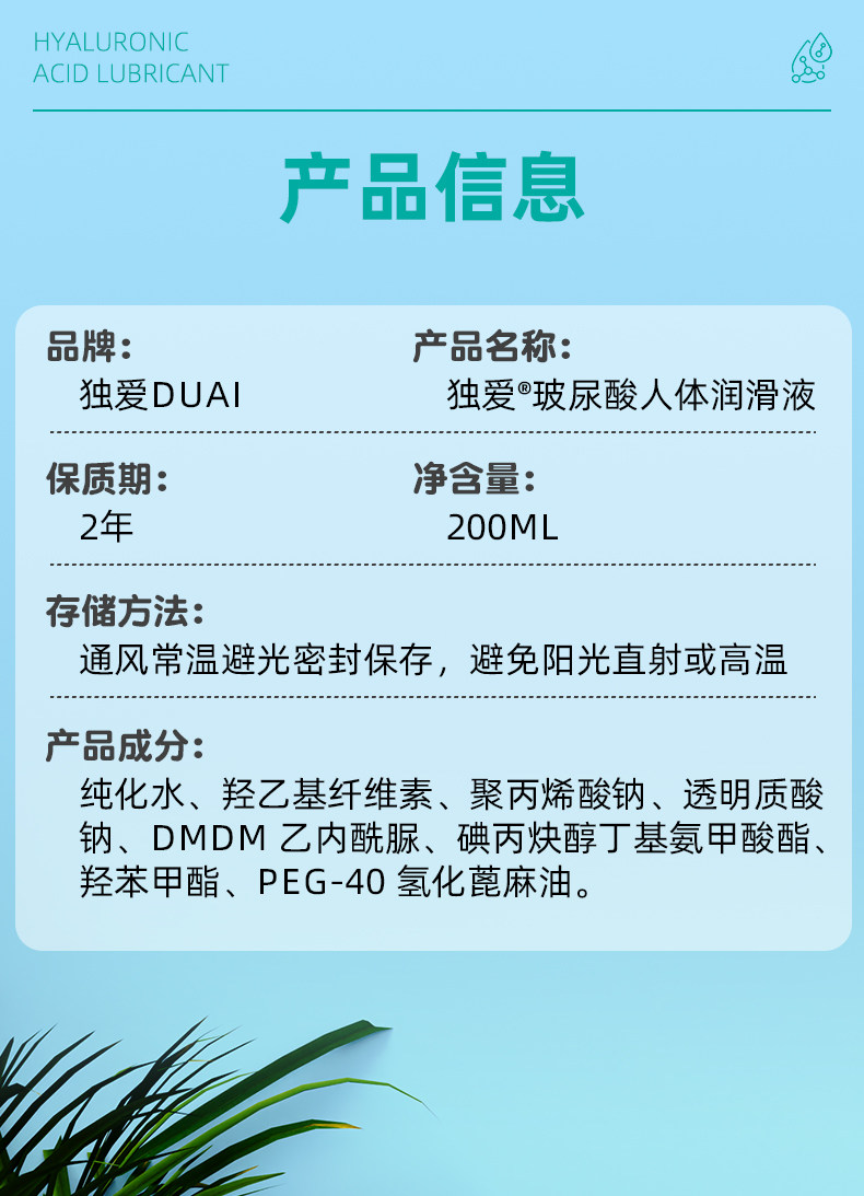 主要成份 纯化水、羟乙基纤维素、聚丙烯酸钠、透明质酸钠