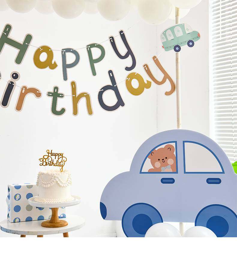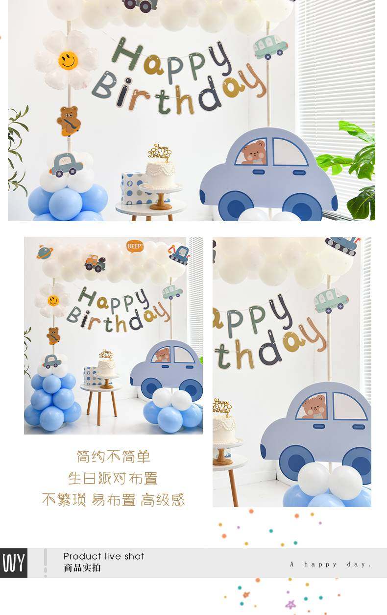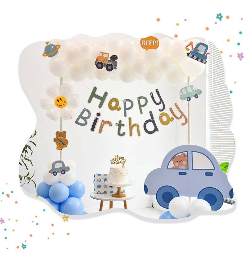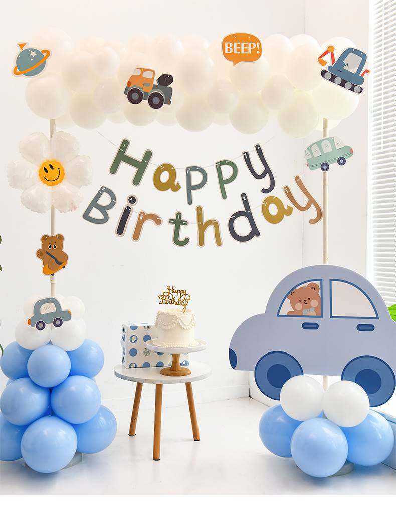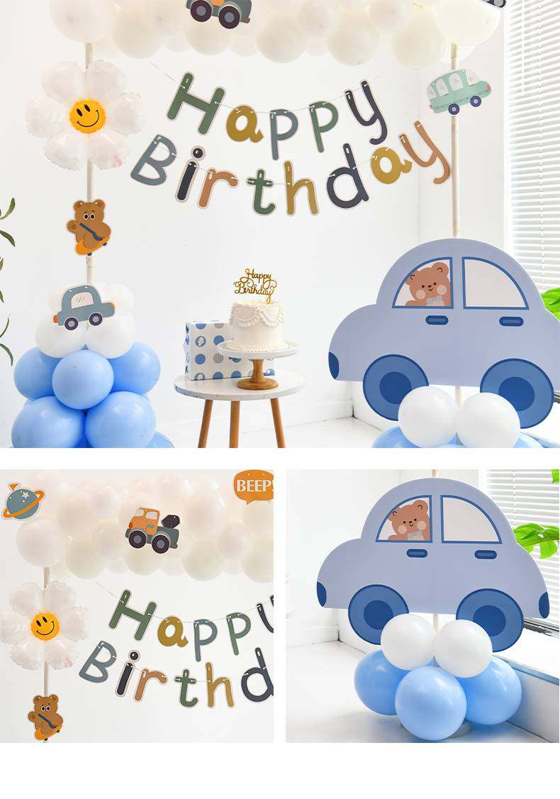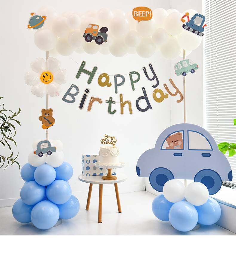 kt板儿童卡通小汽车气球拱门装饰布置男孩女孩宝宝周岁场景背景墙
