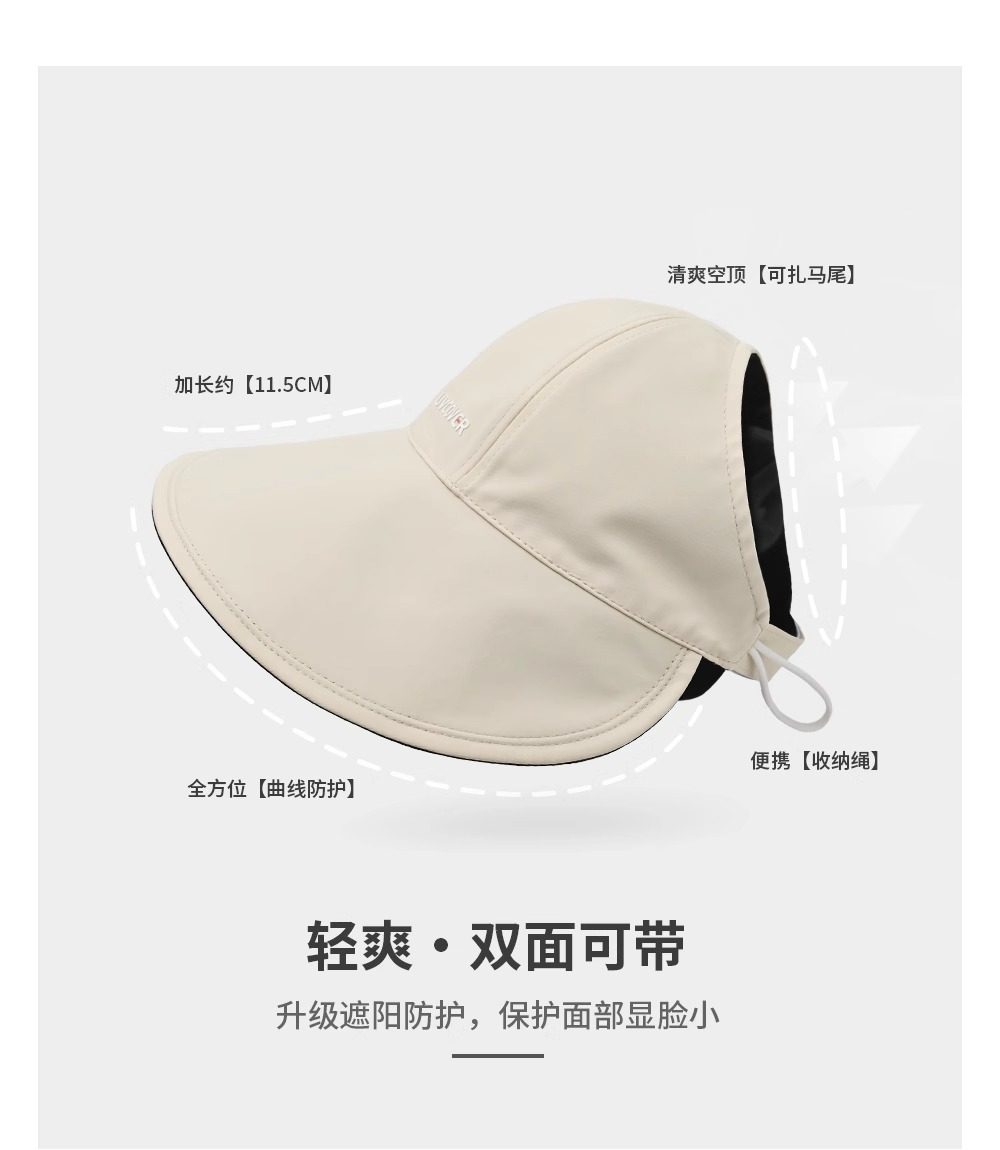Large Head Circumference Double-Sided Ice Silk Sun Protection Visor Hat for Women, Summer Wide-Brimmed Sunshade Fisherman Hat, Ponytail-Compatible Sun Hat