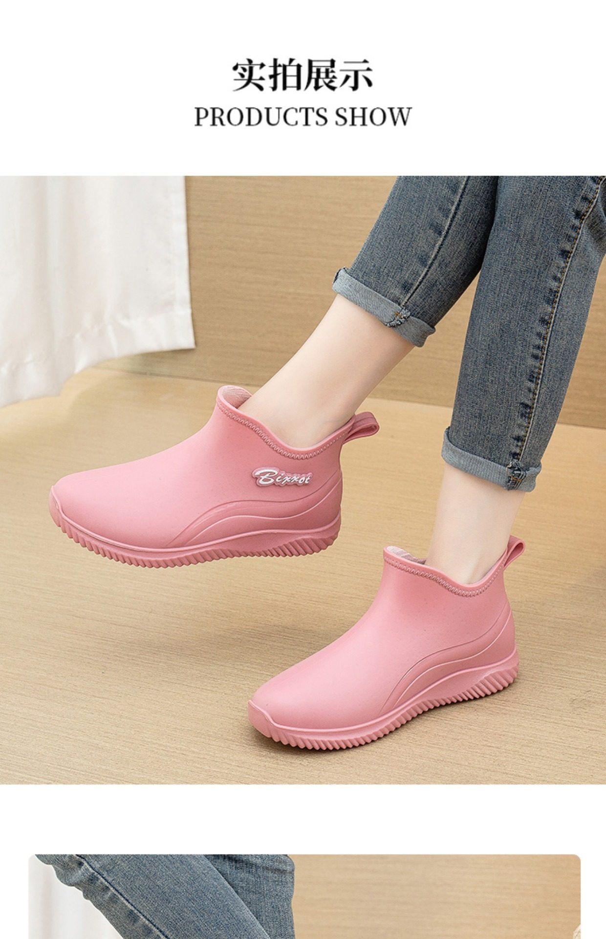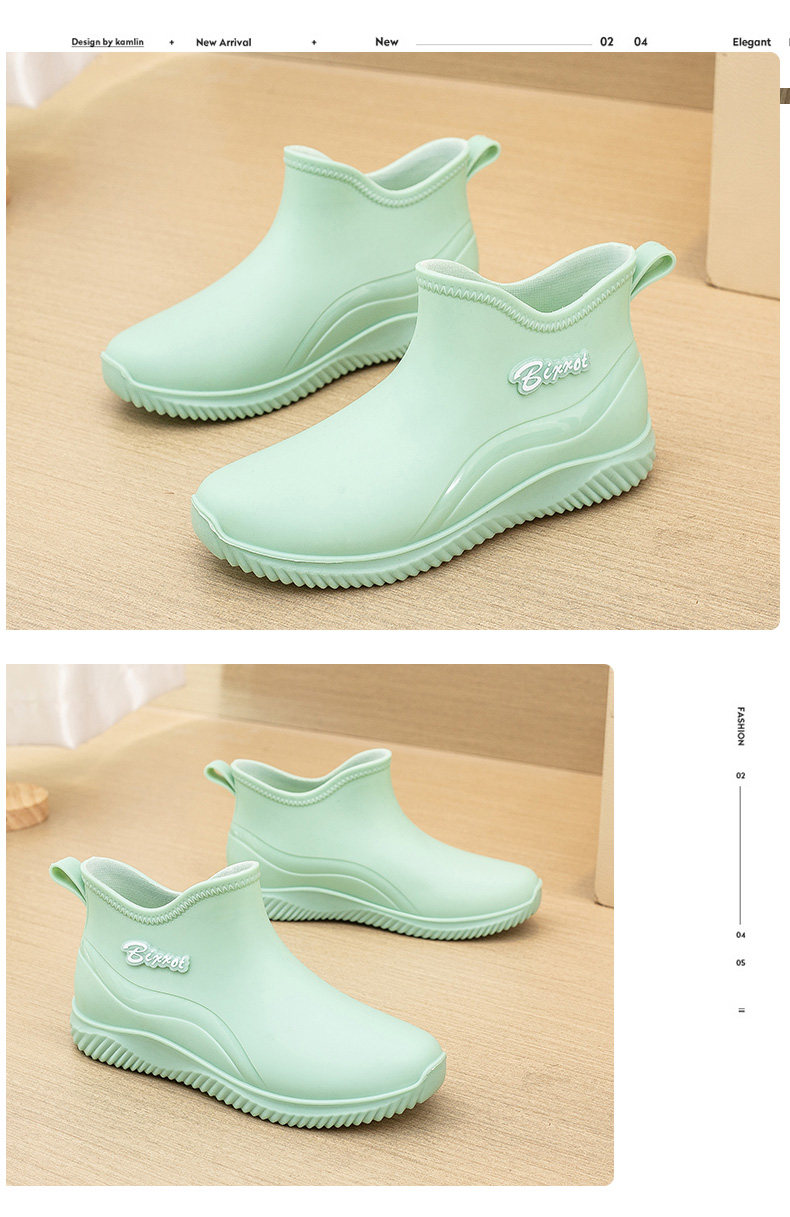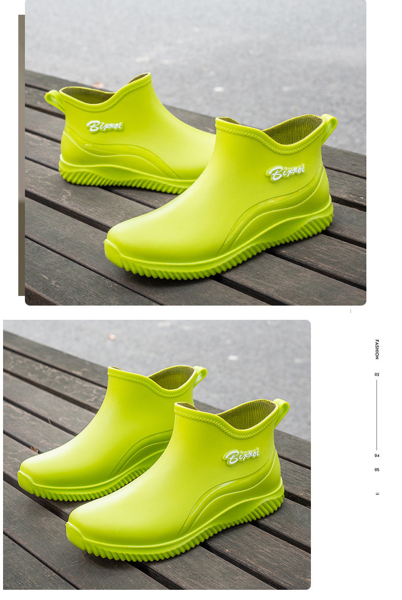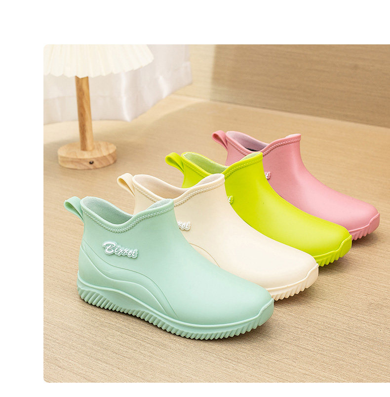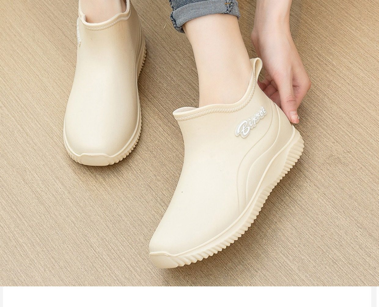 Botas de lluvia japonesas, botas de lluvia cortas para mujer, zapatos de agua antideslizantes, gruesos y resistentes al desgaste, zapatos de goma de trabajo de moda para mujer, cocina impermeable