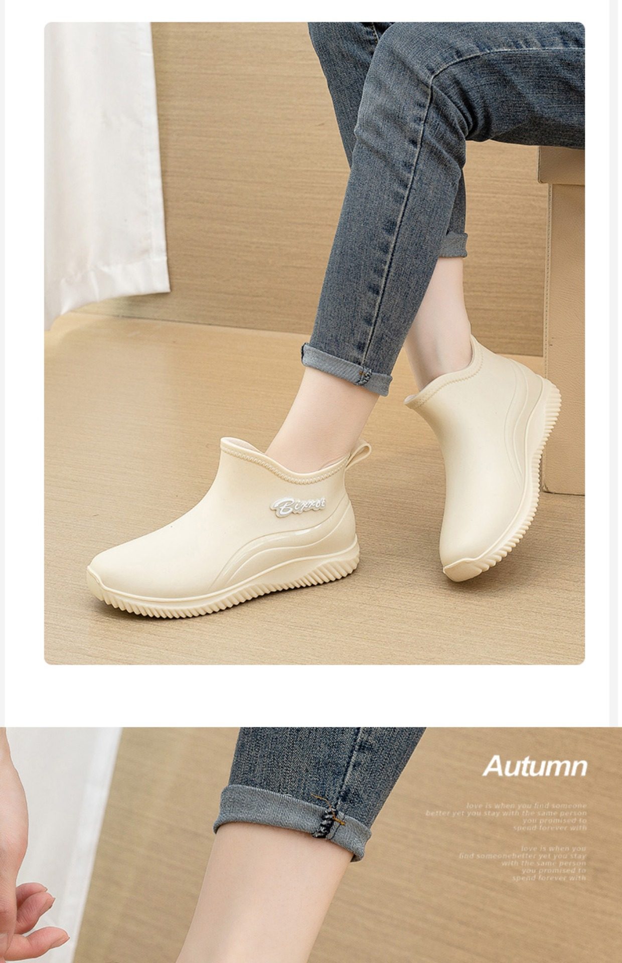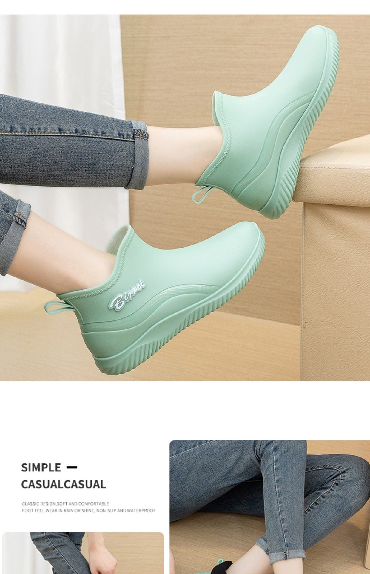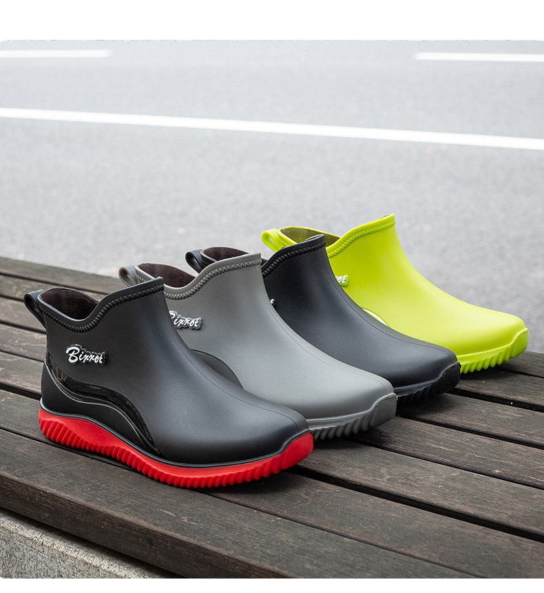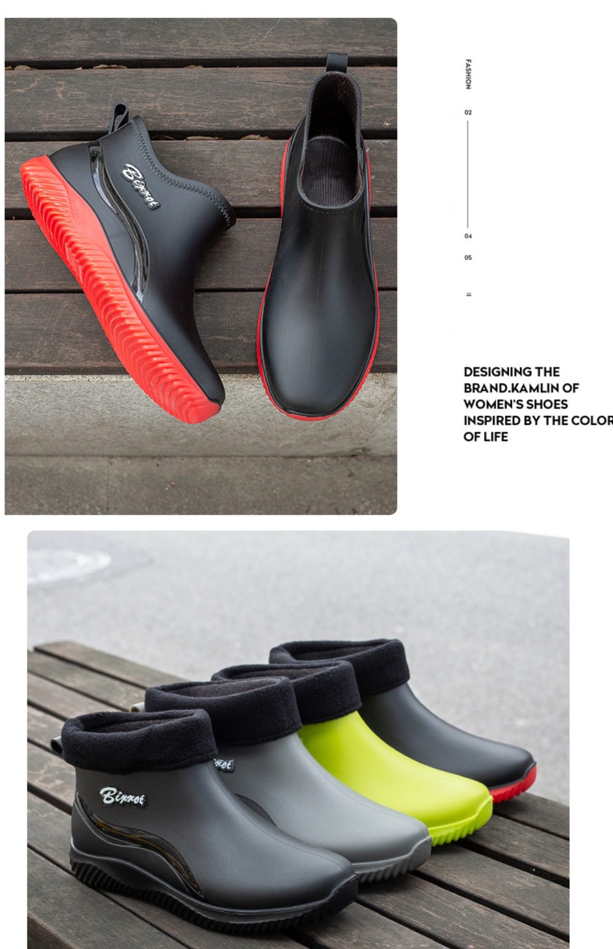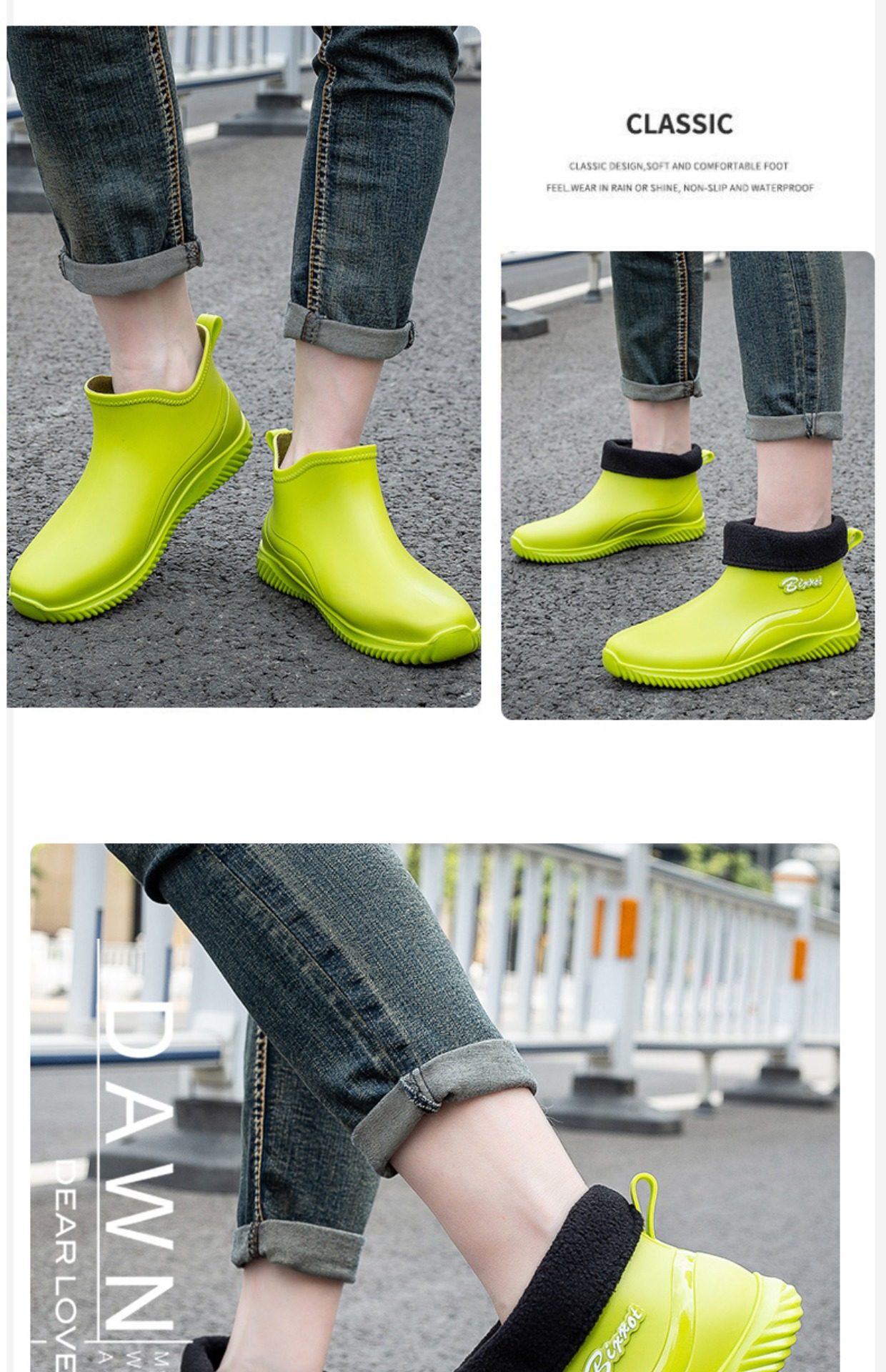 Botas de lluvia japonesas, botas de lluvia cortas para mujer, zapatos de agua antideslizantes, gruesos y resistentes al desgaste, zapatos de goma de trabajo de moda para mujer, cocina impermeable