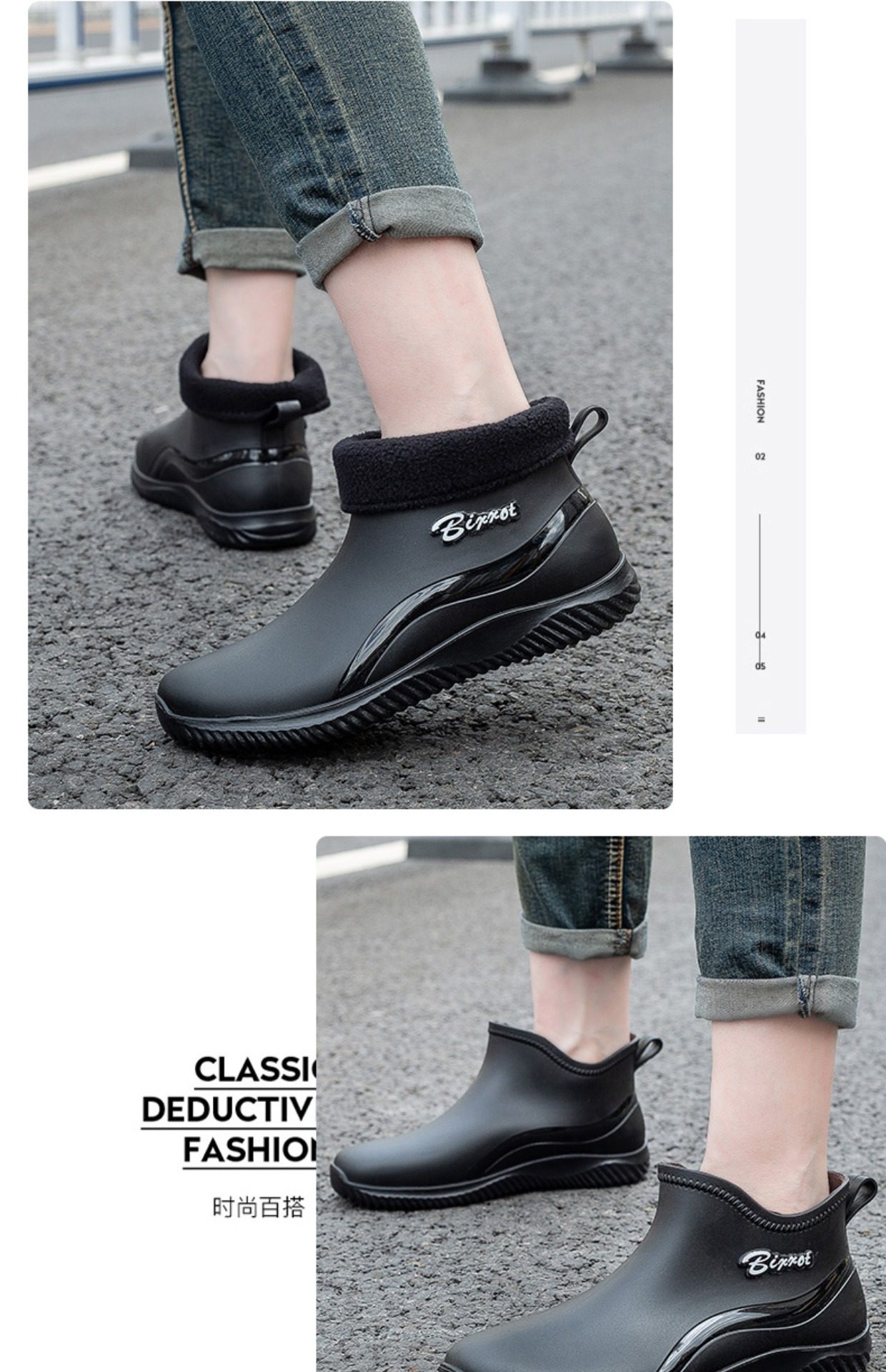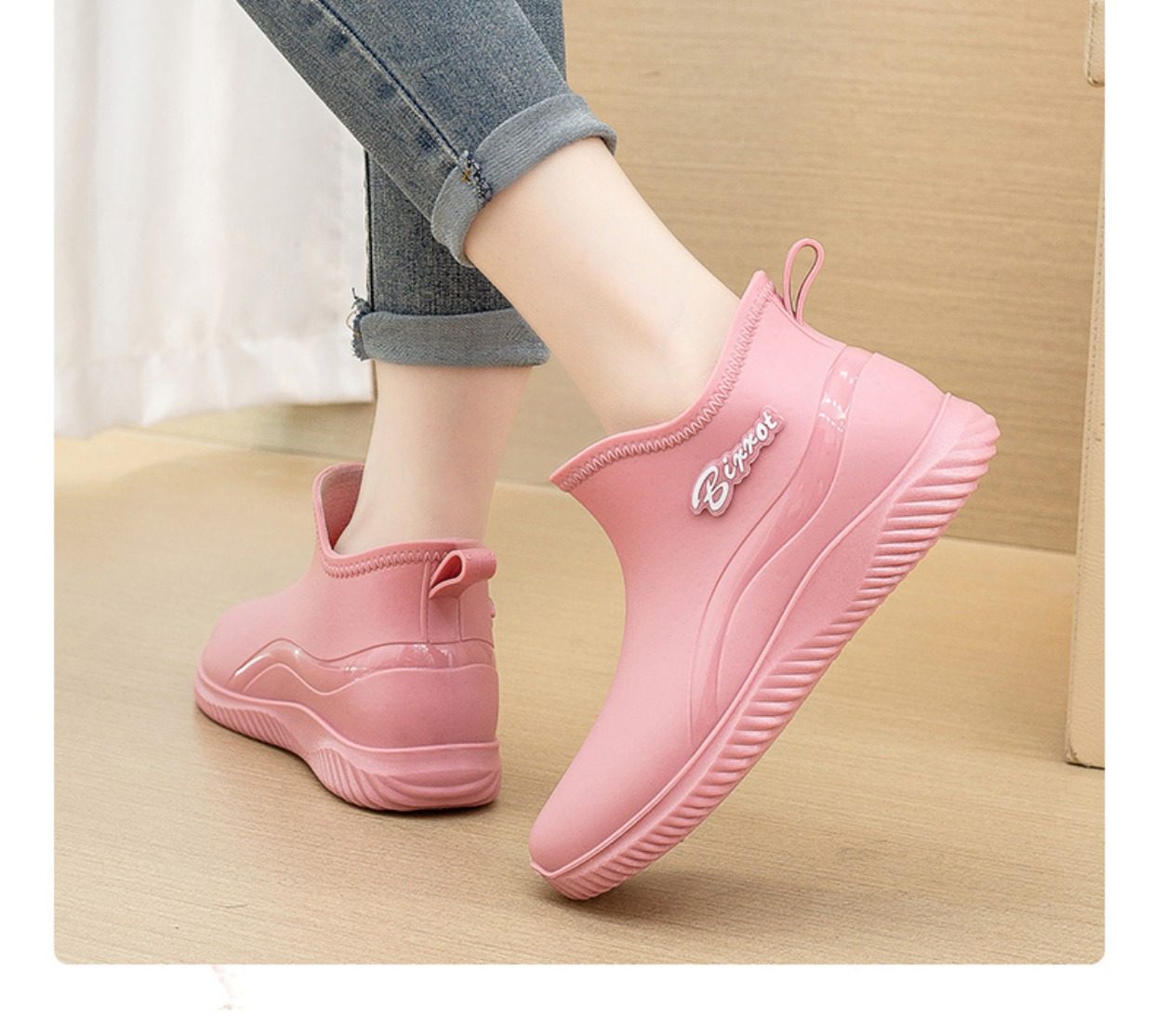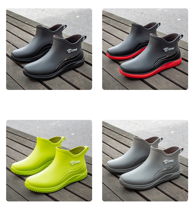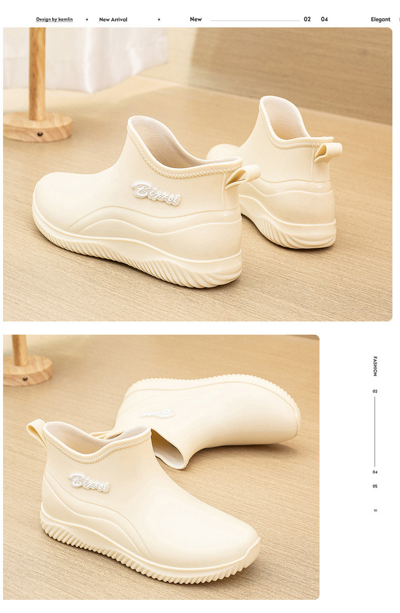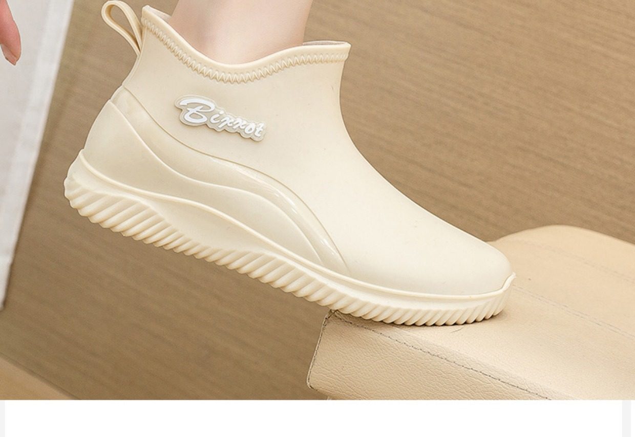 Botas de lluvia japonesas, botas de lluvia cortas para mujer, zapatos de agua antideslizantes, gruesos y resistentes al desgaste, zapatos de goma de trabajo de moda para mujer, cocina impermeable