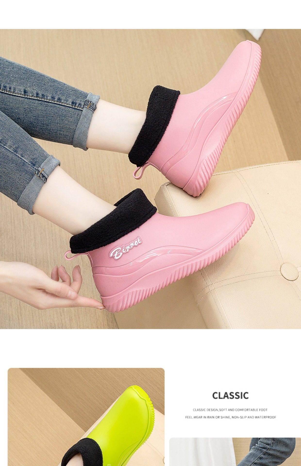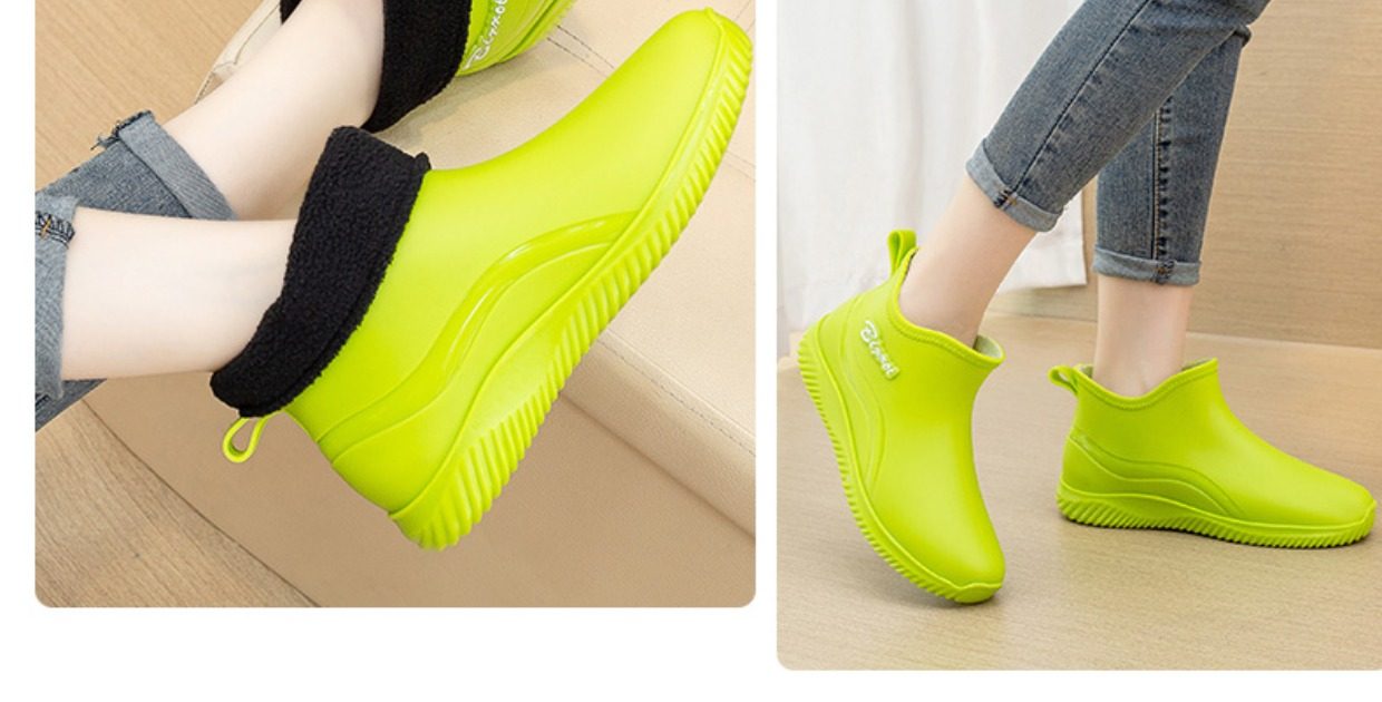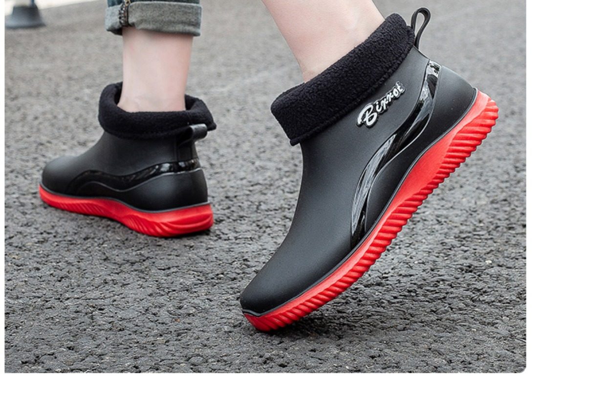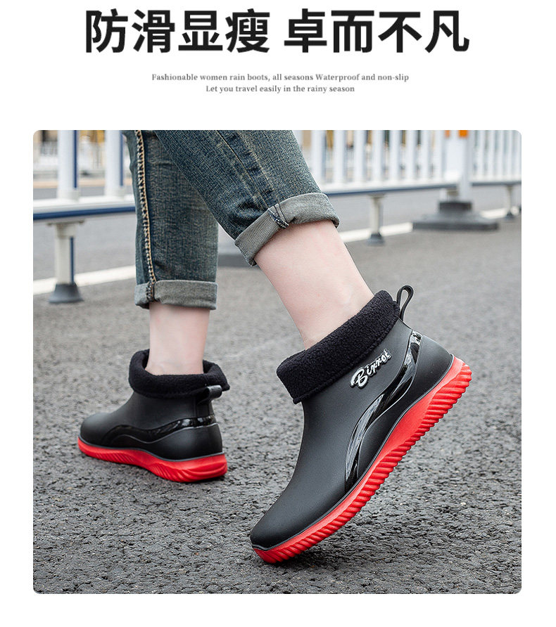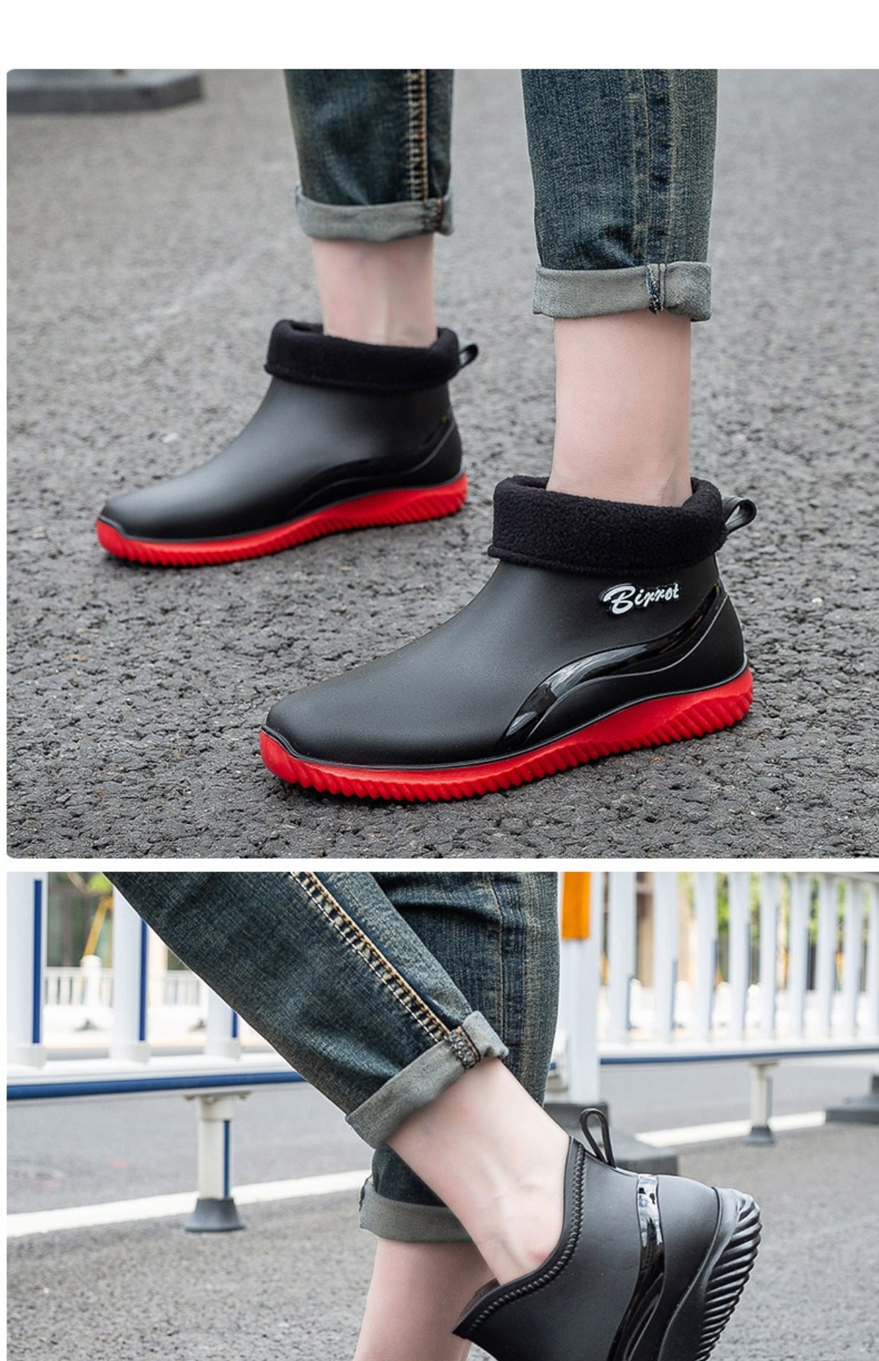 Botas de lluvia japonesas, botas de lluvia cortas para mujer, zapatos de agua antideslizantes, gruesos y resistentes al desgaste, zapatos de goma de trabajo de moda para mujer, cocina impermeable
