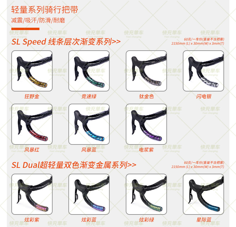 guee金属银色渐变把带公路自行车骑行装备防滑超轻减震专业绑带