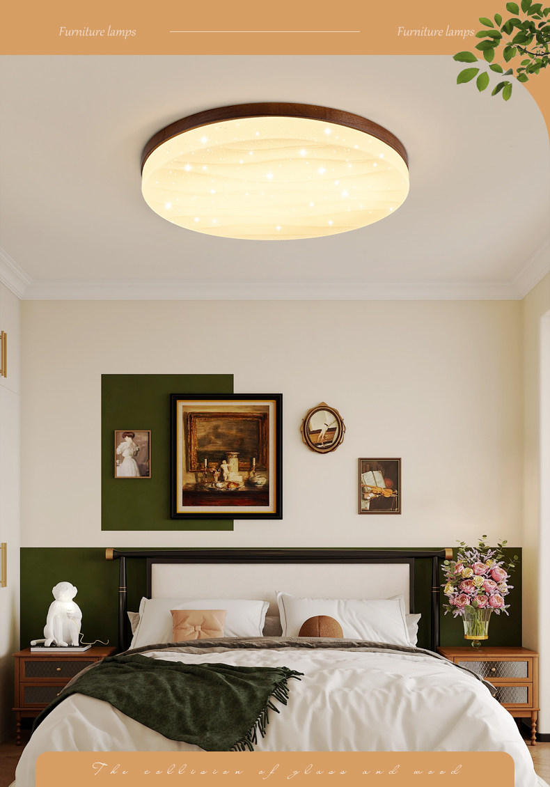 Лампа для спальни в средневековом стиле, цвет ореха, светодиодная потолочная лампа, звездная круглая лампа для детской комнаты, креативная лампа звездного неба