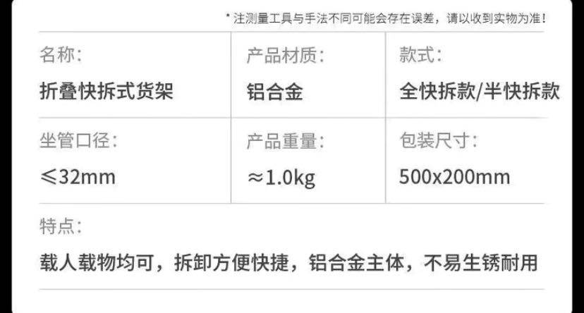 颜色分类 升级款(半快拆)+(斜口)车筐,升级款(全快拆)+(斜口)车筐,升级款(半快拆)+(斜口带盖)车筐,升级款(全快拆)+斜口带盖)车筐,升级款(半快拆)+(带盖)车筐,升级款(全快拆)+(带盖)车筐,⭐ 【组合更划算】后货架+后座垫螺丝扣款【PU防水 便携快拆】+送安装工具,⭐ 【组合更划算】后货架+后座垫魔术扣款【PU防水 便携快拆】+送安装工具,★【本店热销+挡泥板】升级款(半快拆)货架+送安装工具,★【本店热销+挡泥板】升级款(全快拆)货架+送安装工具,【★本店热销】升级款(半快拆)货架+送安装工具,【★本店热销】升级款(全快拆)货架+送安装工具,加大(带盖)车筐,加大(斜口)车筐,加大(斜口带盖)车筐,【✅ 安装简单】后坐垫魔术扣款【PU防水 5cm加厚更软】,【✅ 安装简单】后坐垫螺丝扣款【PU防水 5cm加厚更软】