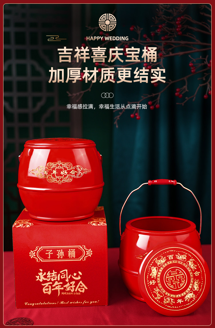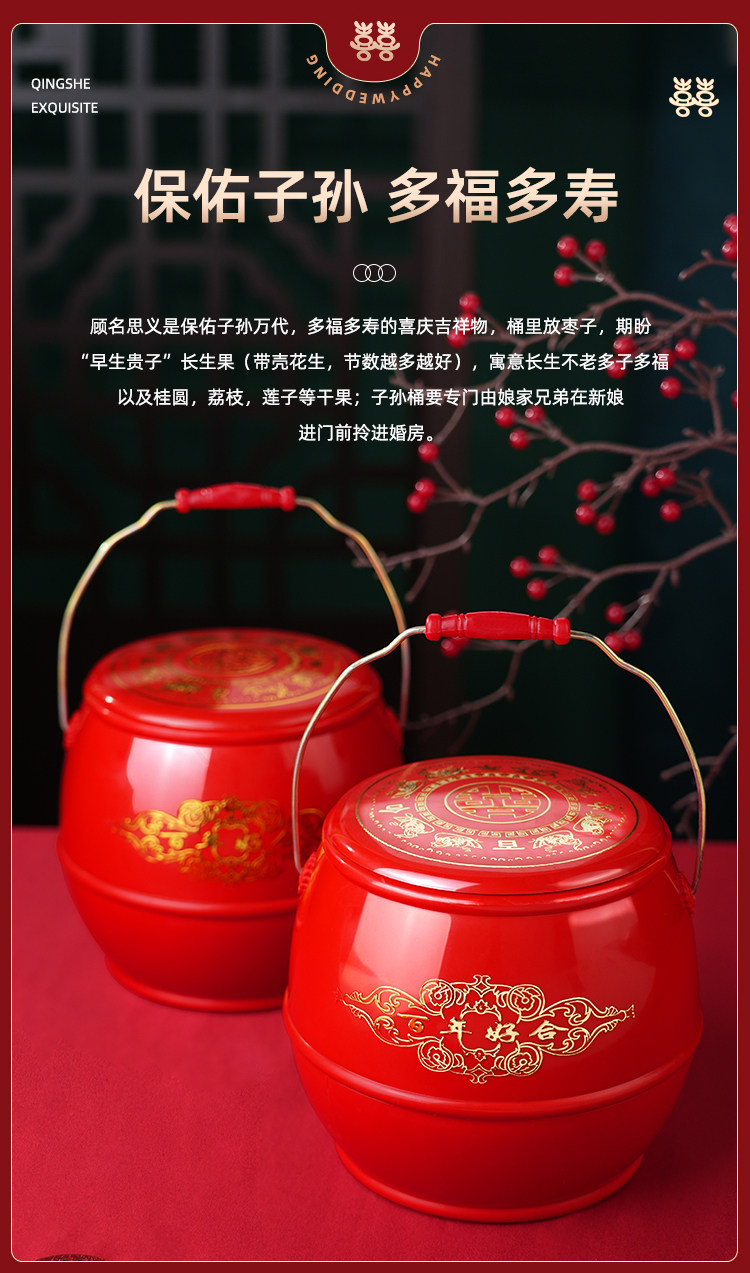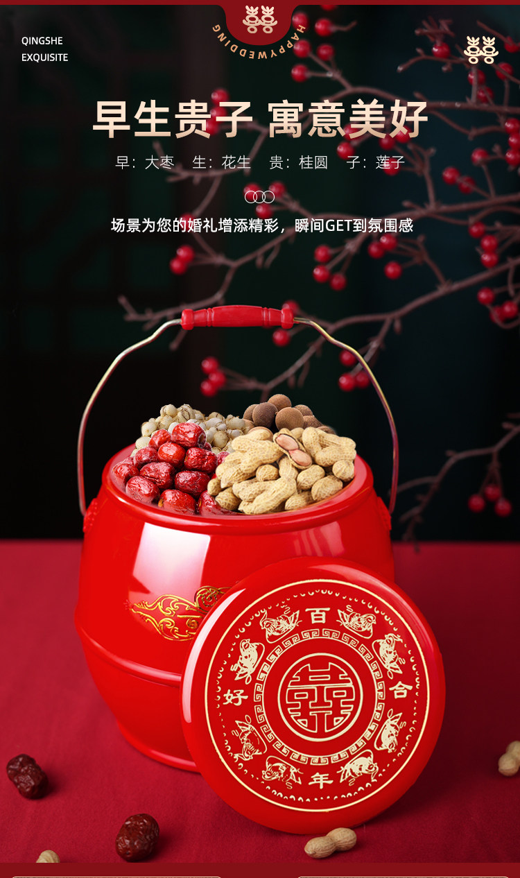Color Classification 1 Wedding Bucket,A Pair of Wedding Buckets,Wedding Blessing Bucket (with Four Kinds of Dried Fruits) - 1 Piece,Wedding Fortune Bucket (with Four Types of Dried Fruit) - Set of 2