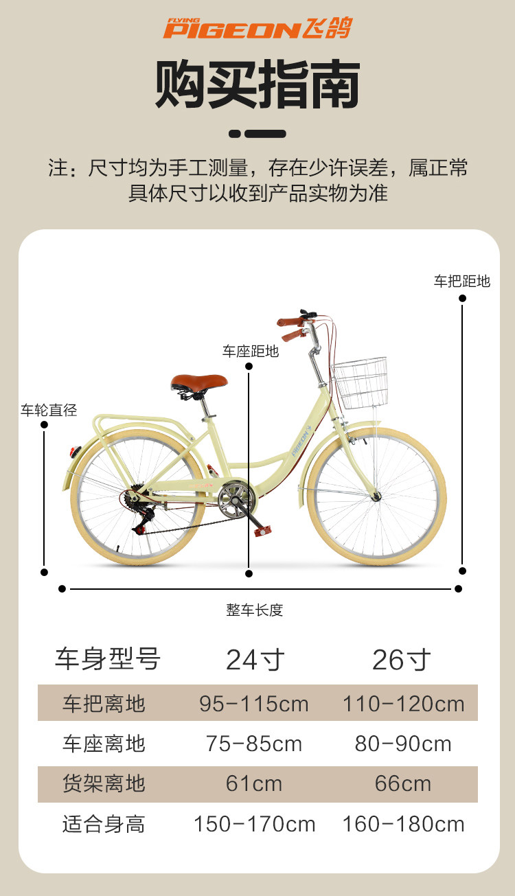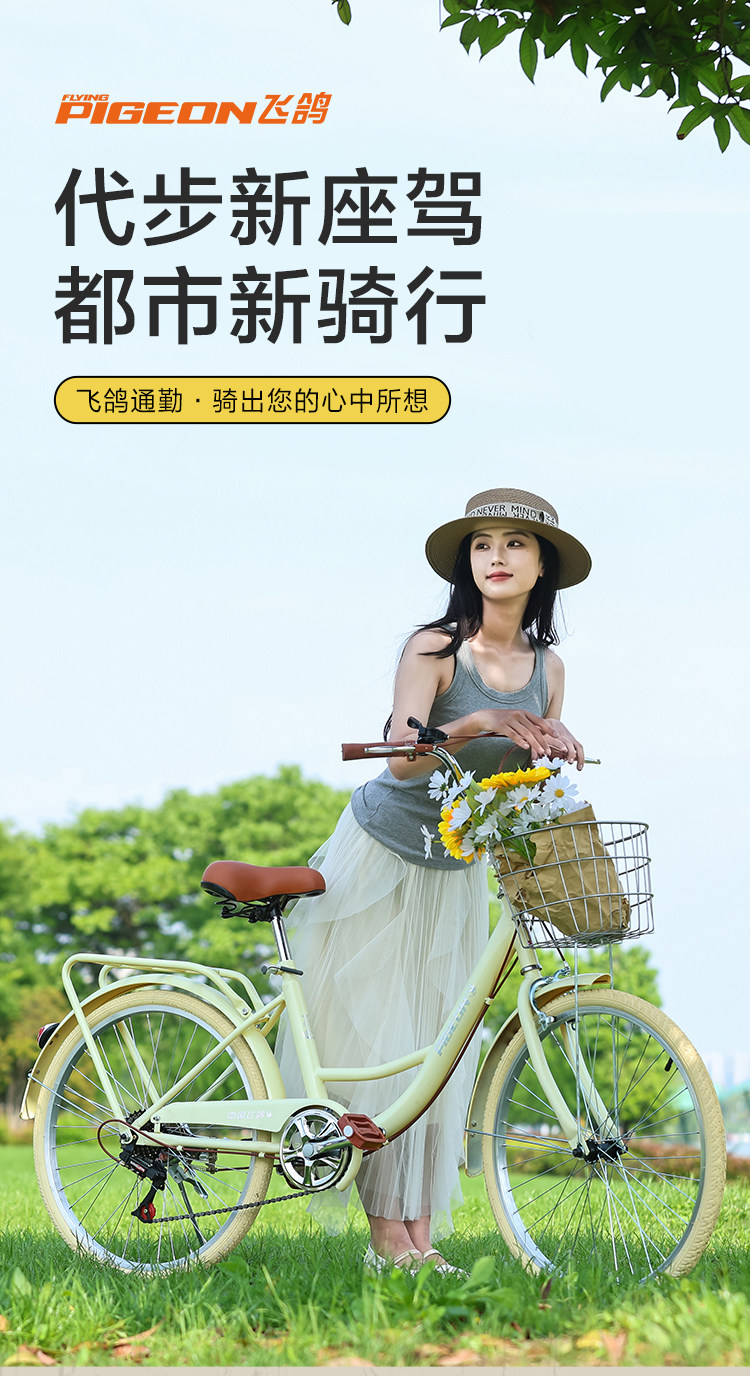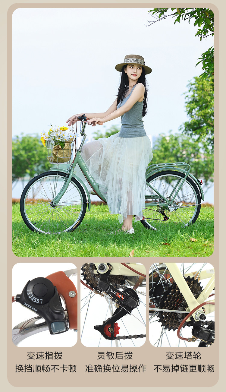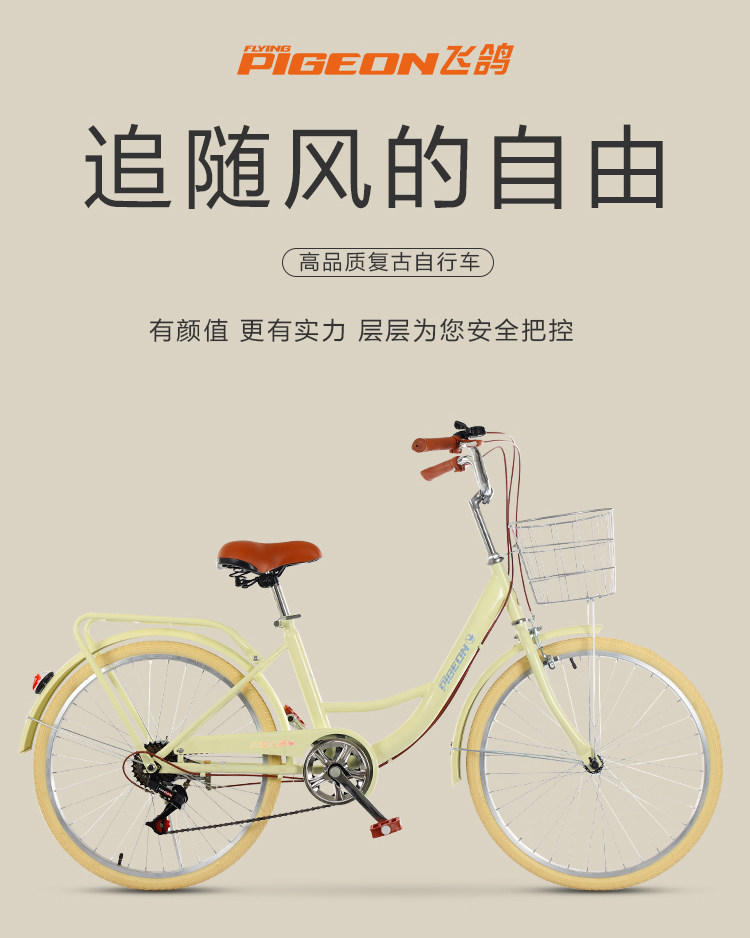 飞鸽自行车24寸26寸男女式成人上班通勤学生变速单车代步脚踏车