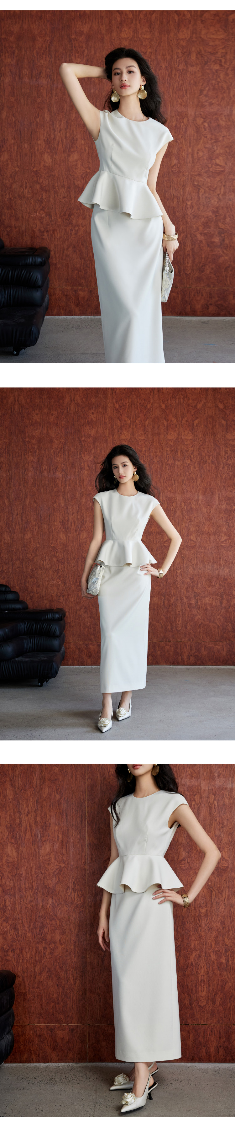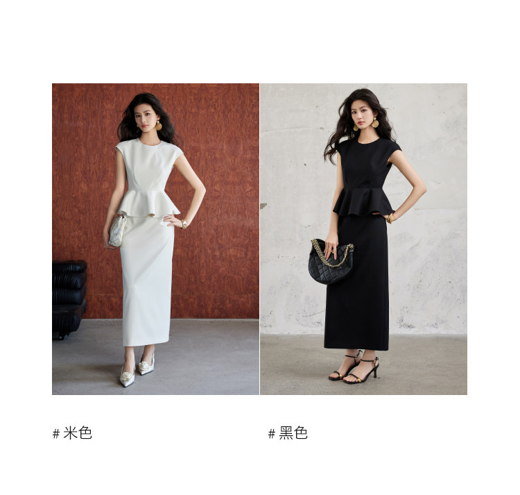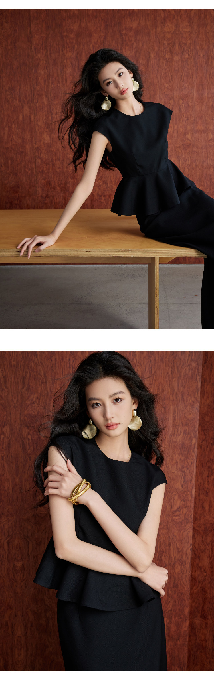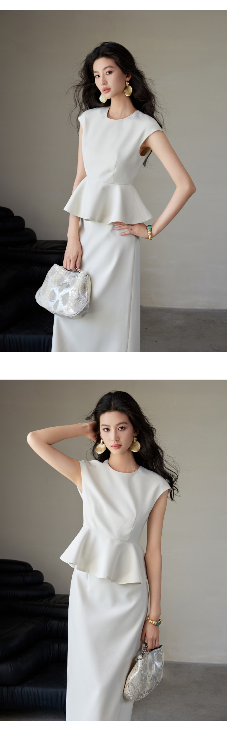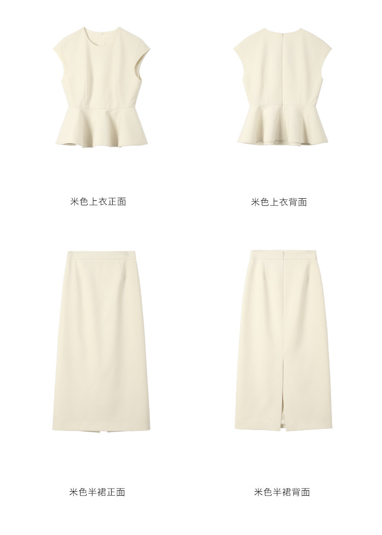 Wangxo|Heavyweight Double-Sided Pique Woven Fabric|Hepburn-Style Waist-Cinching Umbrella-Shaped Top & High-Waisted Skirt Set