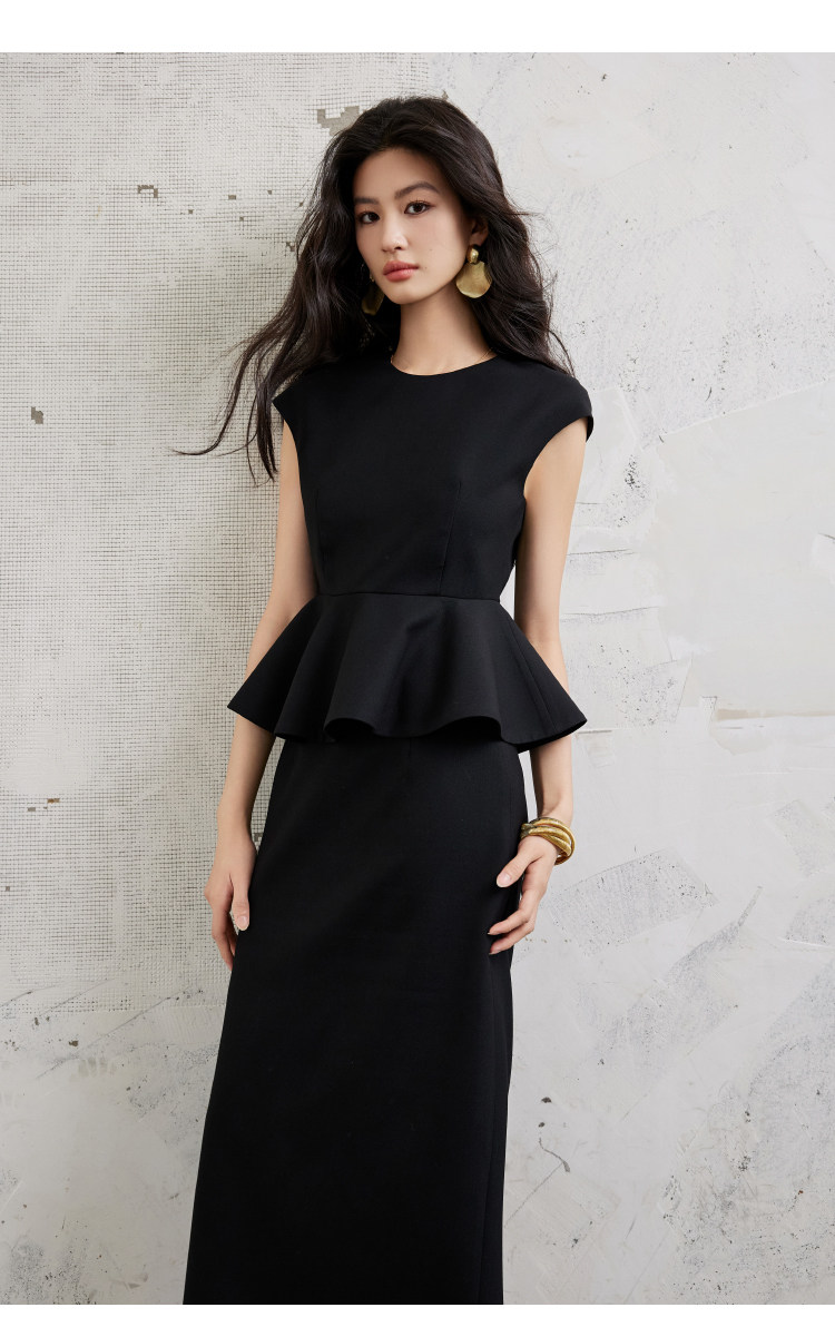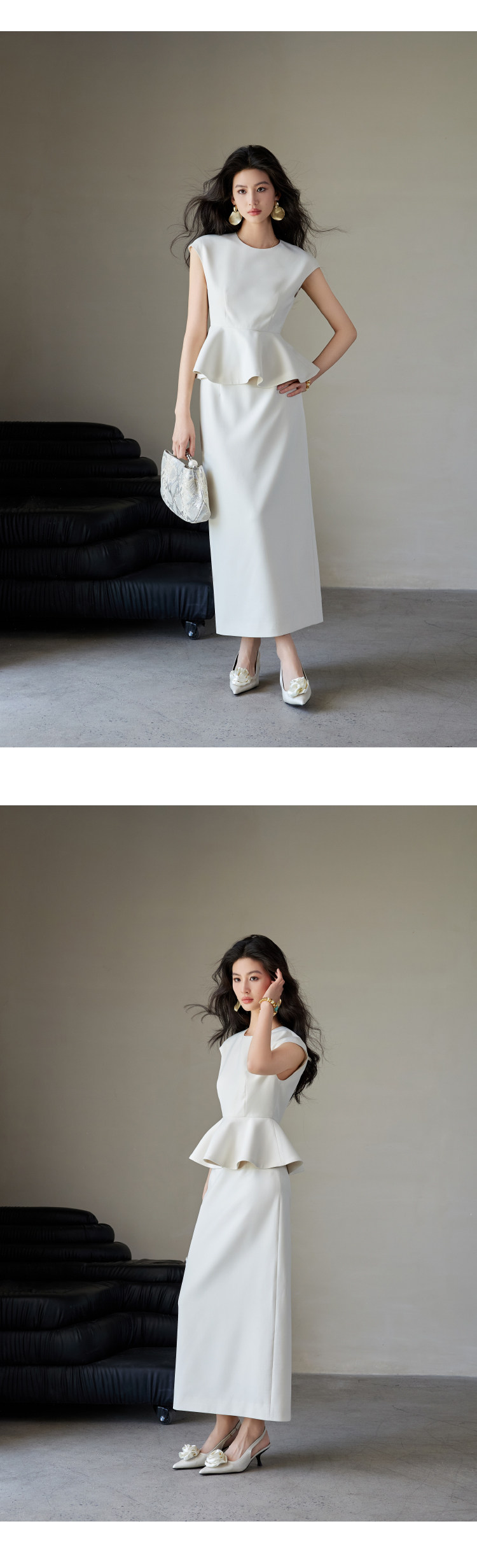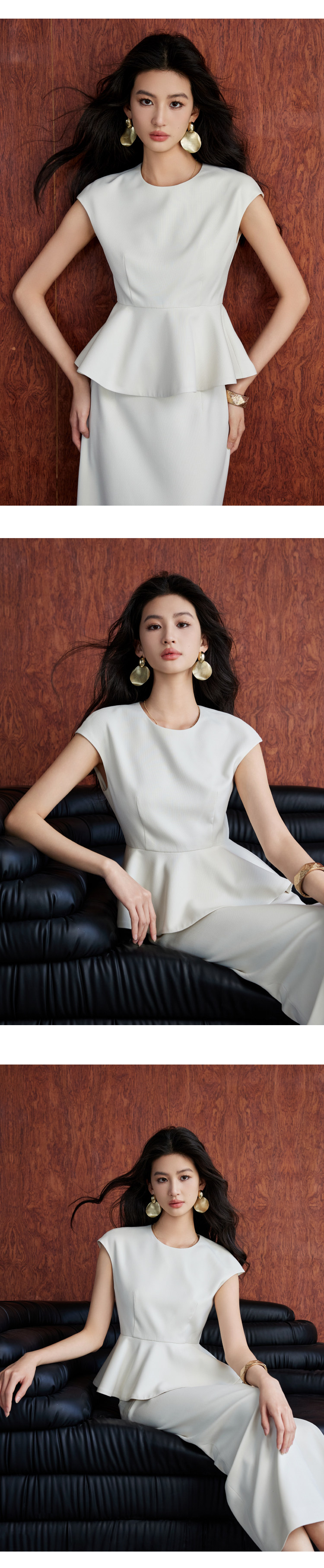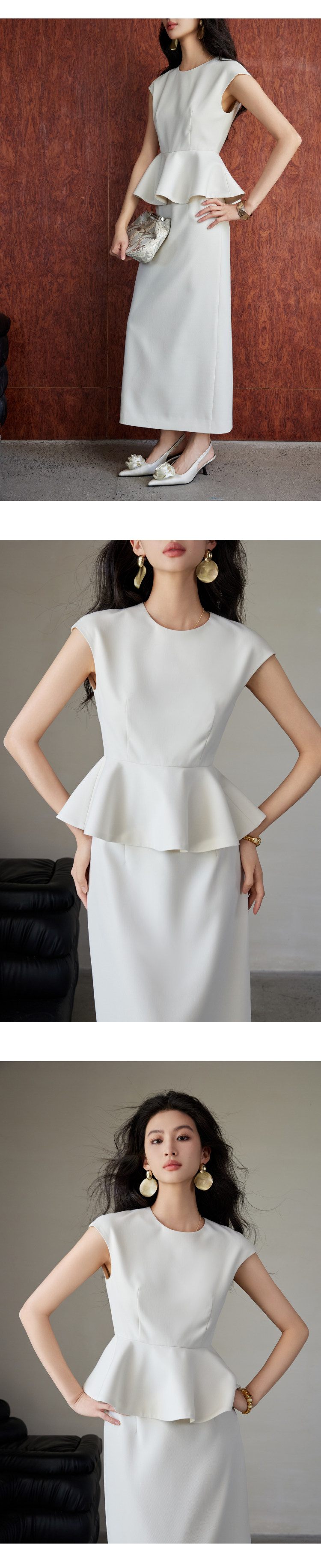 Wangxo|Heavyweight Double-Sided Pique Woven Fabric|Hepburn-Style Waist-Cinching Umbrella-Shaped Top & High-Waisted Skirt Set