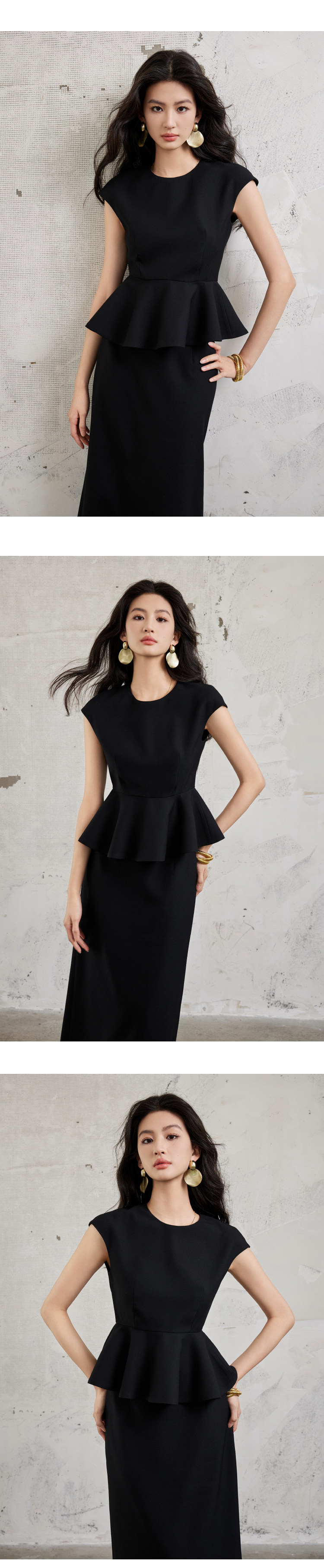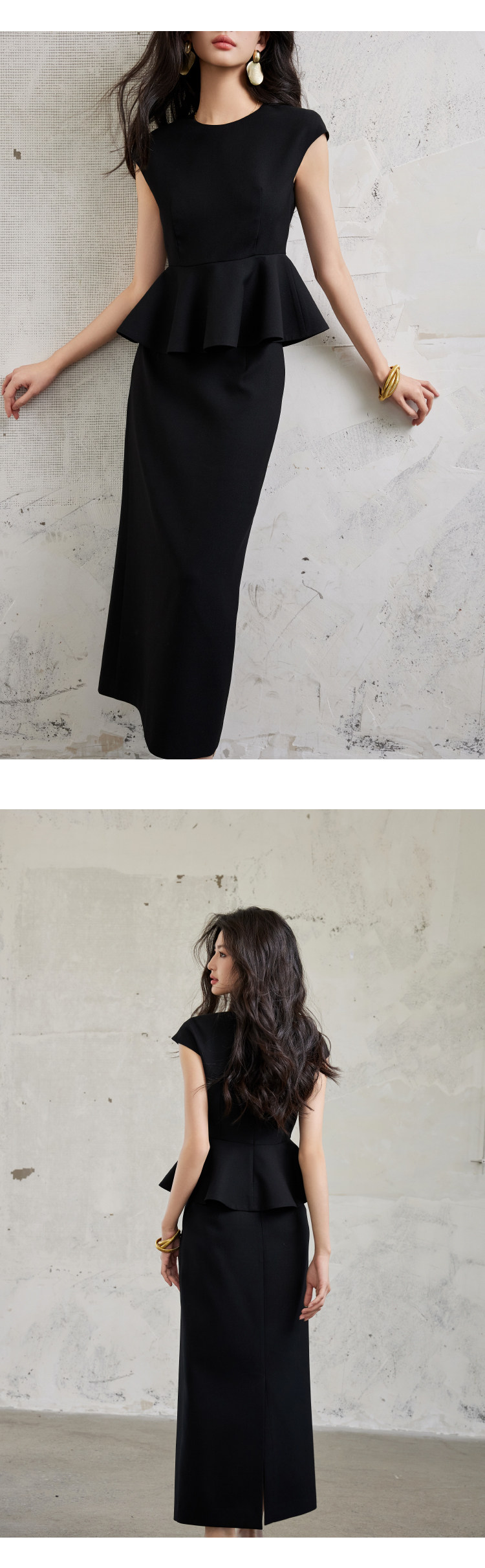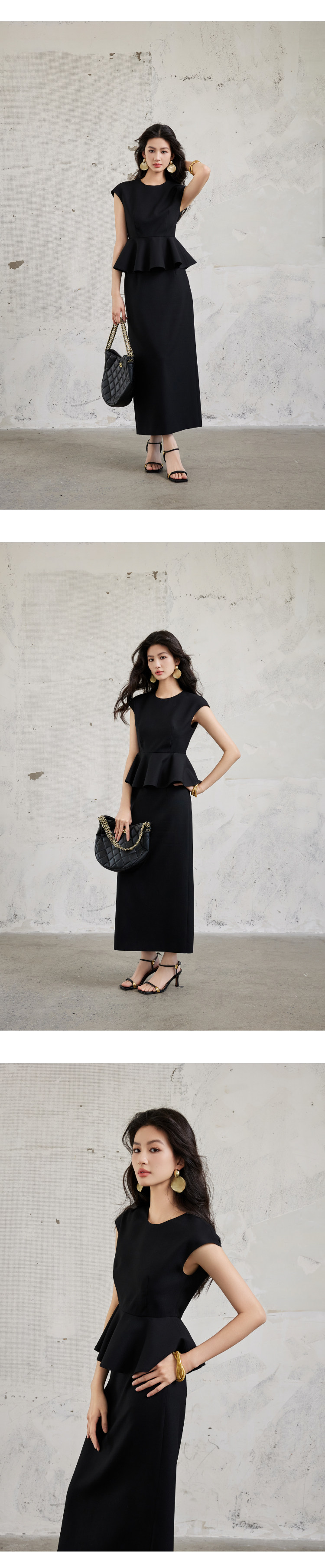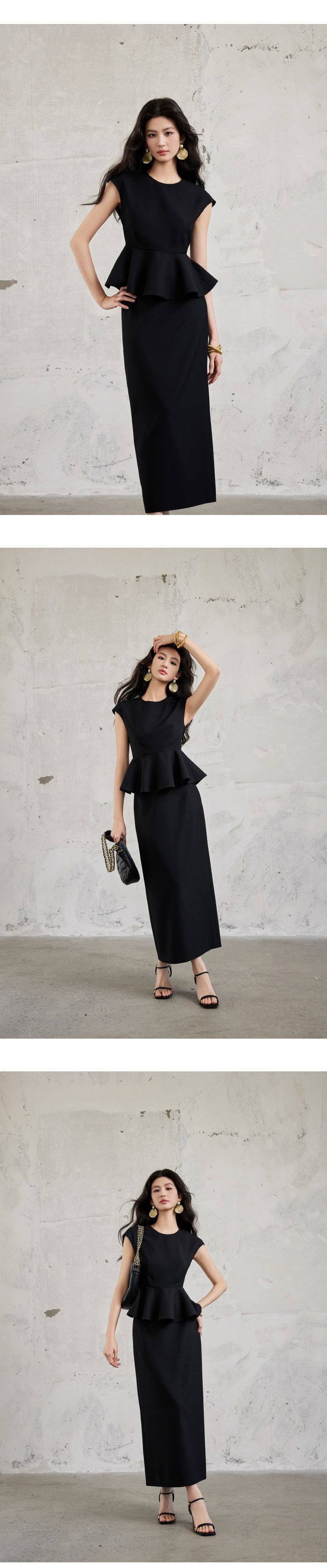 Wangxo|Heavyweight Double-Sided Pique Woven Fabric|Hepburn-Style Waist-Cinching Umbrella-Shaped Top & High-Waisted Skirt Set