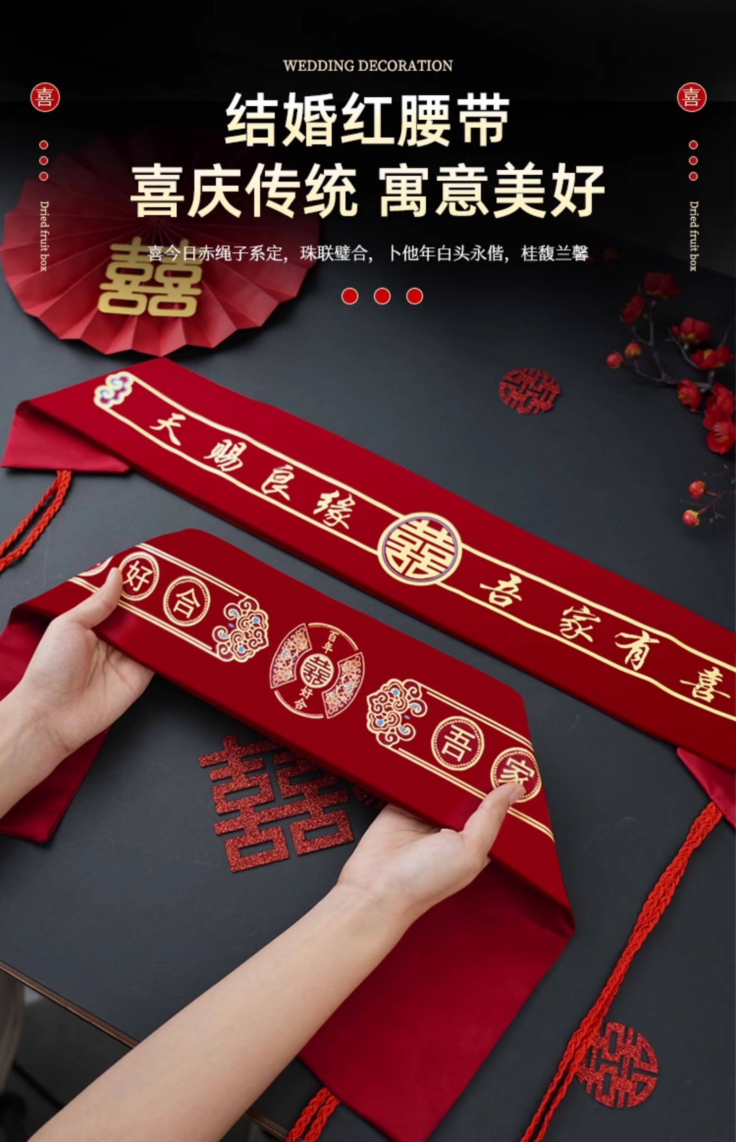 Red Belt for Wedding, a Pair of Wedding and Engagement Waistbands, Special Dowry Belt for the Bride, a Belt for the Bride's Family to Wear When Getting Married, a Belt That Brings Wealth to the Bride