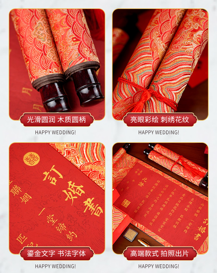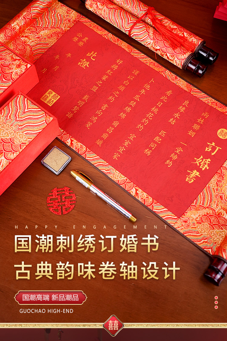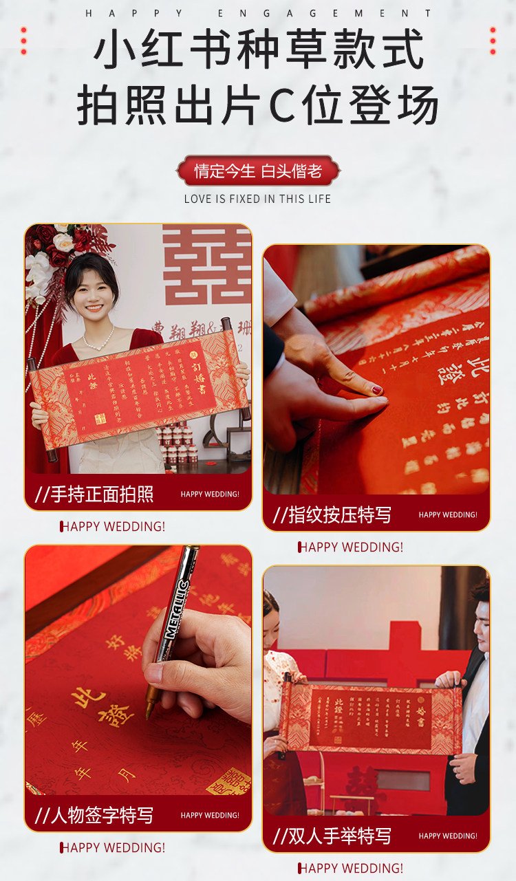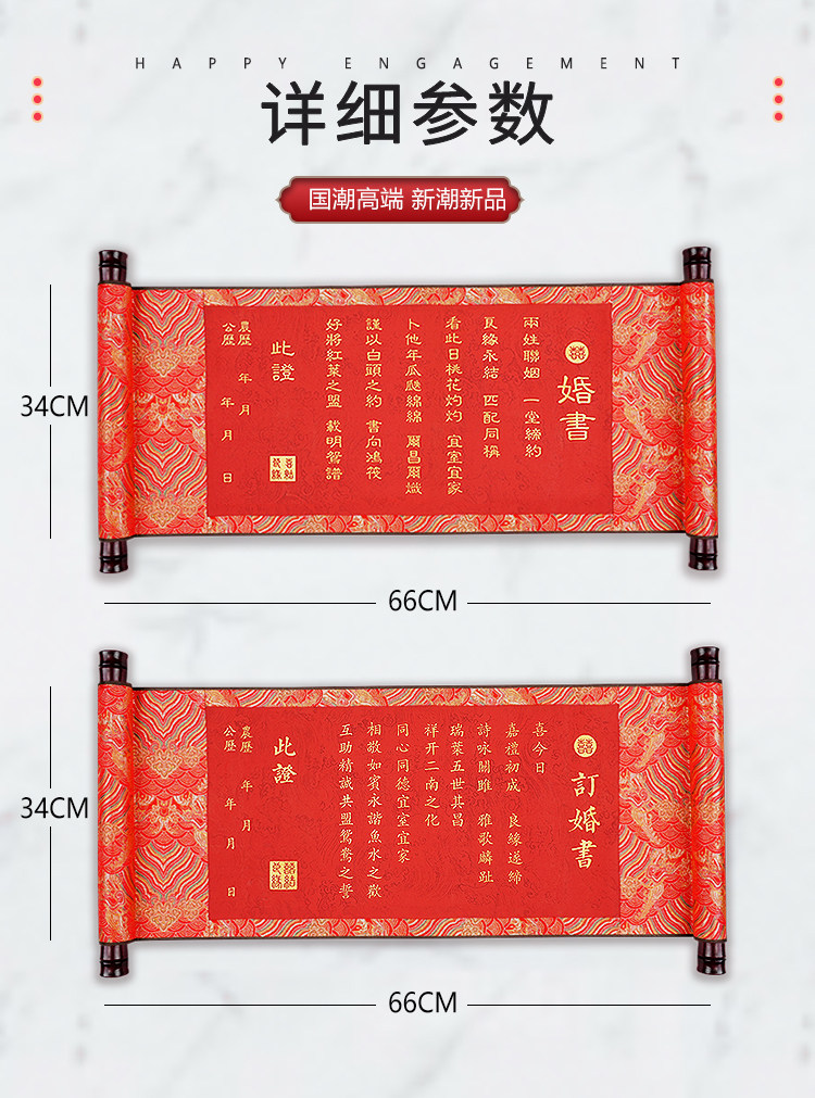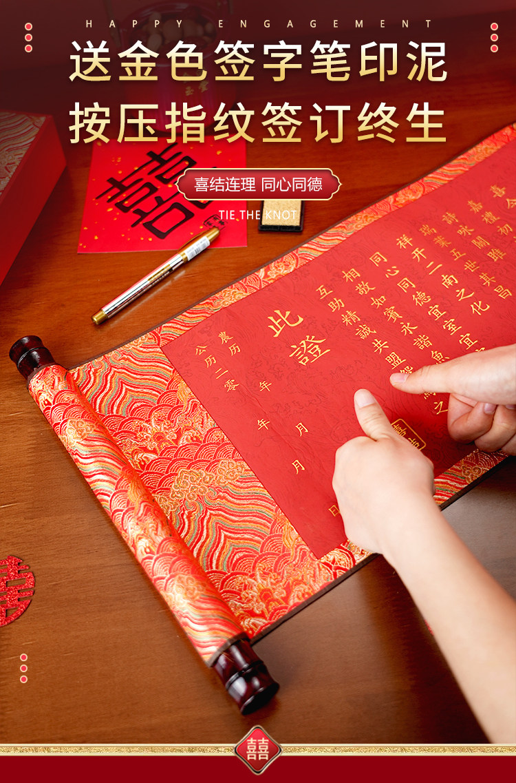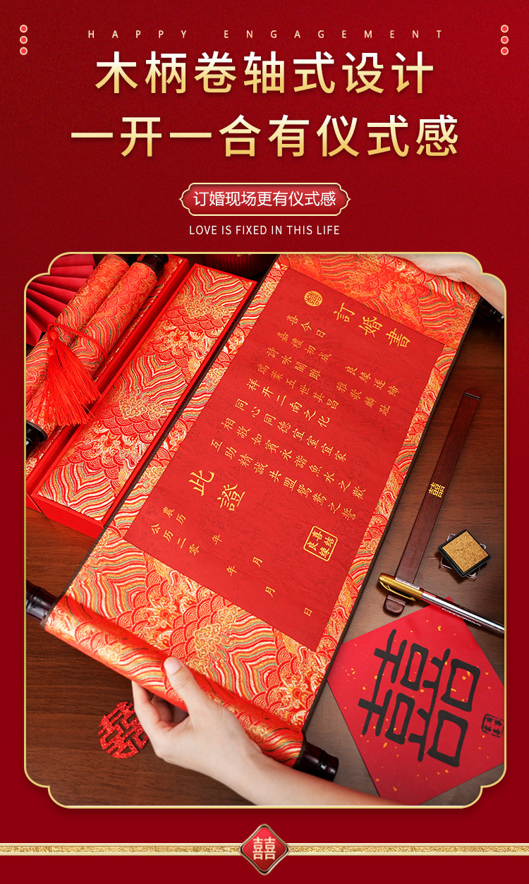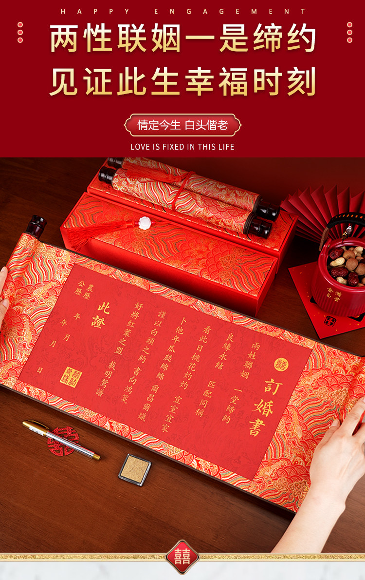 Engagement Scroll, High-End Handwritten Marriage Scroll, Chinese Style, Elegant Hand-Rolled Scroll, Self-Written by the Groom, Gift Scroll with Date